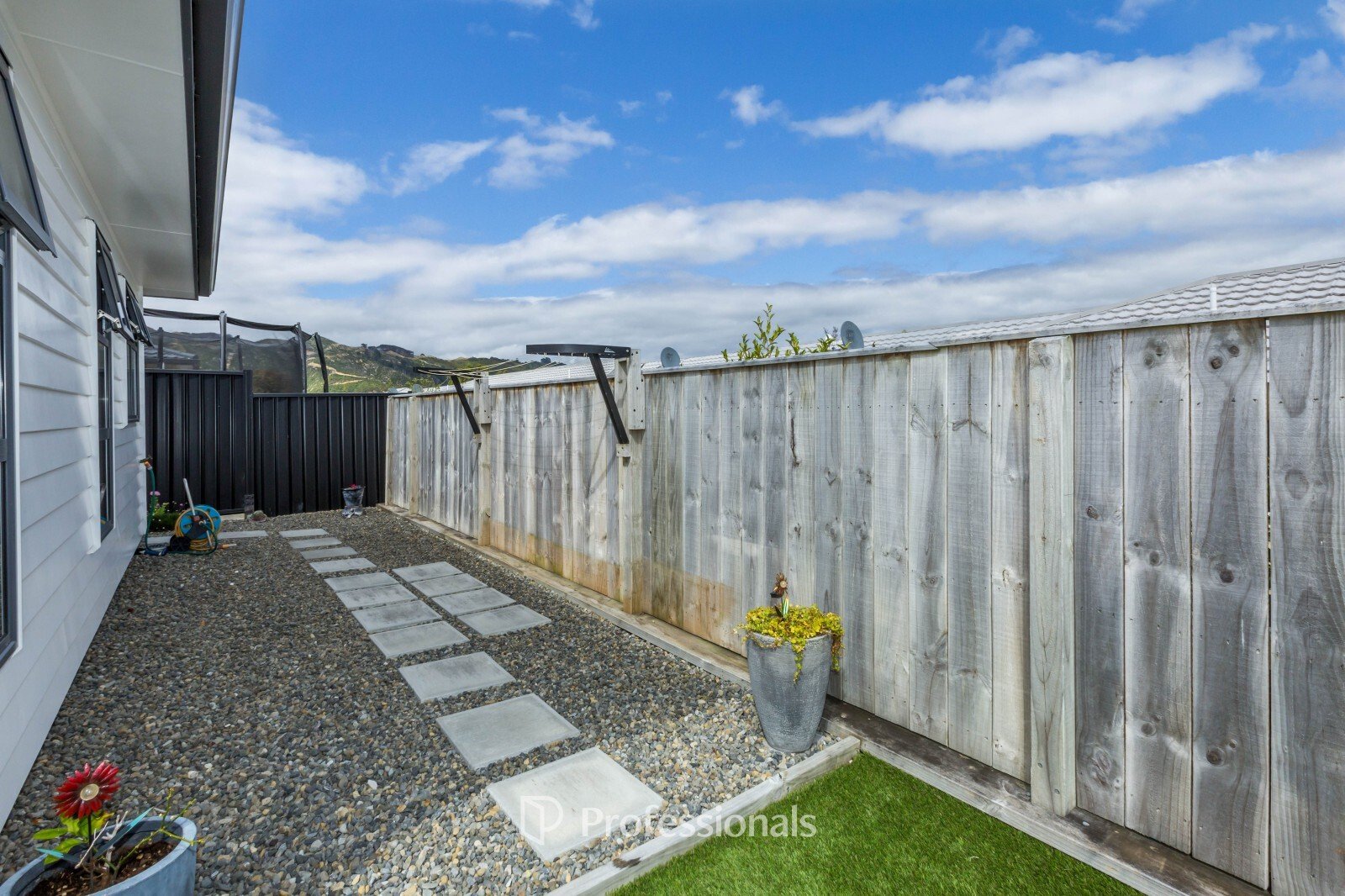 * Artificial grass in backyard