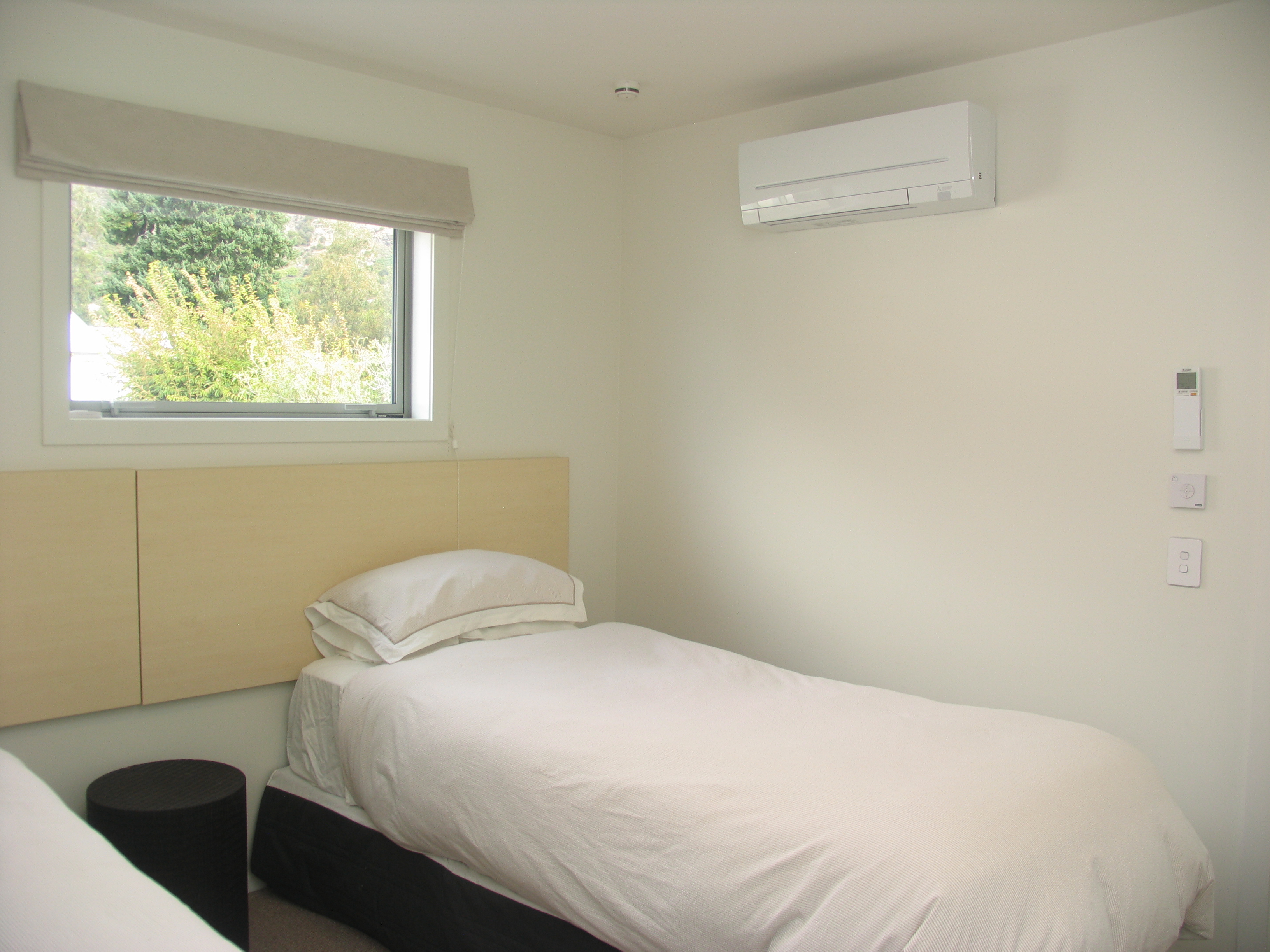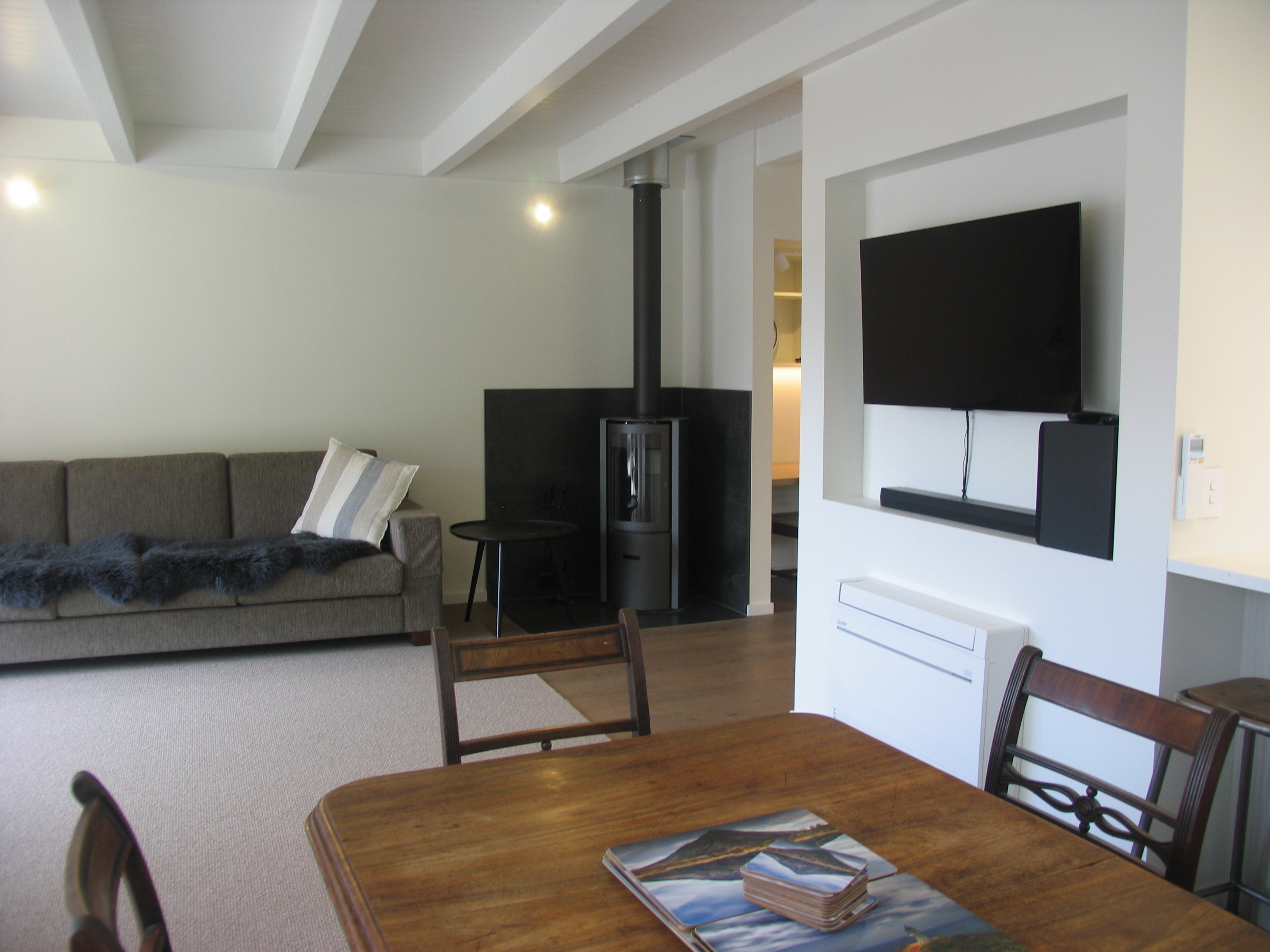 Fully double glazed, woodburner in the living room and heat pumps in each bedroom.