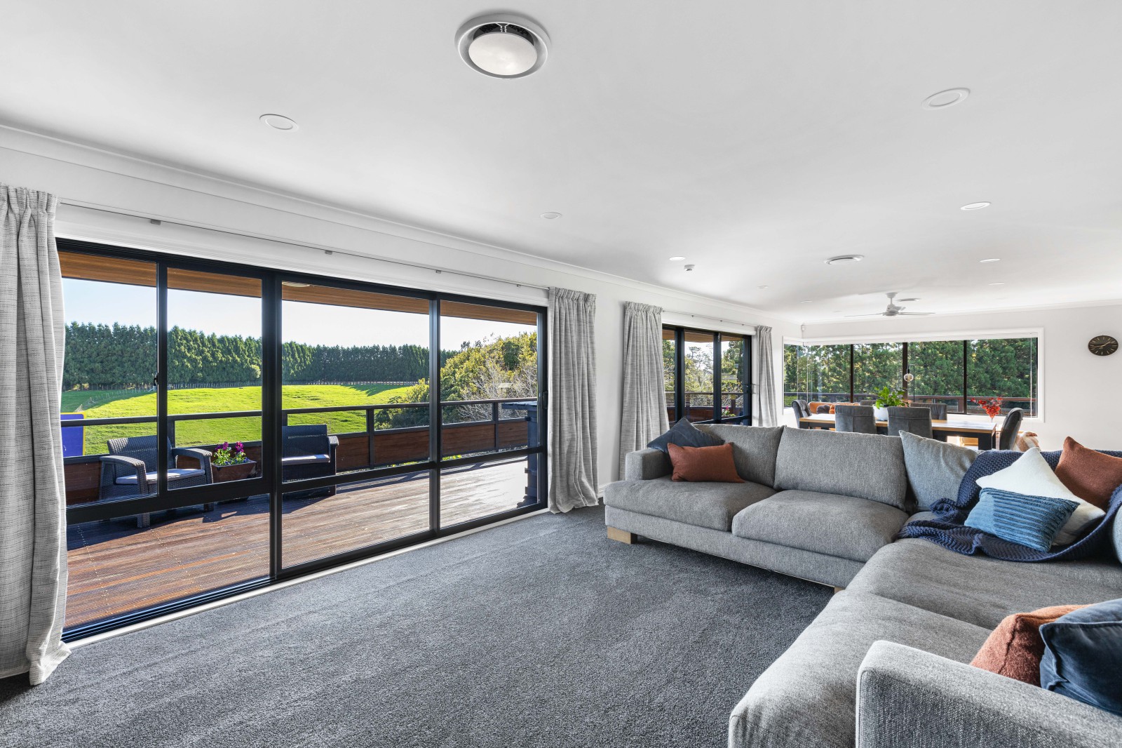 Inside the open plan living areas flow seamlessly together consisting of the kitchen, dining and lounge. Enjoy modern features such as central heating and a ducted vacuum system along with the plush new carpet covering the dining and lounge with wooden flooring in the kitchen. Enjoy the convenience of walking out onto the wrap around balcony with your morning coffee to enjoy the rural views.