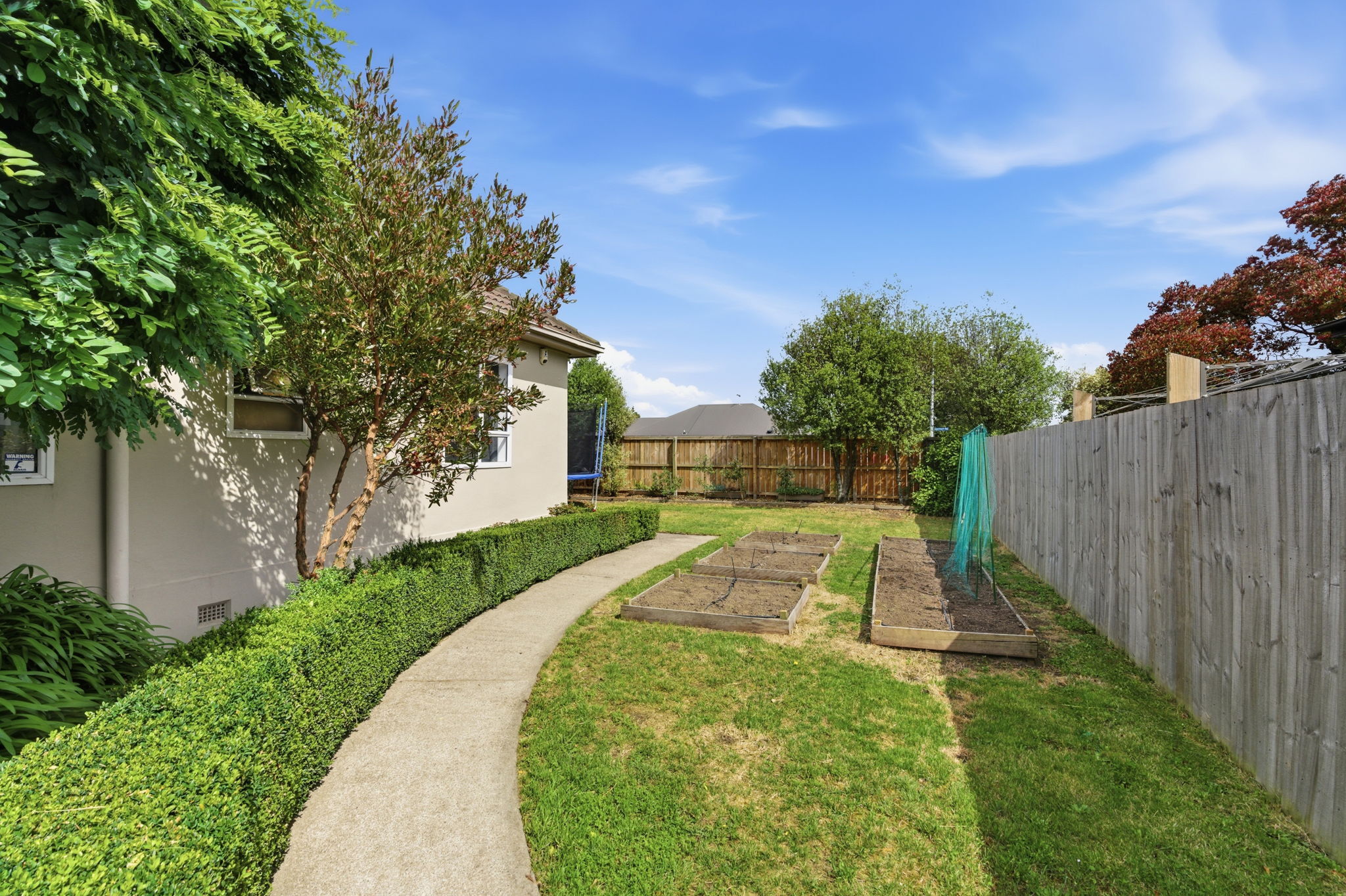 The expansive garden, complete with a veggie patch ready for planting, offers plenty of space for families to grow and enjoy.