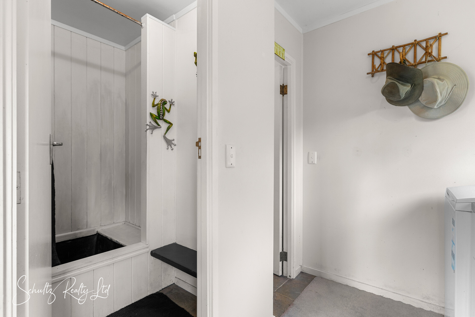 The lower level houses a separate laundry, an additional toilet, and a second shower-perfect for washing off after a day at the beach. Practicality meets peace of mind with a large water tank, a new roof over the main part of the house (with an additional section replaced eight years ago), and a three-bay garage with two brand-new roller doors. One bay is enclosed, making it an ideal workshop space.