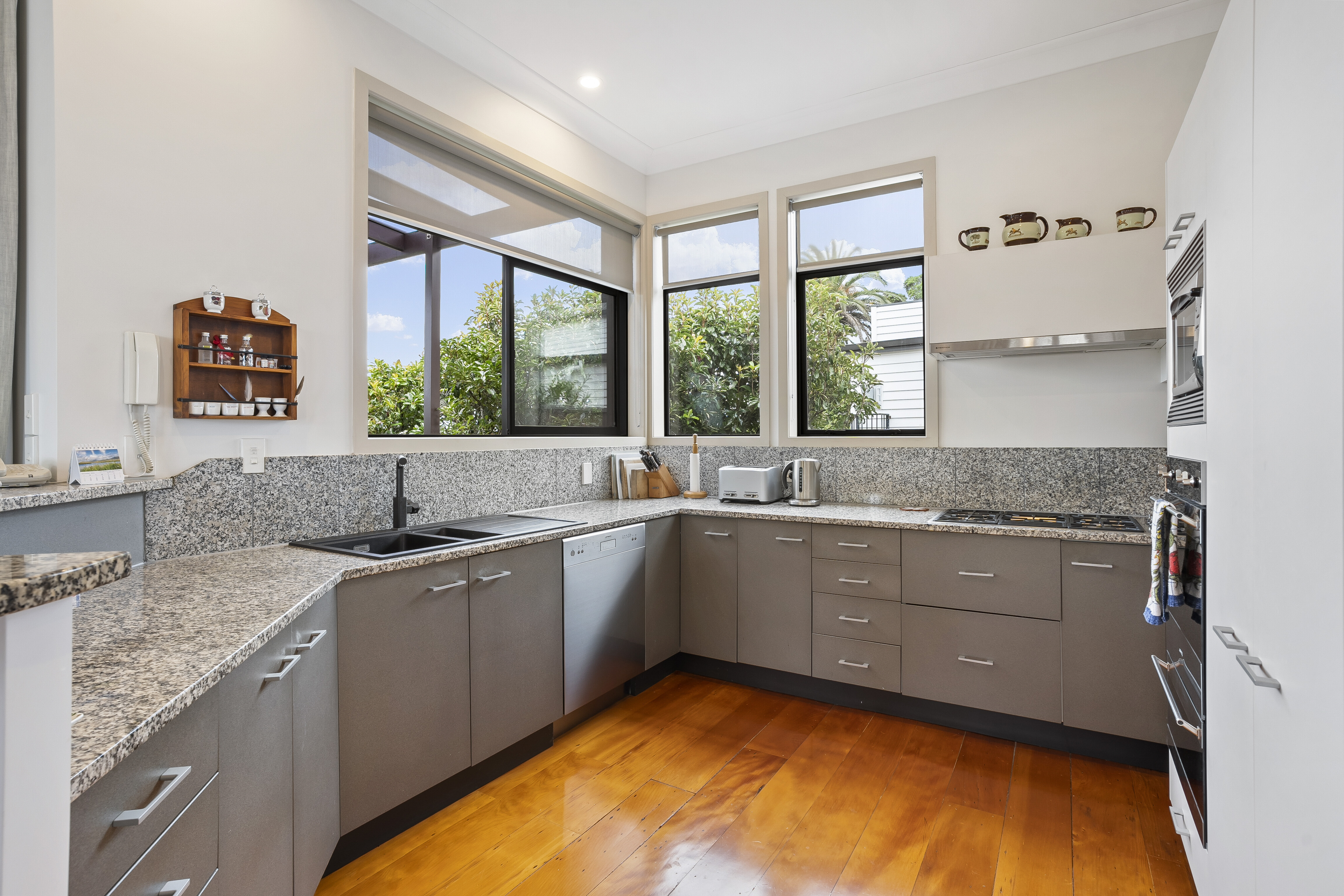 Solid timber flooring and elegant blinds and drapes instil a timeless interior ambiance while outside the lush, landscaped gardens attract local native birdlife.