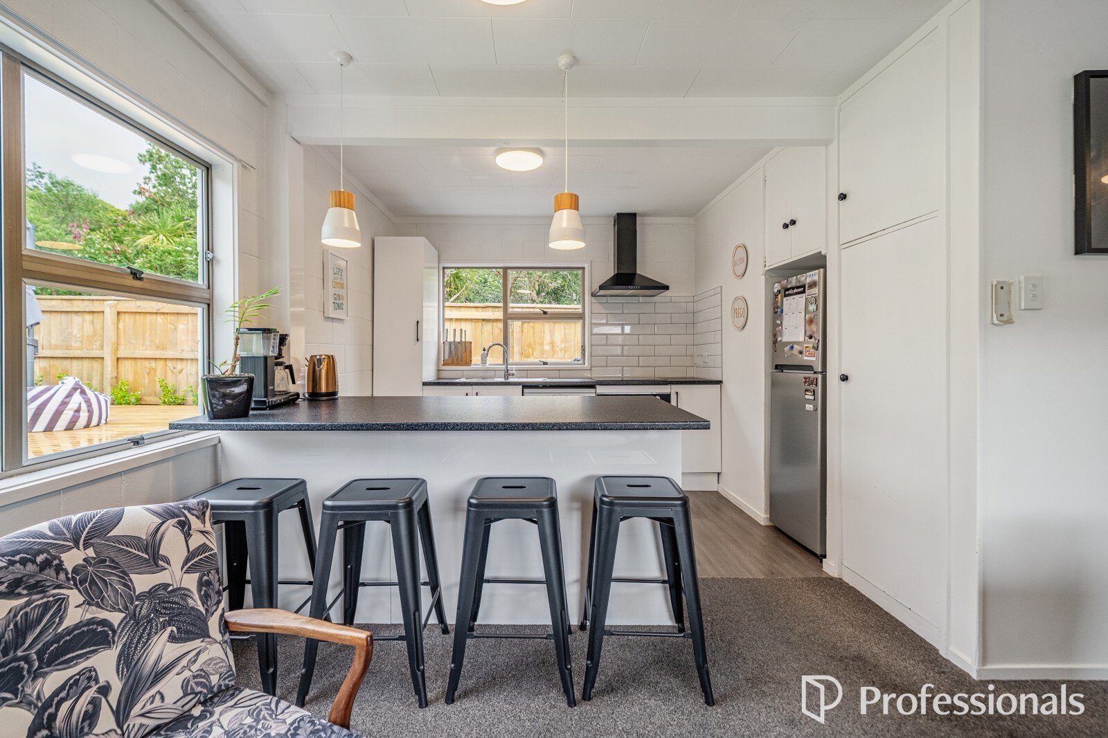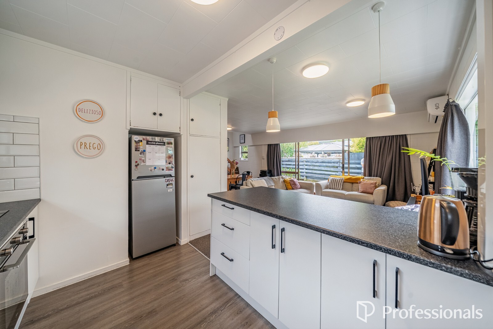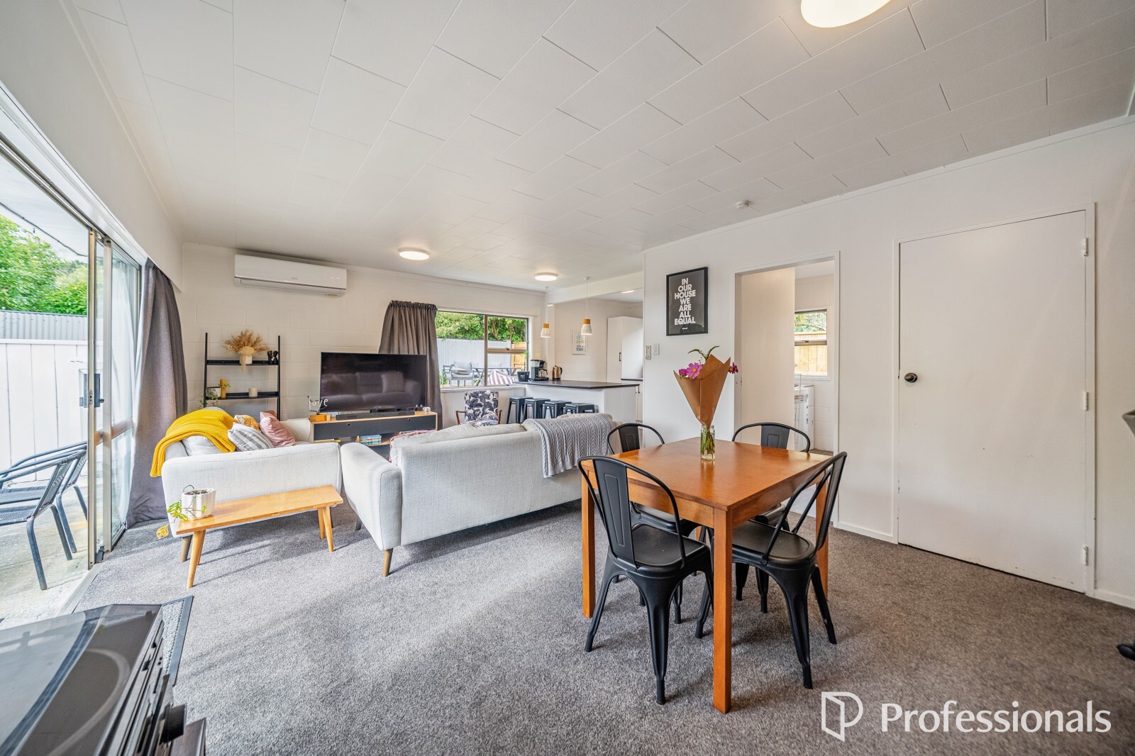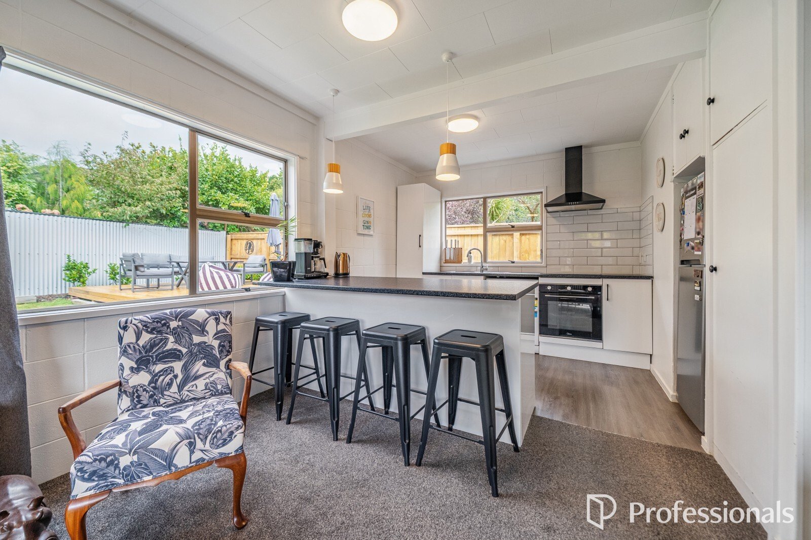 The well-laid-out kitchen offers ample storage and is perfect for entertaining, while the generous living and dining space features fresh carpet and a new heat pump for year-round comfort.