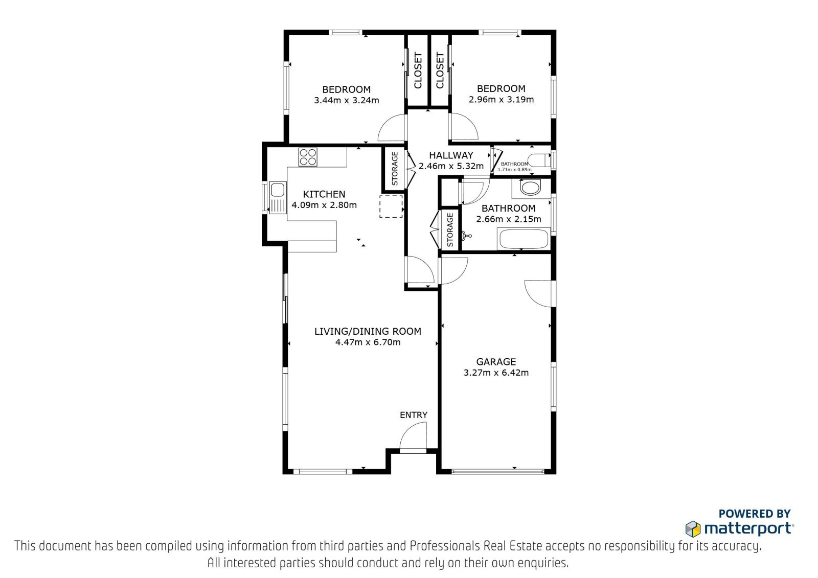 Down the hallway, you'll find two double bedrooms, each featuring inbuilt wardrobes, ensuring plenty of storage and light / sunny relaxation. The bathroom includes a shower, bathtub and vanity with the convenience of a separate toilet. The single internal-access garage comes fully carpeted, providing both comfort and practicality.