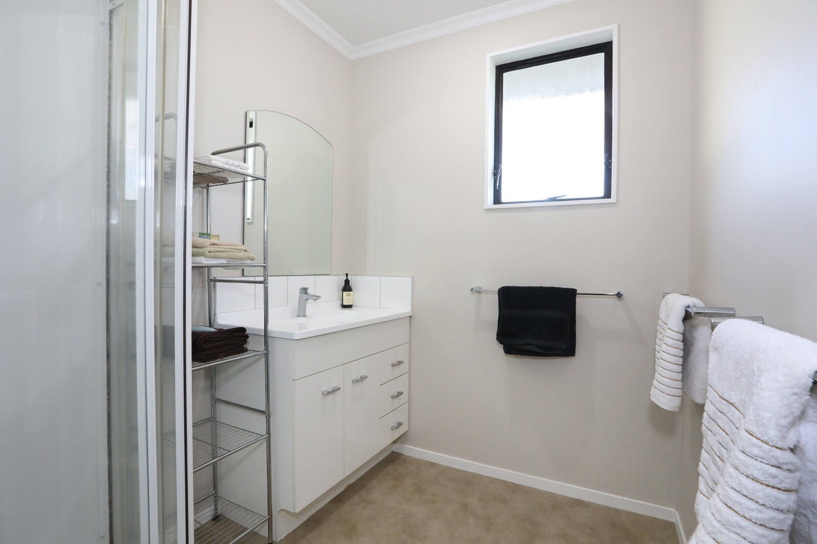 Walking through into the hallway you will find three double bedrooms, main bathroom - shower (dome), vanity and a separate toilet, plus a low level heat-pump. One of these bedrooms is the master and it has a large walk in wardrobe, plus en-suite with corner spa bath, toilet & handbasin.