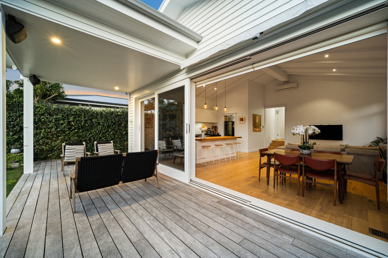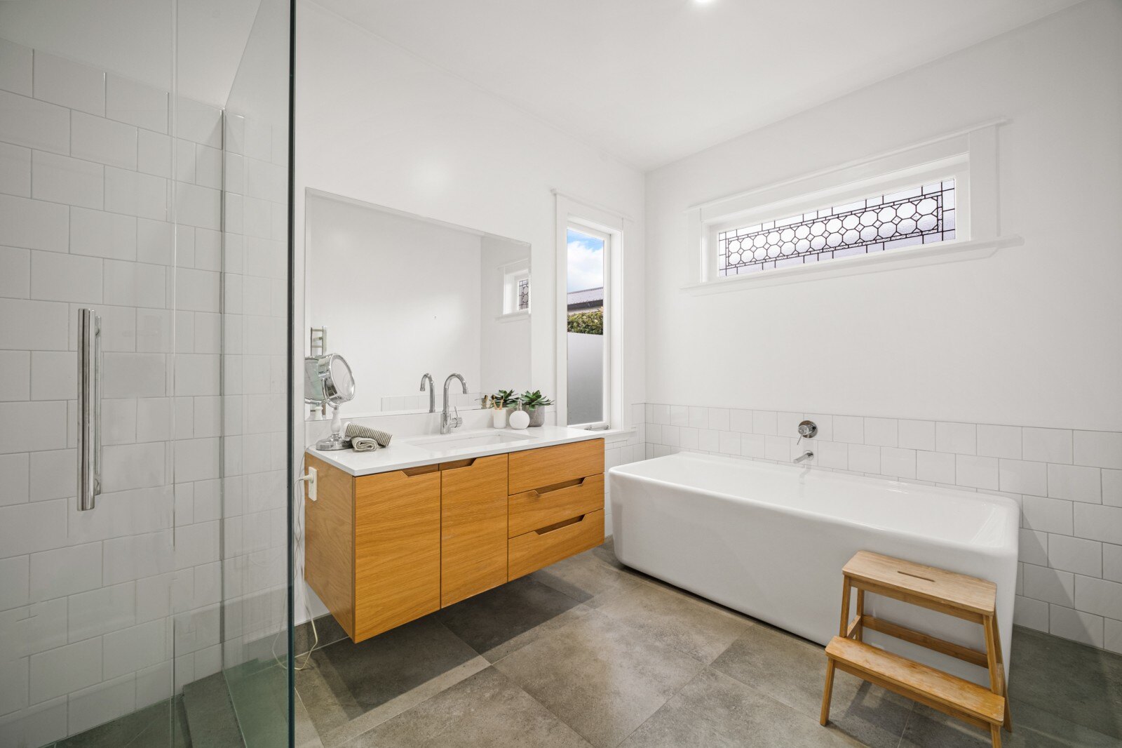 Year-round comfort is ensured with ducted heat pump and double glazing throughout the property. Underfloor heating in both bathrooms adds an extra layer of warmth during the colder months. A separate laundry provides added convenience.