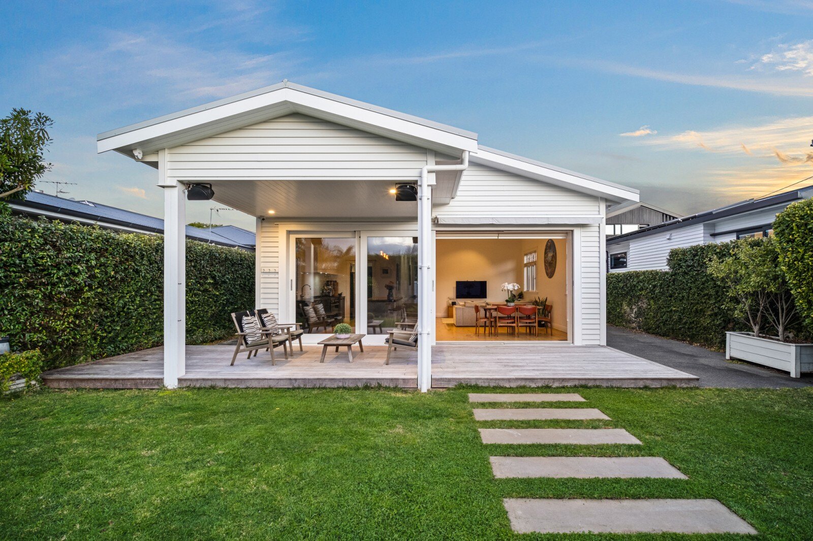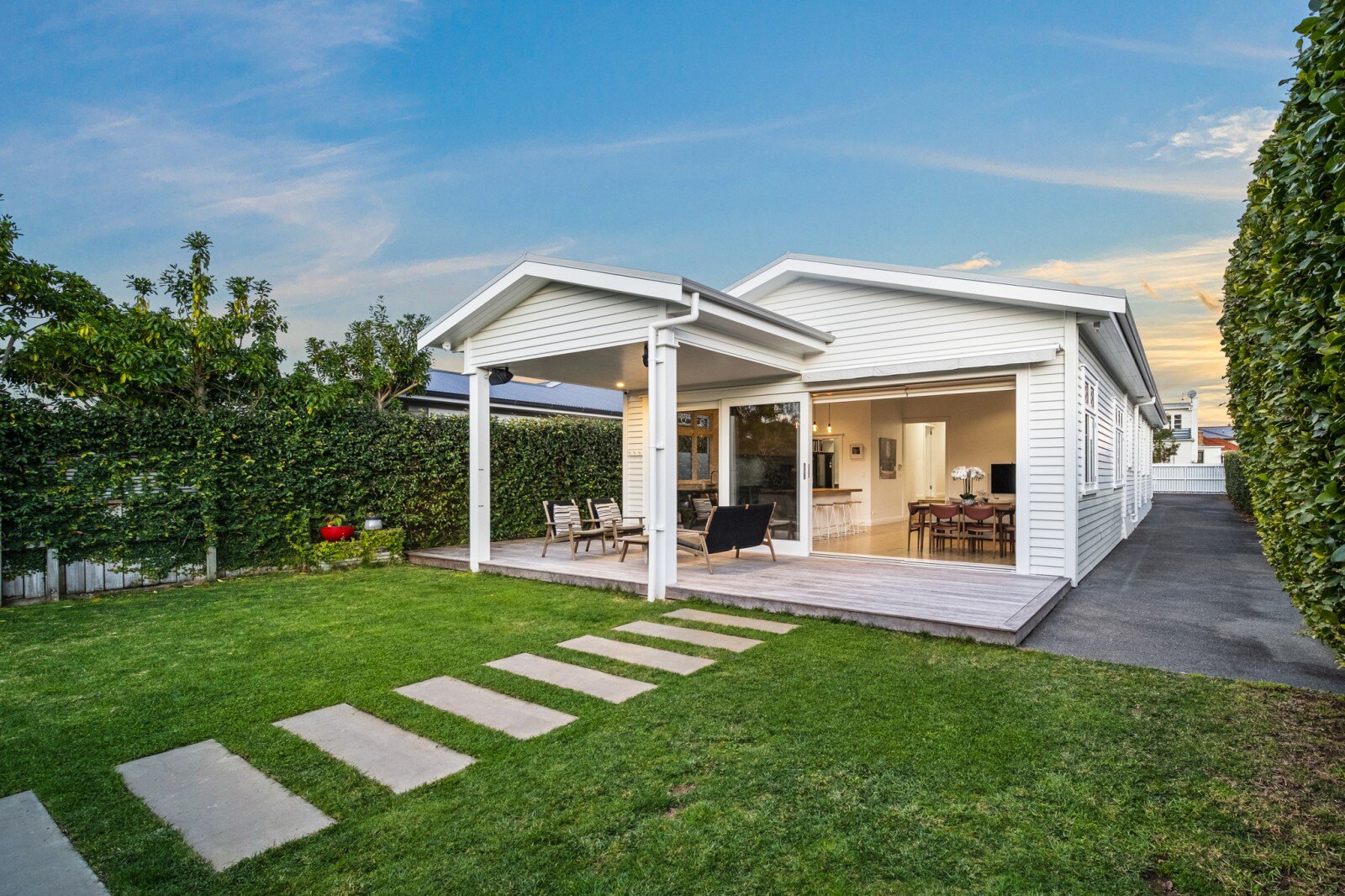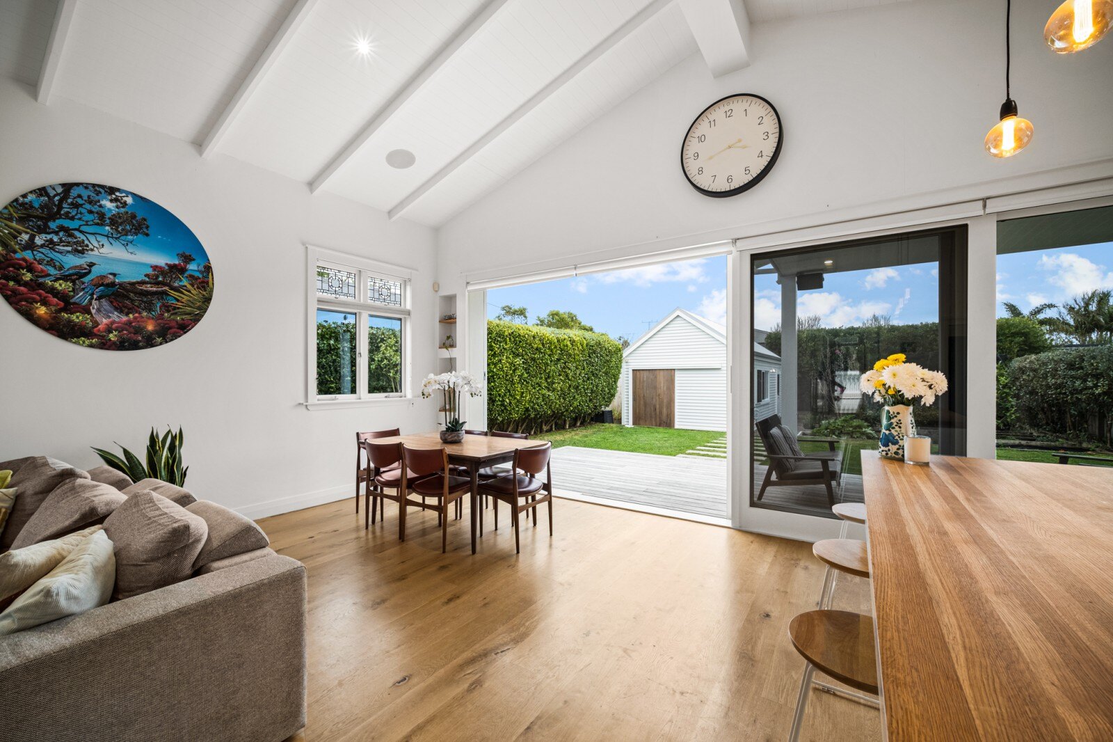 This beautifully renovated bungalow, complete with a versatile freestanding studio, offers a secure gated entry and a lush garden featuring charming feijoa and citrus trees.