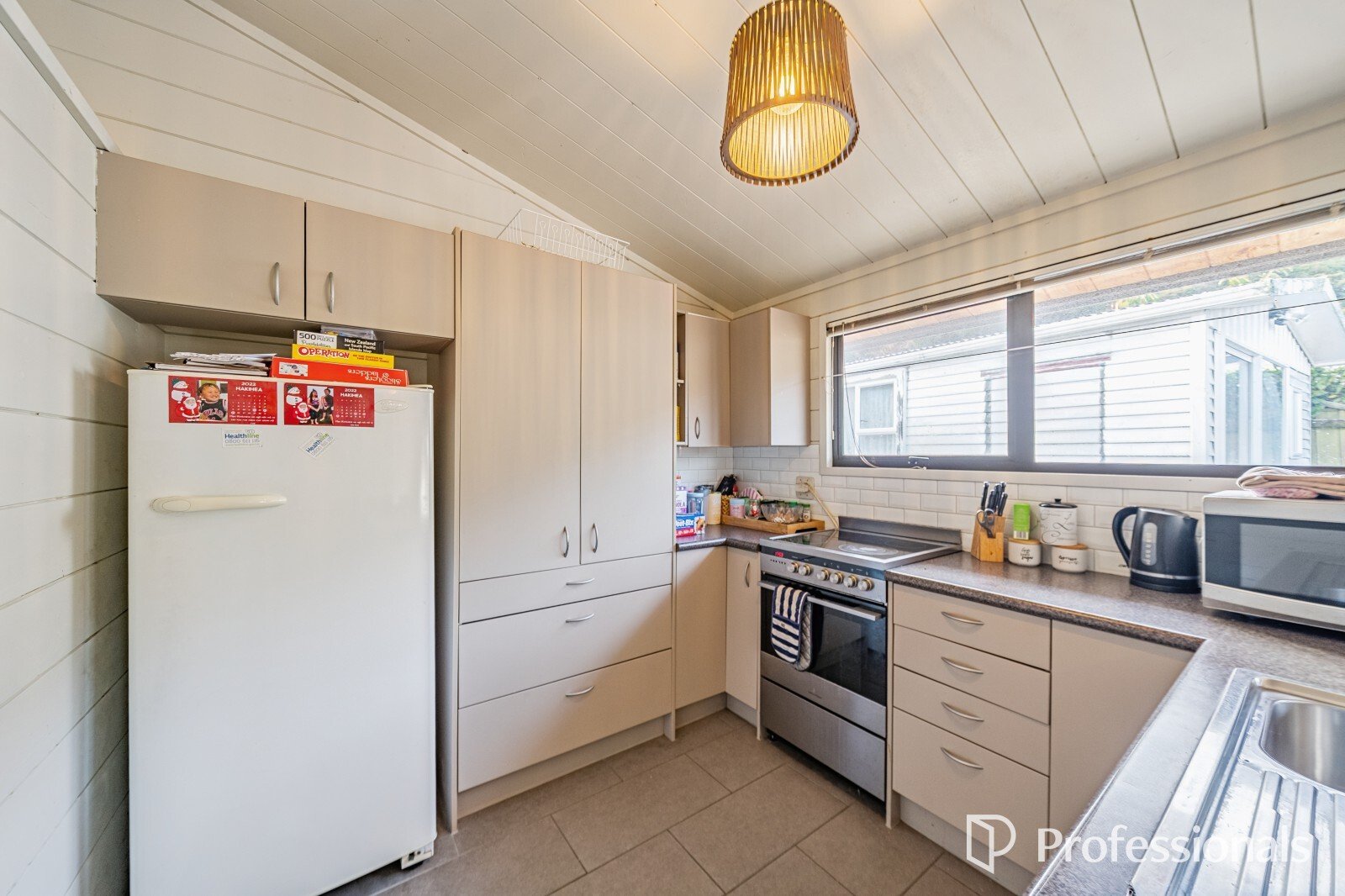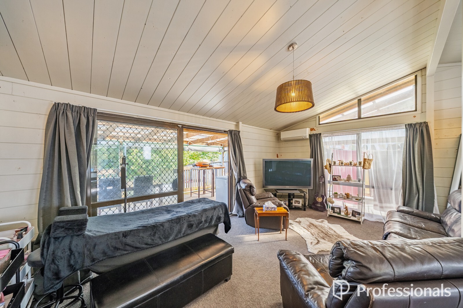 ideal space for everyday living and entertaining. The living area features a ranchslider opening out to the large deck, enhancing the indoor-outdoor connection. A heatpump provides year-round comfort, while the natural timber interior creates a warm and inviting atmosphere.