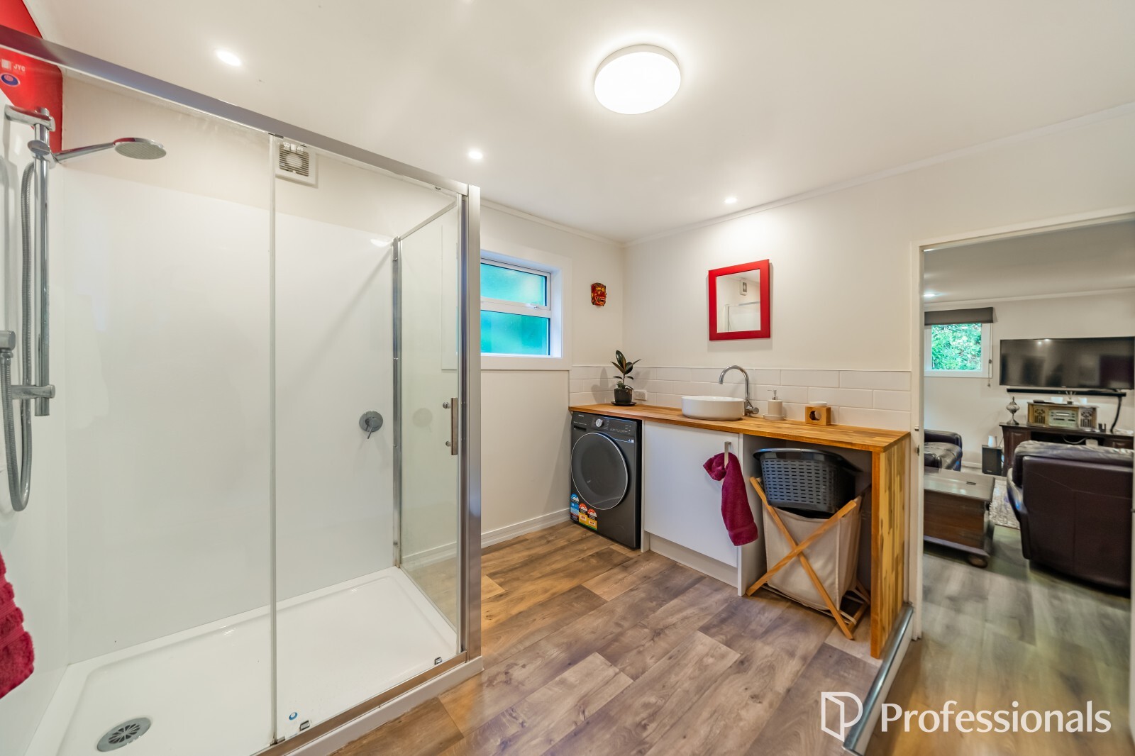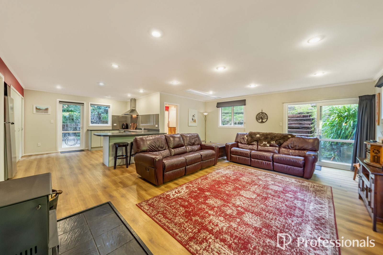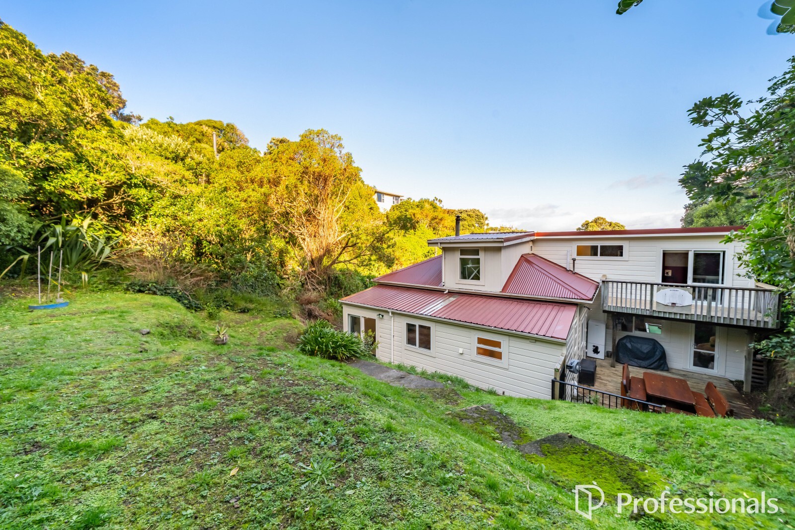 One of several outdoor entertaining areas, at the top of the garden, a standout feature awaits, your own private retreat! A large deck with spa pool sits proudly in an elevated position, delivering breath-taking views across the harbour and valley. It’s a true “top of the