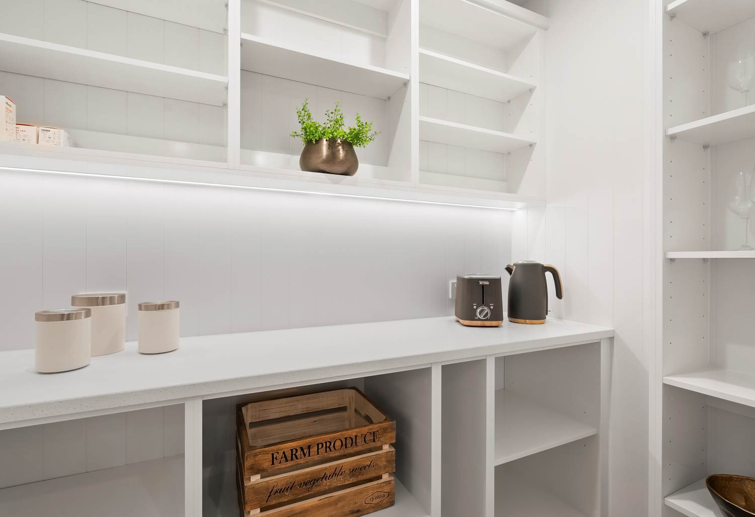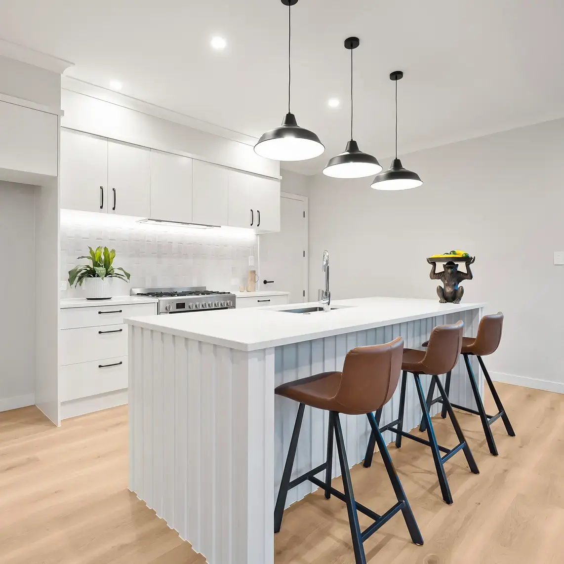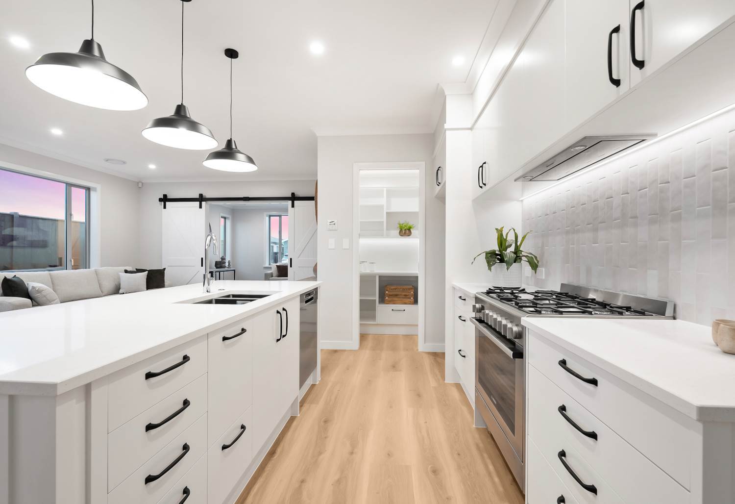 • A designer kitchen with stone benchtops, quality appliances and walk-in pantry