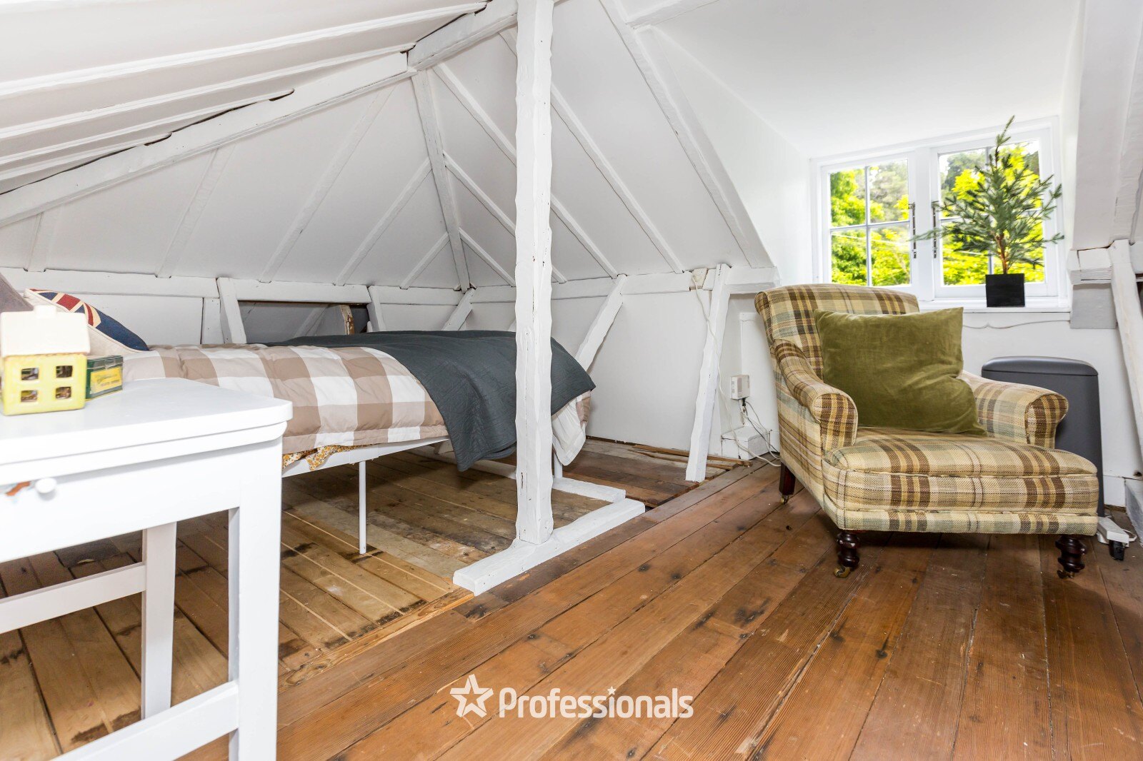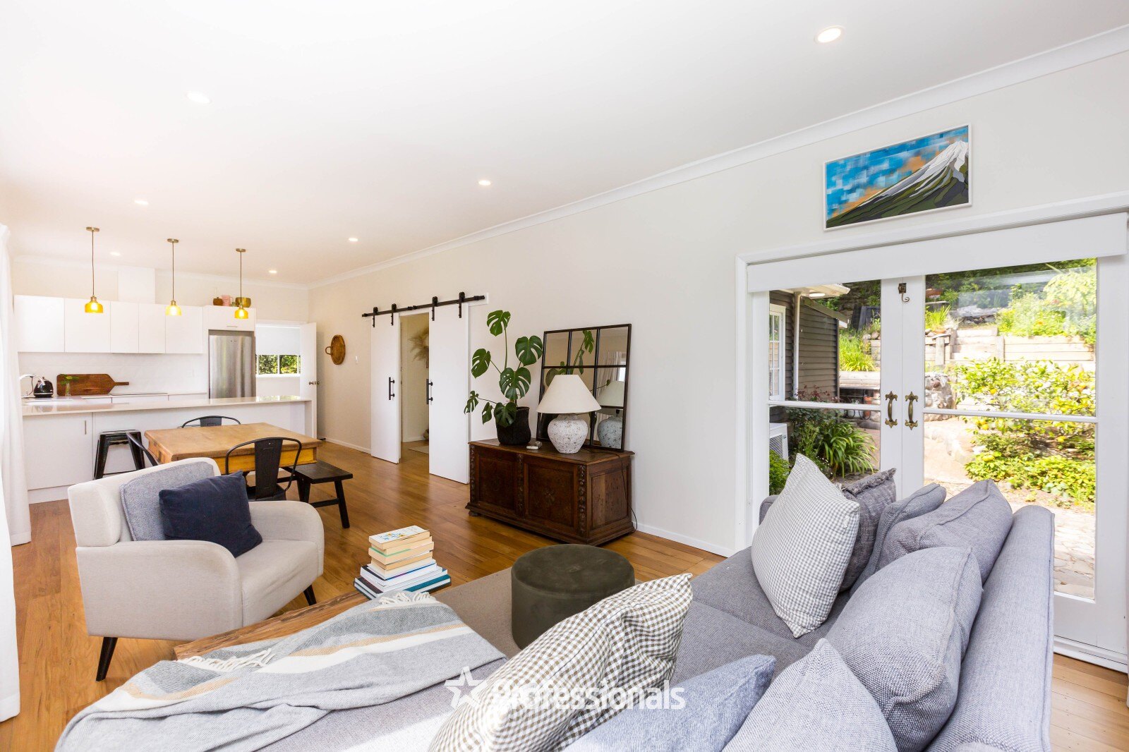 The main level offers open-plan living with large windows that frame picturesque views of the established gardens. The layout flows effortlessly, with striking barn-style doors leading to the master and second bedrooms, as well as the main bathroom. A delightful bonus is the original attic space, sure to spark the imagination of children and create a cozy retreat.