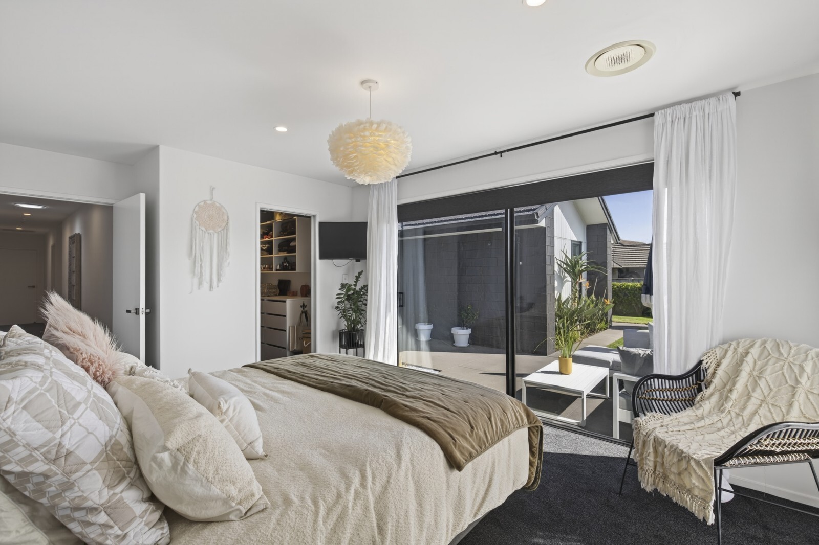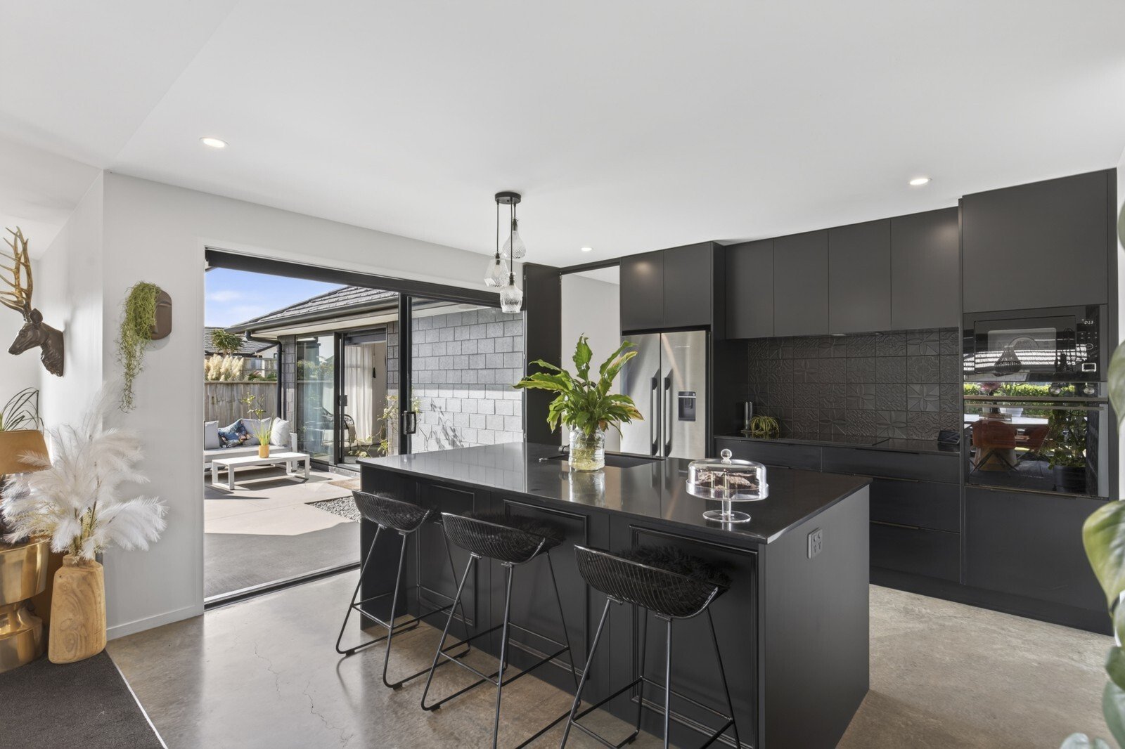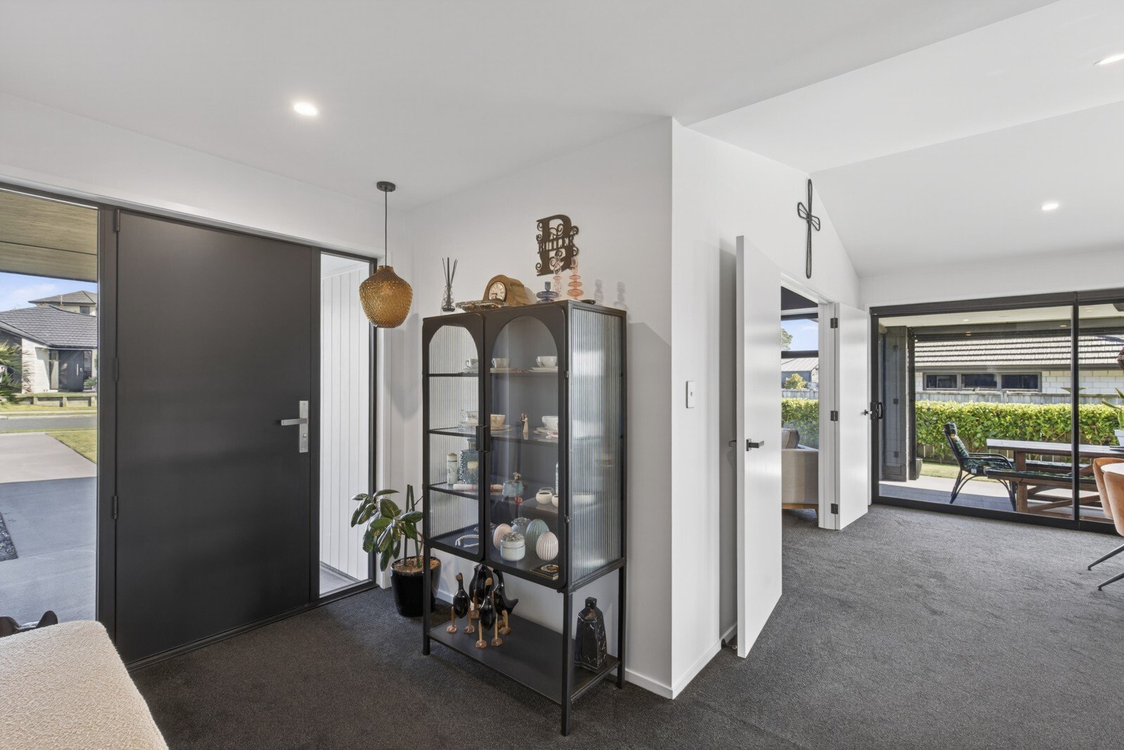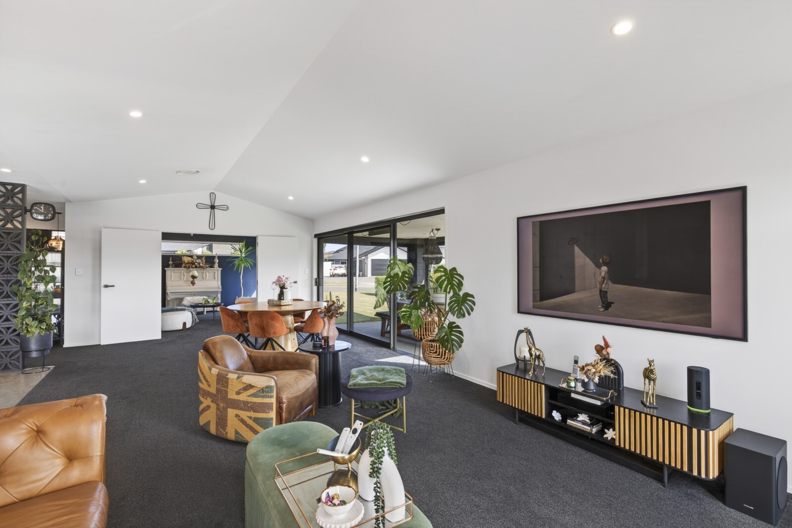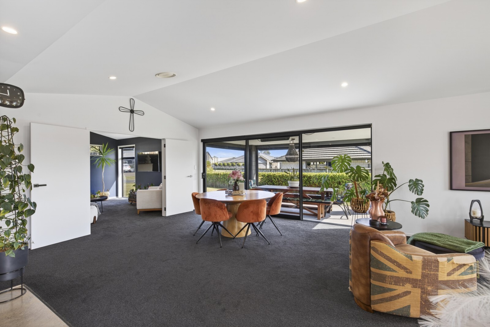 Effortless style meets comfortable living with this beautifully designed modern home. From the moment you arrive, you’ll appreciate the clean architectural lines, simple yet striking landscaping. Inside, the heart of the home unfolds into a stunning open plan kitchen, living, and dining area. This light-filled space flows effortlessly to both of the two designated outdoor living zones, creating the perfect setting for entertaining or relaxing year round. An additional separate living room offers flexibility, ideal for a media lounge, family retreat, or quiet escape. The sleek, modern kitchen is a true showpiece, complete with a breakfast bar and a well appointed scullery, combining style with functionality. The master suite is a private sanctuary, featuring a walk-in wardrobe, a beautifully finished ensuite, and direct access to one of the outdoor living spaces, perfect for enjoying your morning coffee in peace. Three additional double bedrooms provide ample space for family or guests, all serviced by a sophisticated family bathroom complete with a full-size bath. A double internal-access garage provides both convenience and security, coupled with the appeal of flat, low-maintenance grounds, perfect for those seeking a refined lifestyle without the upkeep. Set on a lovely street in the ever poplar Bell Block, with local amenities and primary school close by.