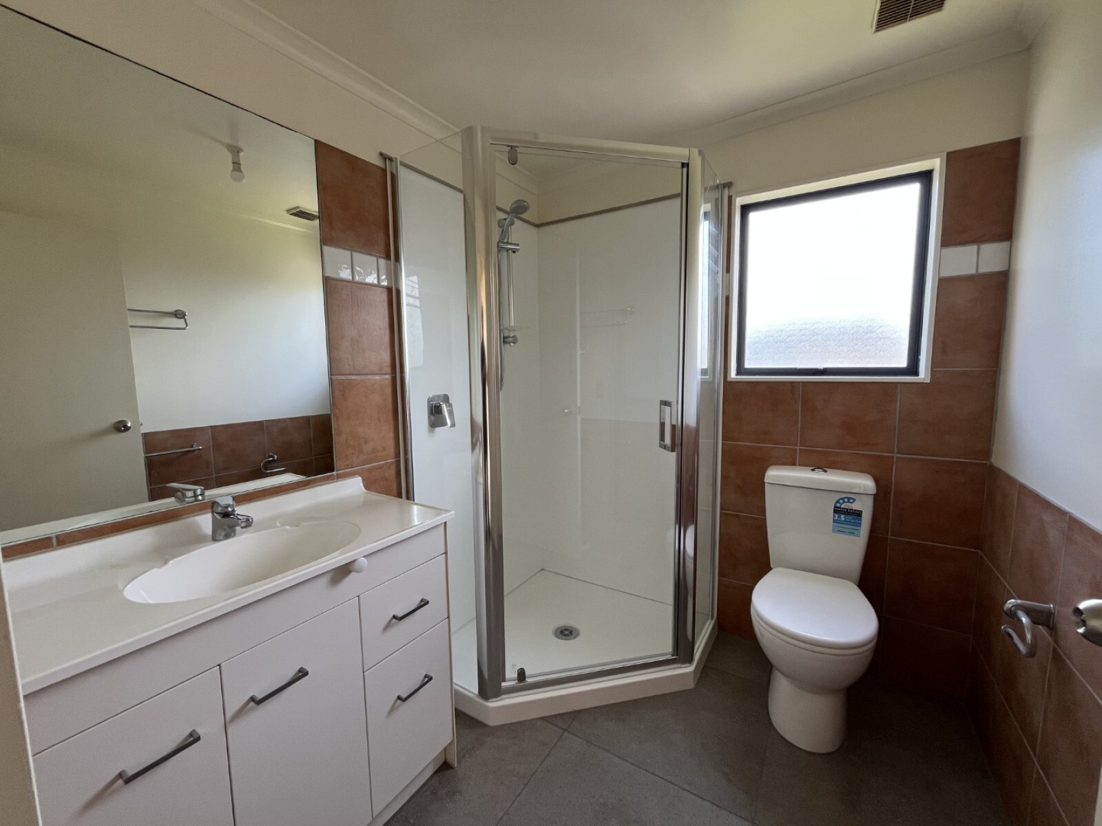 - Bathroom includes shower, vanity and toilet