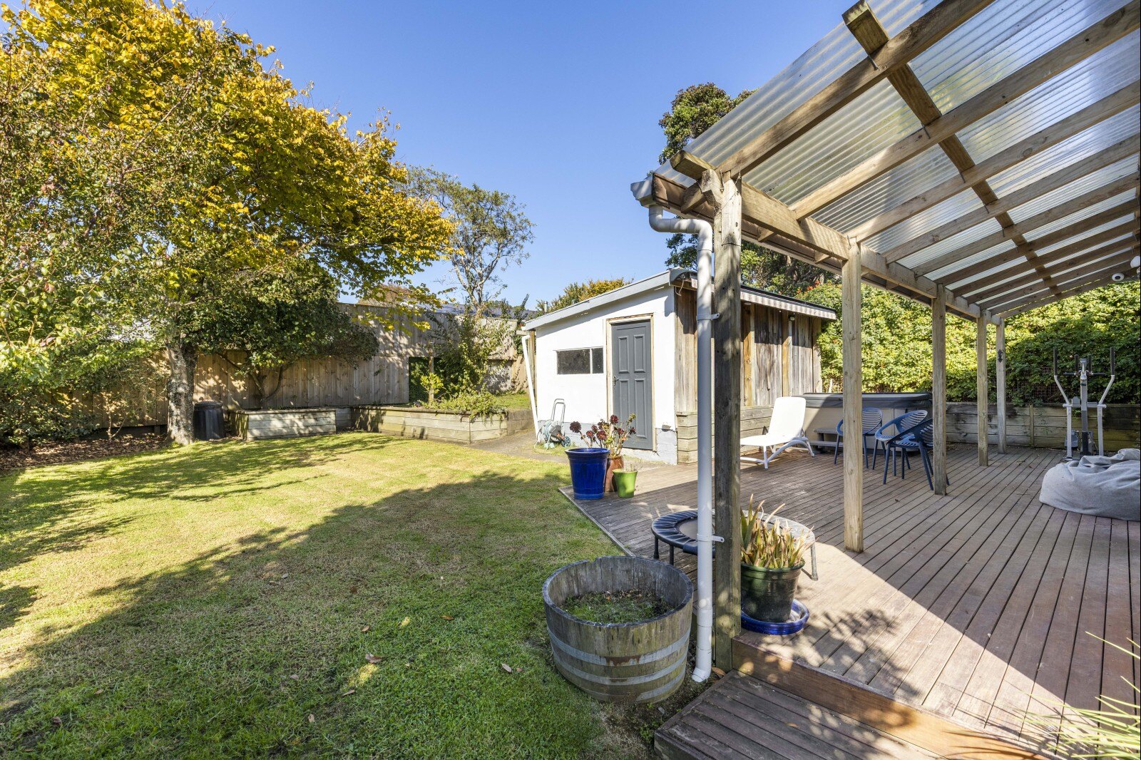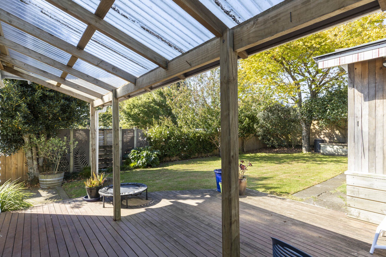 The seamless indoor outdoor flow leads to private deck areas, an ideal area for relaxing or entertaining family and friends. The fully fenced and flat backyard, with outdoor shower, is a dream for children, pets, and green thumbs alike. And with a large shed out back, there is room for a workshop, creative studio, or extra storage.