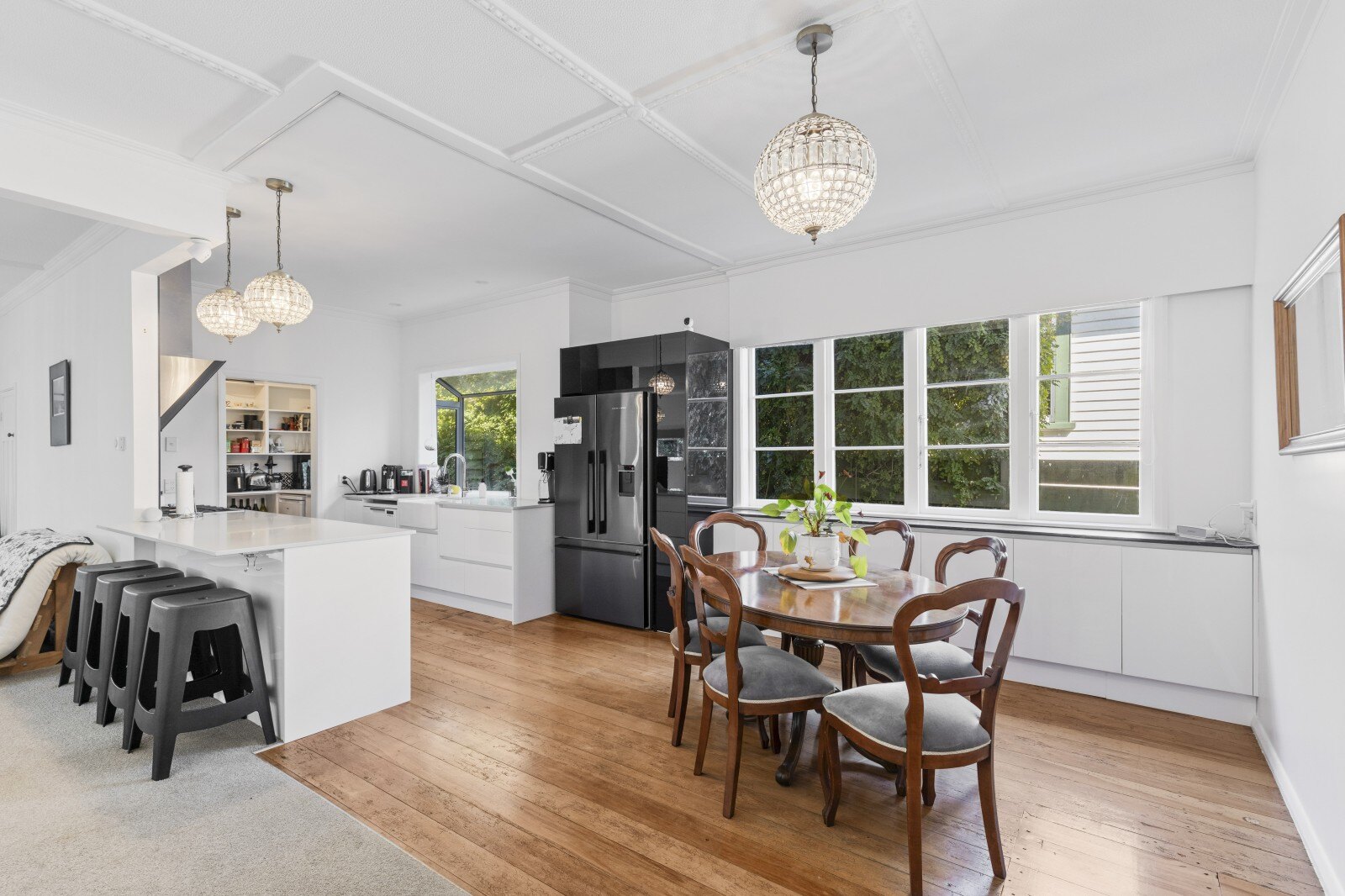 Step inside and be welcomed by light filled, open spaces that blend classic charm with contemporary style. This stunning home offers three generously sized bedrooms, a designer bathroom featuring statement tiling, and a sleek open plan modern kitchen complete with a scullery and feature lighting, perfect for those who love to cook and entertain. You will also enjoy the convenience of a spacious laundry with an additional toilet.