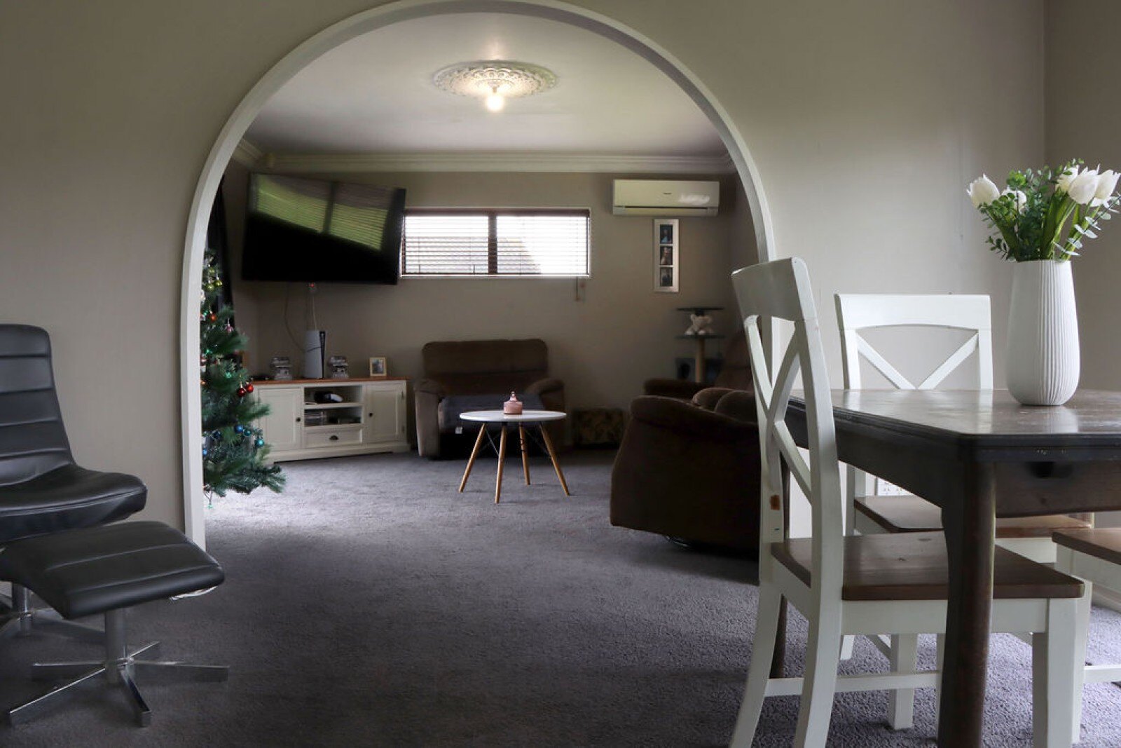 Inside, you'll find a thoughtfully designed layout that includes an open plan living/dining, Three bedrooms, separate laundry, a convenient separate toilet and a well-appointed bathroom with a shower-over-bath. The sunny dining area is an inviting space for family meals and gatherings and the heat pump ensures year-round comfort.