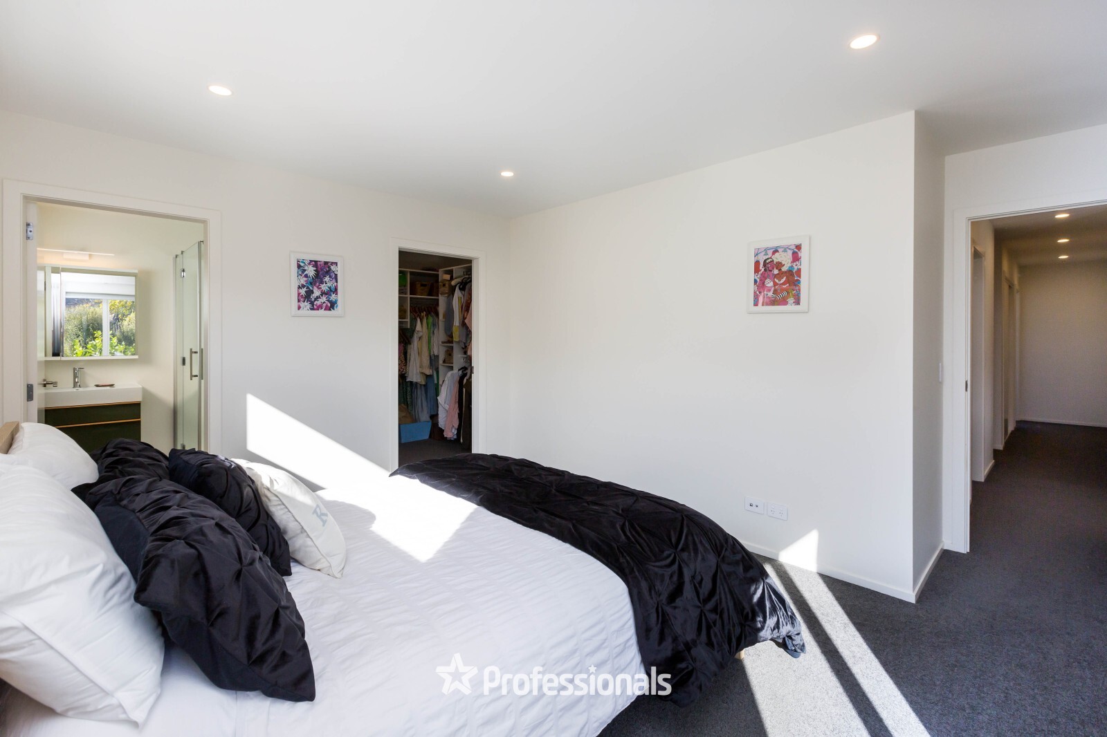 The large comfortable master bedroom offers a walk-in wardrobe, ensuite, and sunshade blinds, while two additional double bedrooms also feature built-in wardrobes and plenty of natural light.