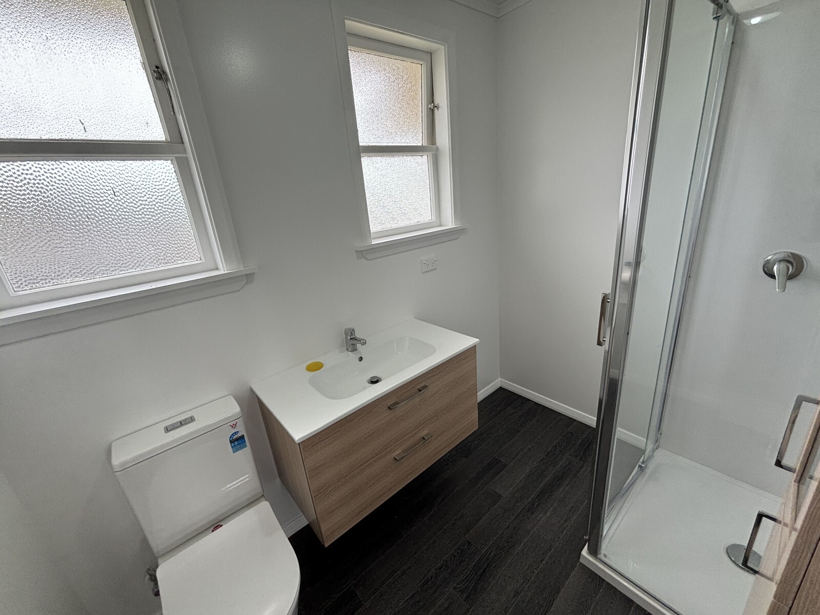 - Bathroom includes shower, toilet and vanity
