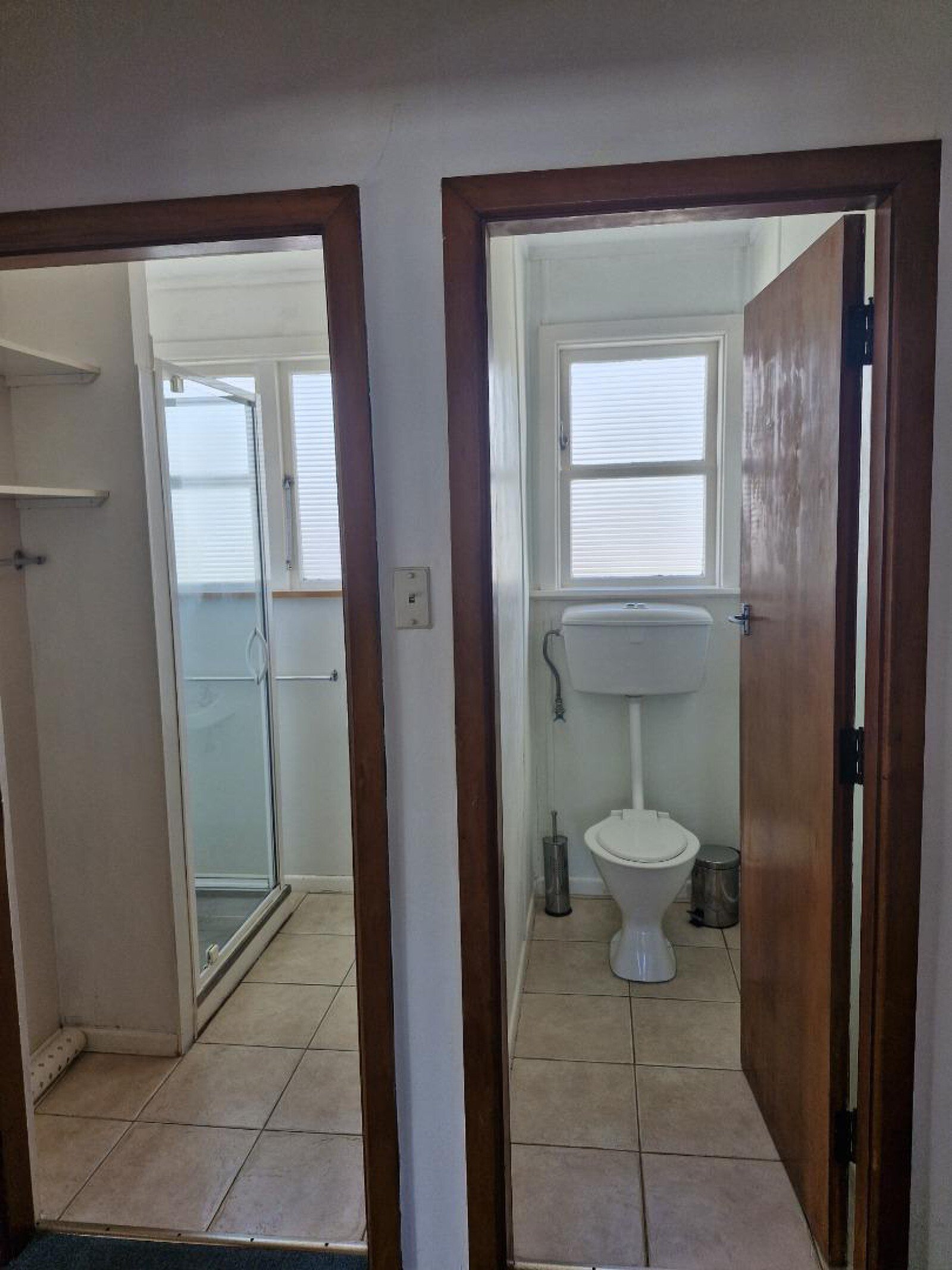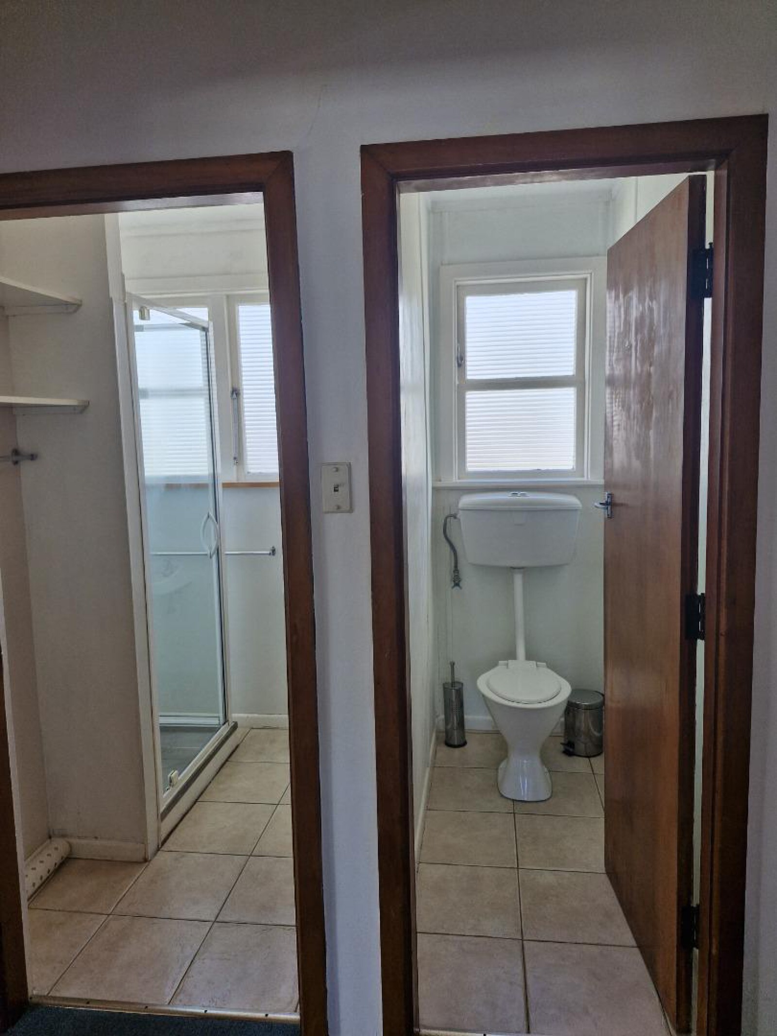 Bathroom consists of shower, hand basin and the toilet is separate. Two good size bedrooms each with a single wardrobe.