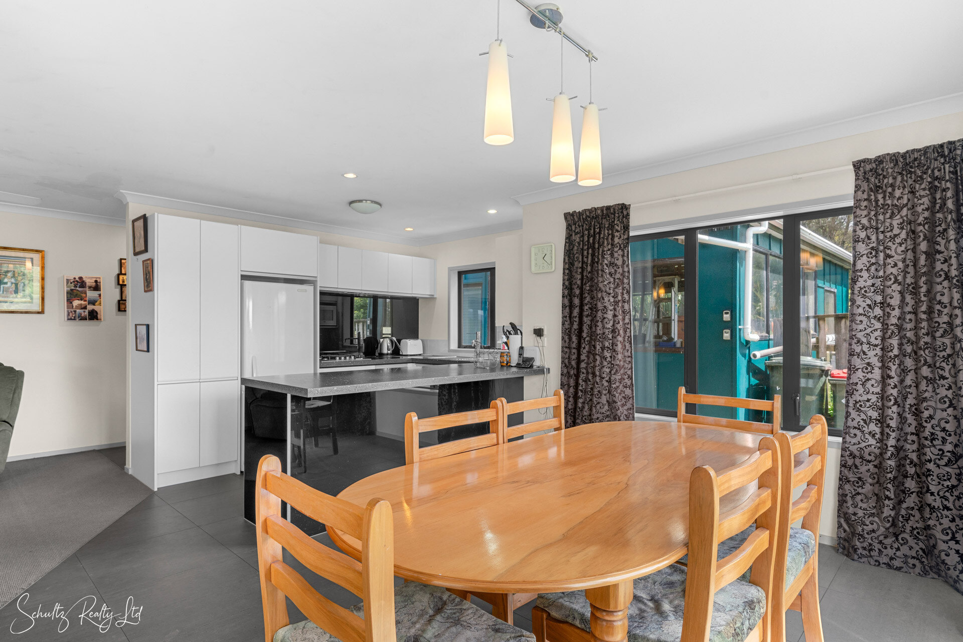 The heart of the home lies in the open plan kitchen, dining, and living area. The modern kitchen boasts ample bench space and cabinetry, making it a dream for any home chef. The kitchen and dining areas feature stylish tiled flooring, adding a touch of elegance to everyday life.