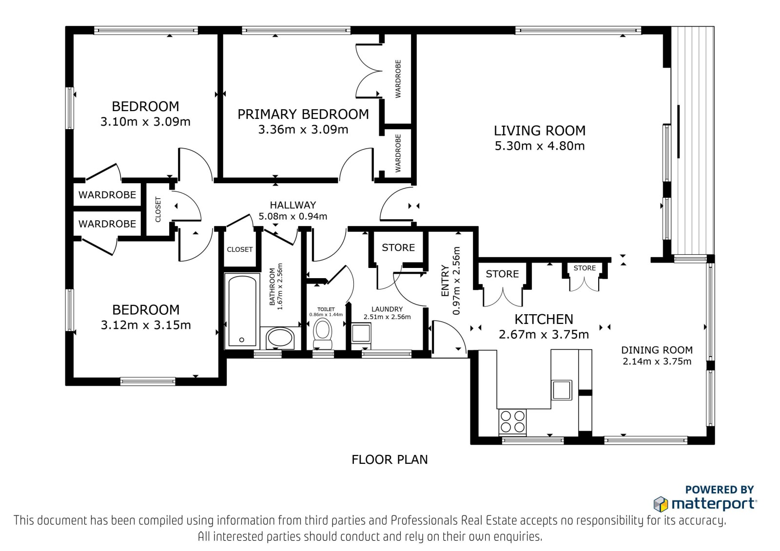 Venture down the hallway to 3 cosy bedrooms and a family bathroom. The bathroom features a vanity plus shower over the bath. The separate toilet is housed within the large laundry.