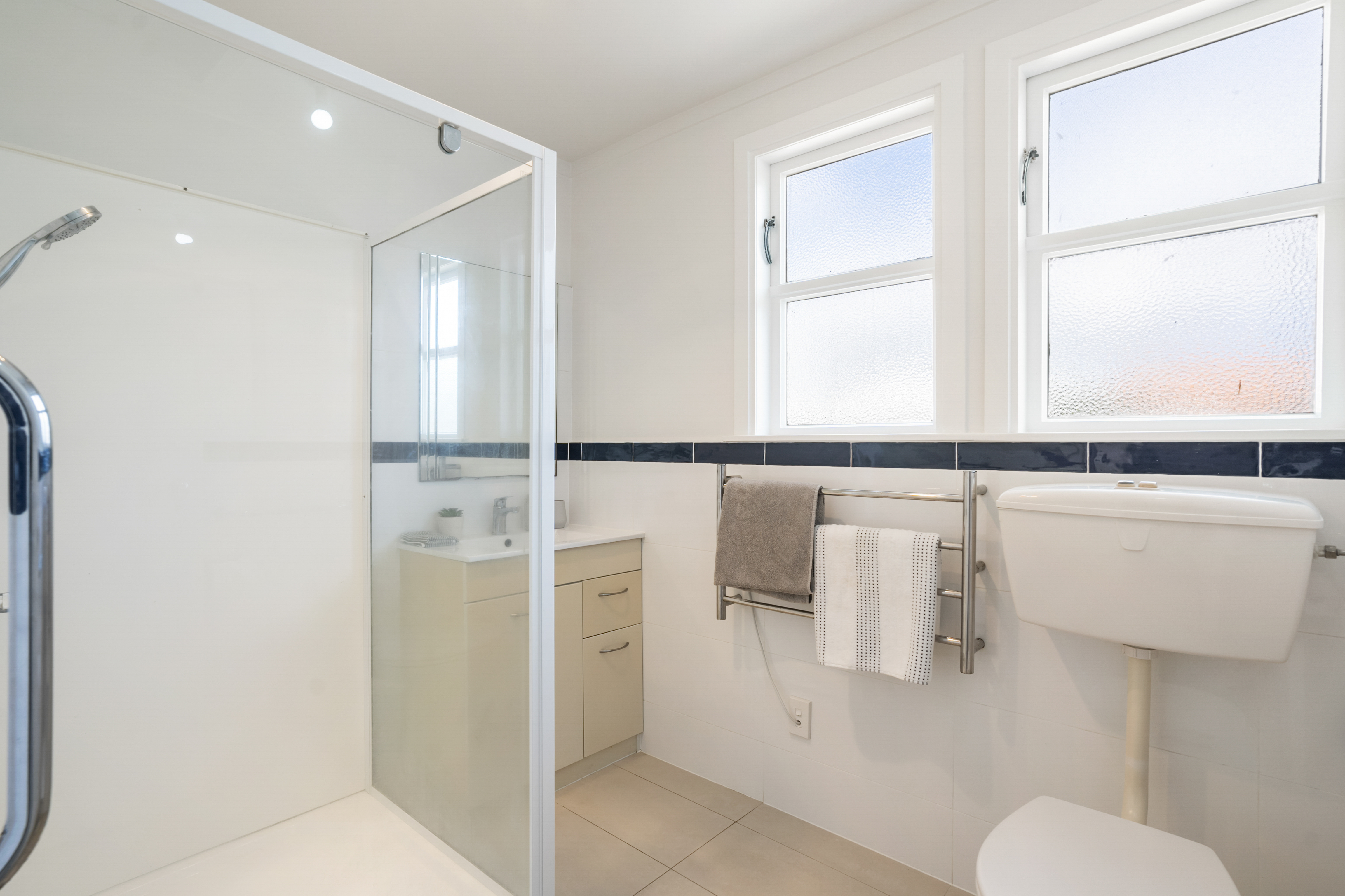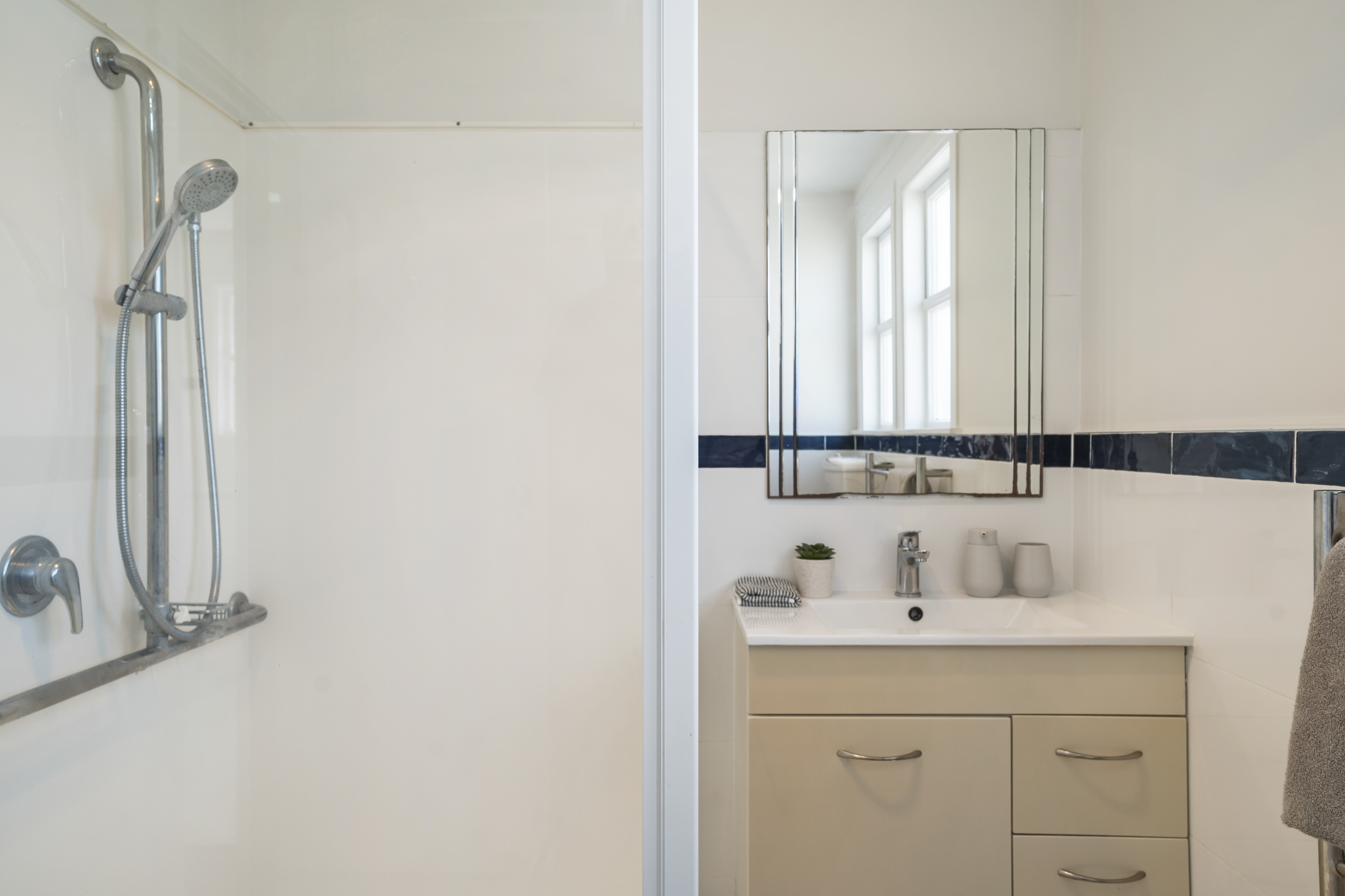 • Three bedrooms sharing tiled bathroom with shower and vanity