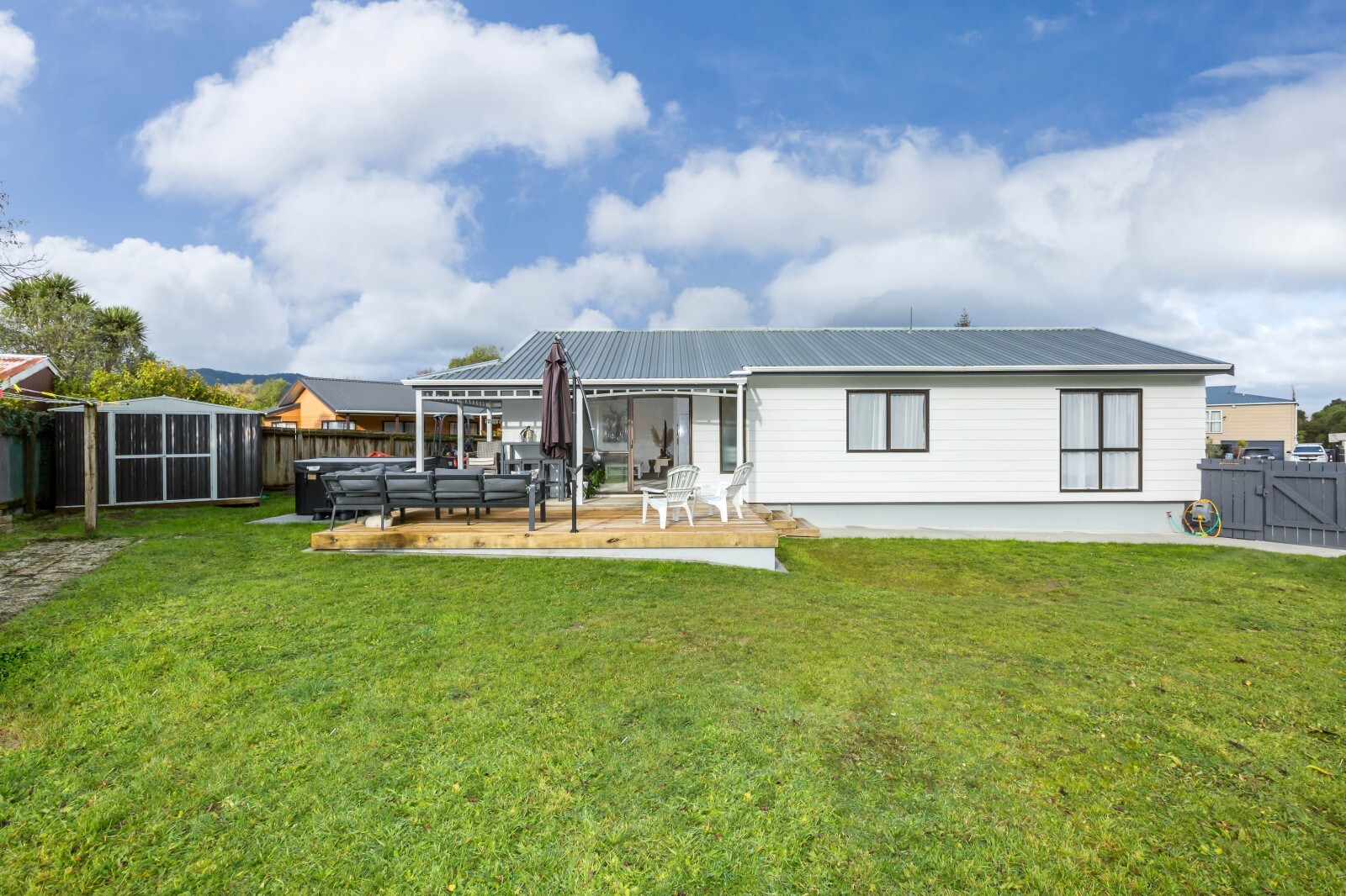 Step inside and be welcomed by the light-filled open-plan living and dining area, complete with a heat pump and seamless flow to an expansive sun-soaked deck, the perfect spot for summer BBQs or lazy weekend mornings. At the heart of the home is a brand-new kitchen, featuring an island bench, dishwasher, and rangehood, designed for both entertaining and everyday ease.