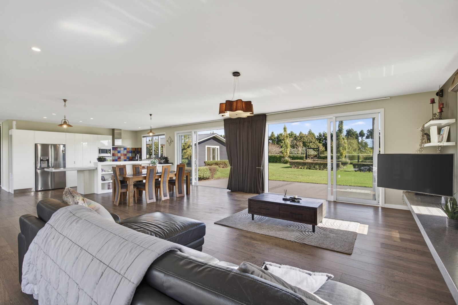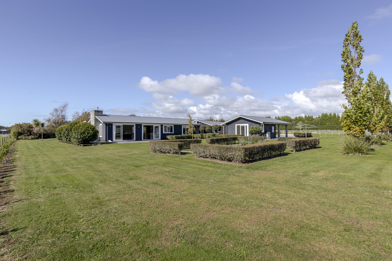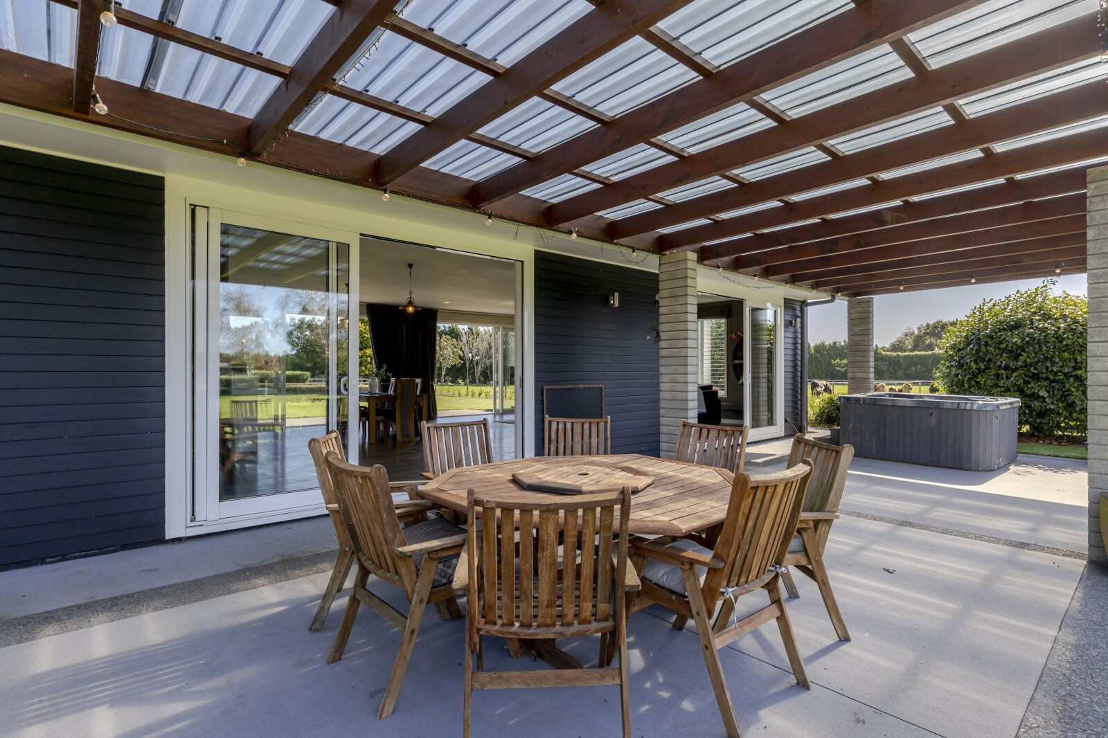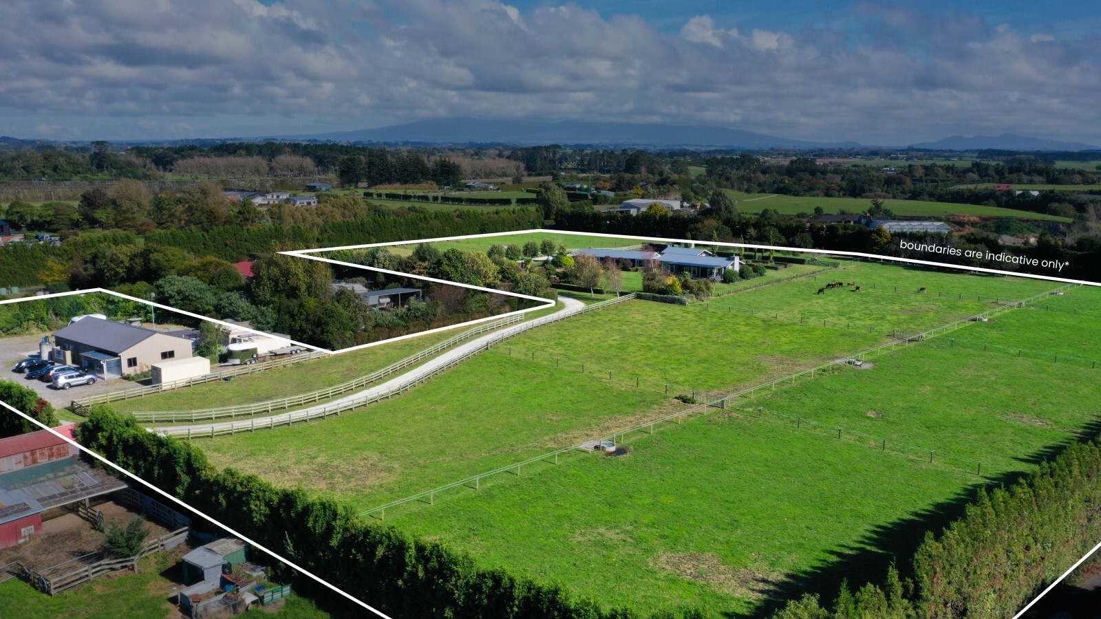 Outside, the property continues to impress. Beautifully landscaped grounds feature a concreted driveway with amazing parking space surrounding the home alongside a beautiful meandering driveway and established trees for privacy. The orchard filled with fruit trees plus storage sheds are a bonus. The flat, well fenced paddocks provide room for horses, sheep, or calves, while the expansive lawns create the perfect setting for children to play and explore. A covered patio with spa pool completes the picture, offering a great space to entertain or simply relax at the end of the day.