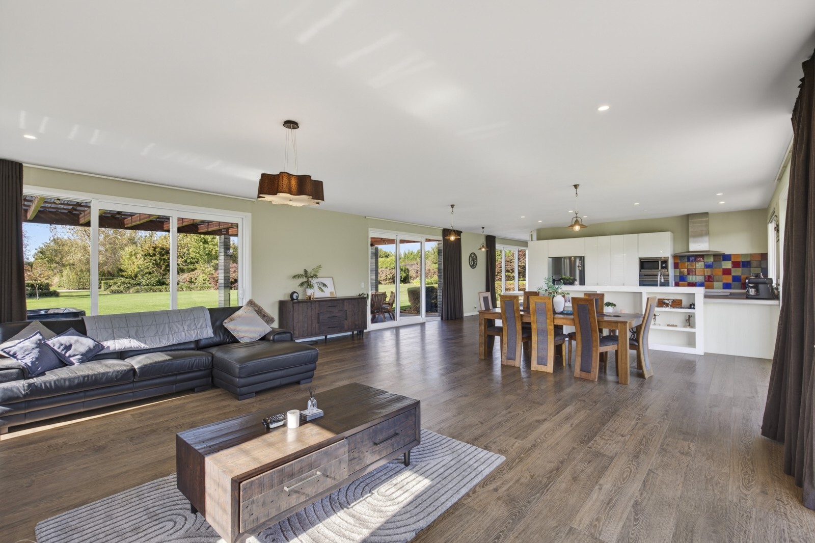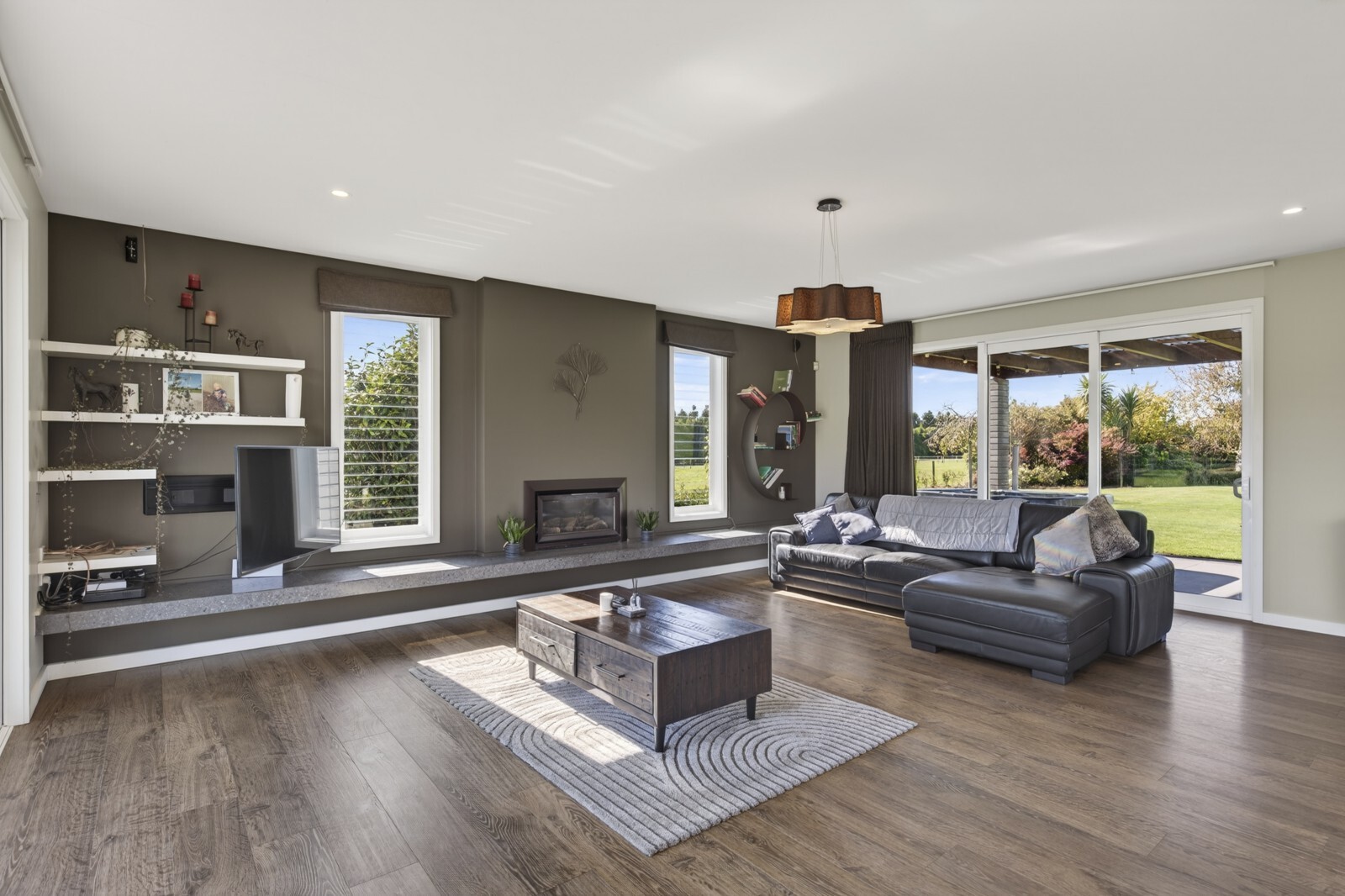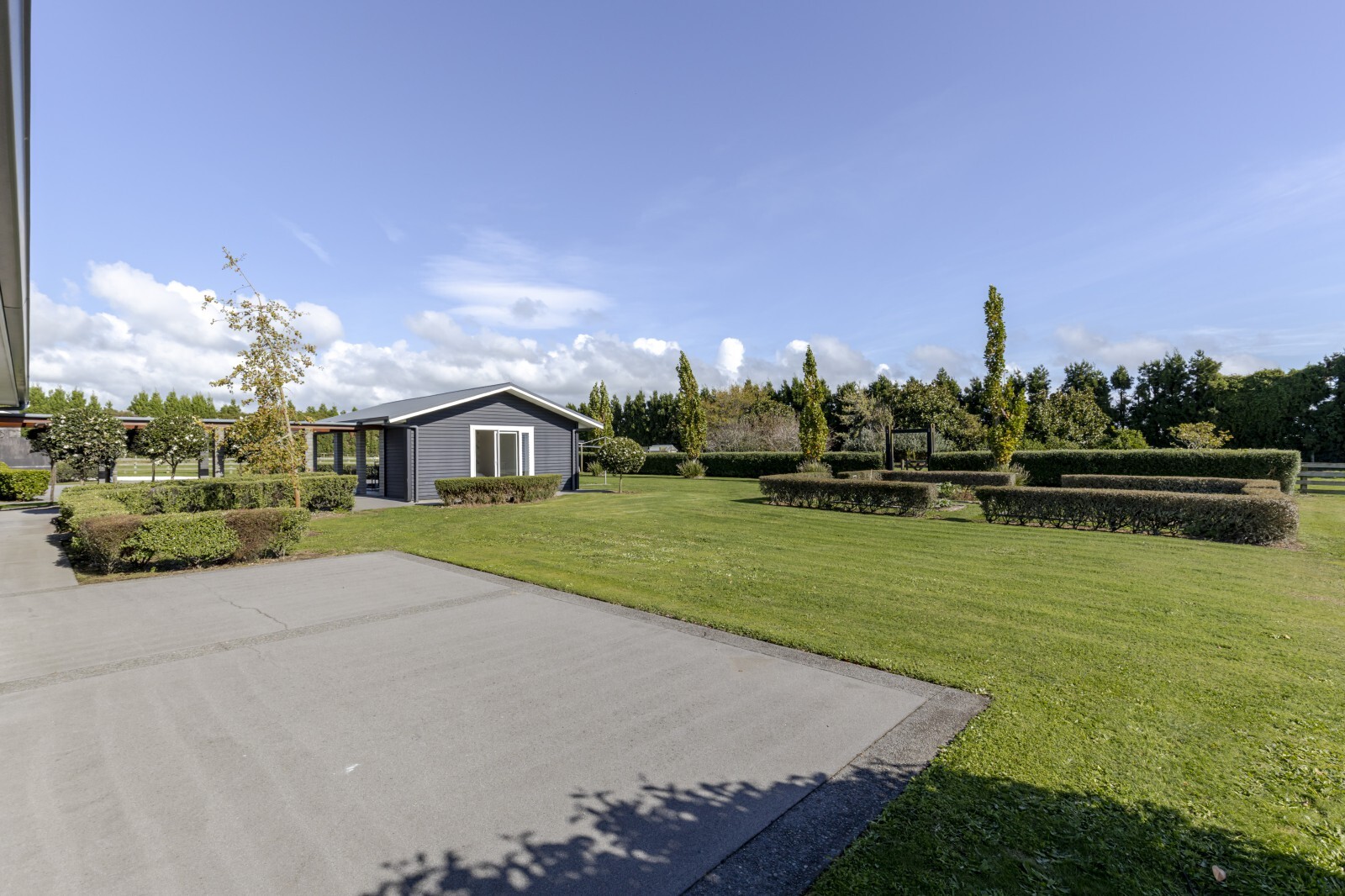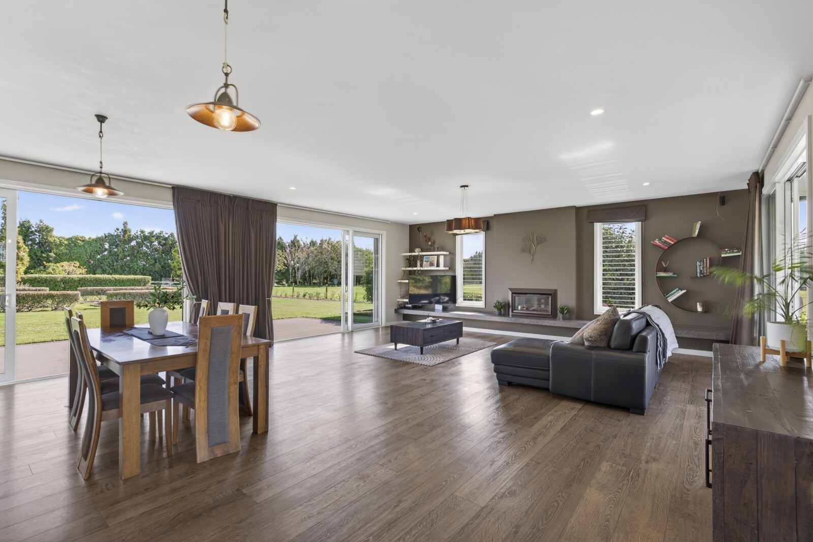 Outside, the property continues to impress. Beautifully landscaped grounds feature a concreted driveway with amazing parking space surrounding the home alongside a beautiful meandering driveway and established trees for privacy. The orchard filled with fruit trees plus storage sheds are a bonus. The flat, well fenced paddocks provide room for horses, sheep, or calves, while the expansive lawns create the perfect setting for children to play and explore. A covered patio with spa pool completes the picture, offering a great space to entertain or simply relax at the end of the day.