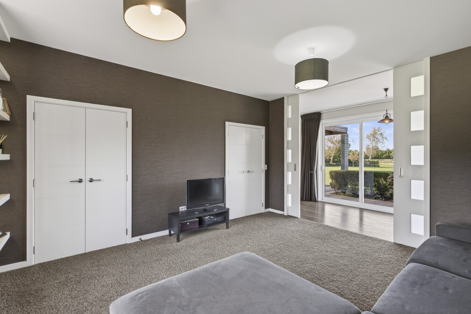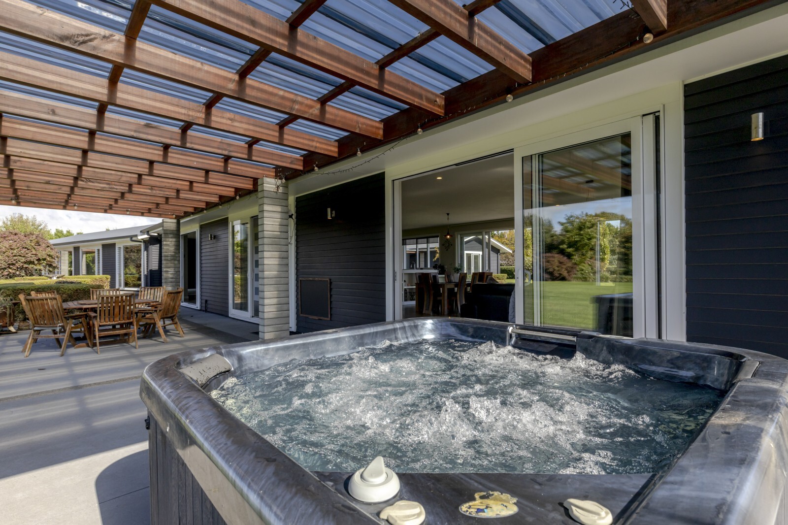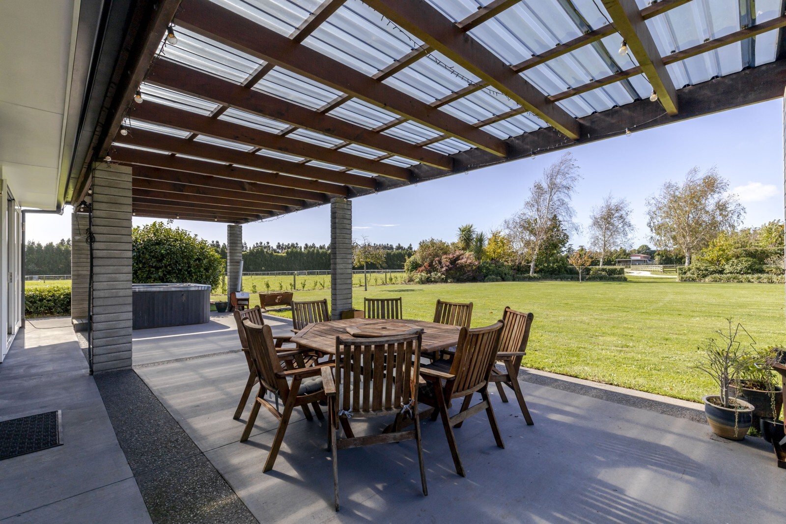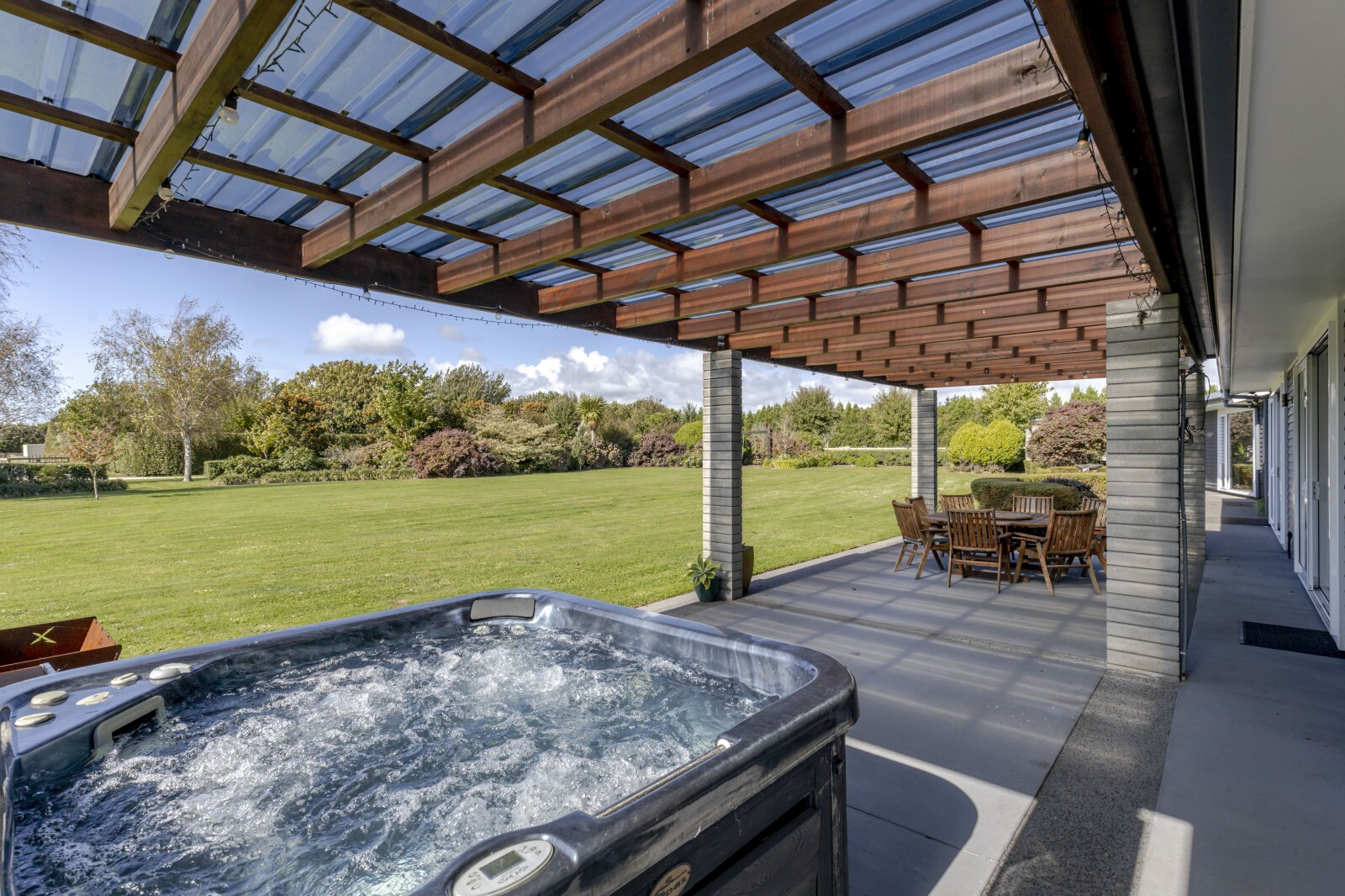 Outside, the property continues to impress. Beautifully landscaped grounds feature a concreted driveway with amazing parking space surrounding the home alongside a beautiful meandering driveway and established trees for privacy. The orchard filled with fruit trees plus storage sheds are a bonus. The flat, well fenced paddocks provide room for horses, sheep, or calves, while the expansive lawns create the perfect setting for children to play and explore. A covered patio with spa pool completes the picture, offering a great space to entertain or simply relax at the end of the day.
