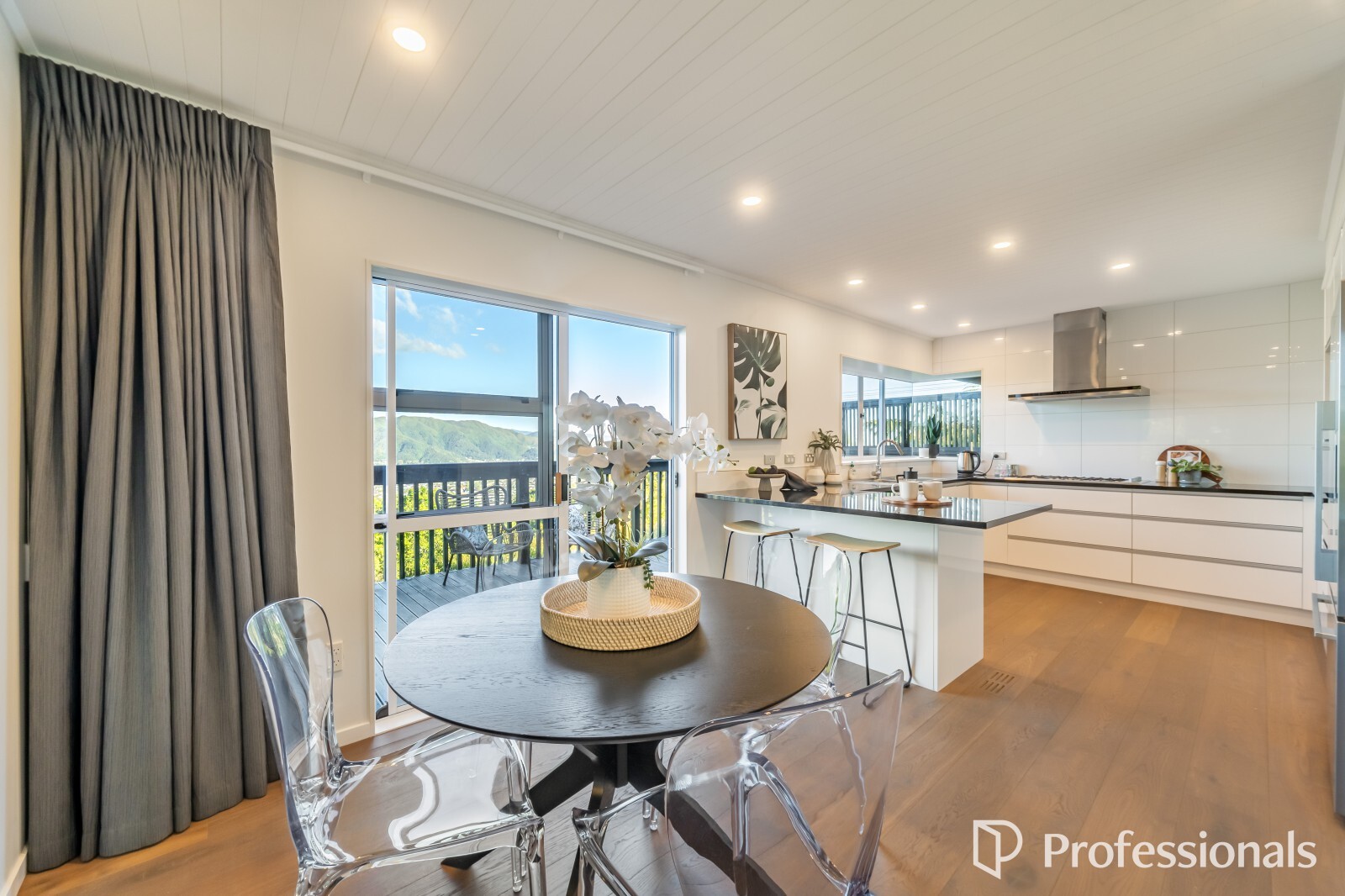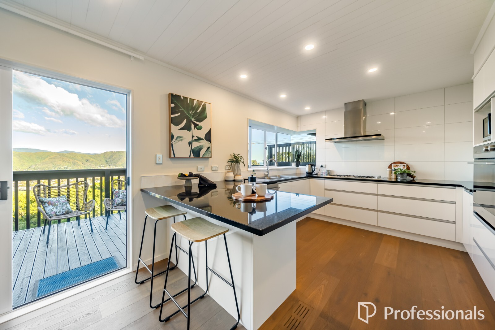 Seamless indoor-outdoor flow leads to the deck, where you can enjoy sweeping views across the Hutt Valley, an ideal setting for morning coffee or evening entertaining .