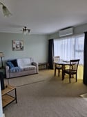 Modern kitchen with dishwasher, spacious combined living and dining with heat pump. Double bedroom with wardrobe, bathroom consists of shower, toilet vanity and the washing machine.