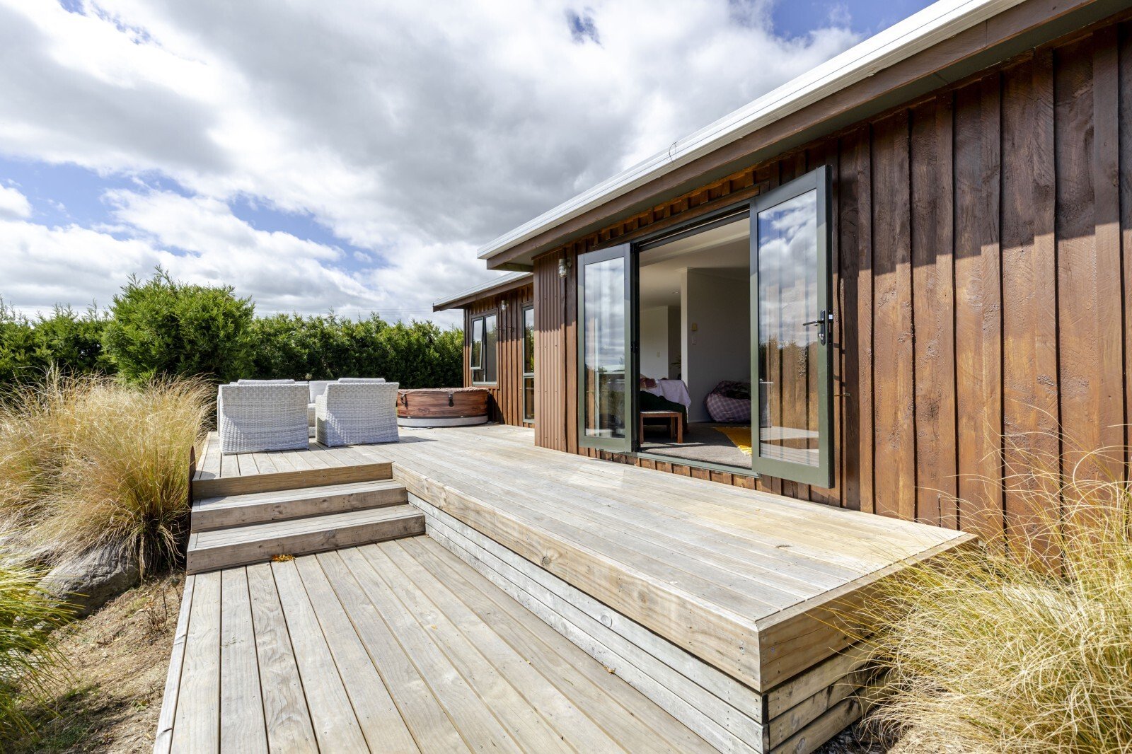 The supporting infrastructure further elevates the opportunity: a re-clad three-bay shed with electric doors, a 20,000L & 35,000L water tank (servicing each home individually), separate septic systems, grazing paddocks, and direct access to nearby national parks including Pukeiti Gardens and surrounding hiking trails.