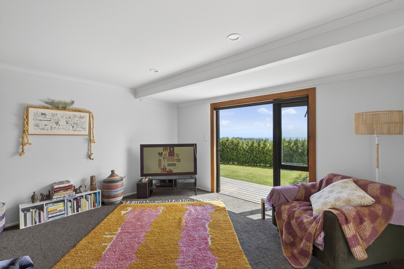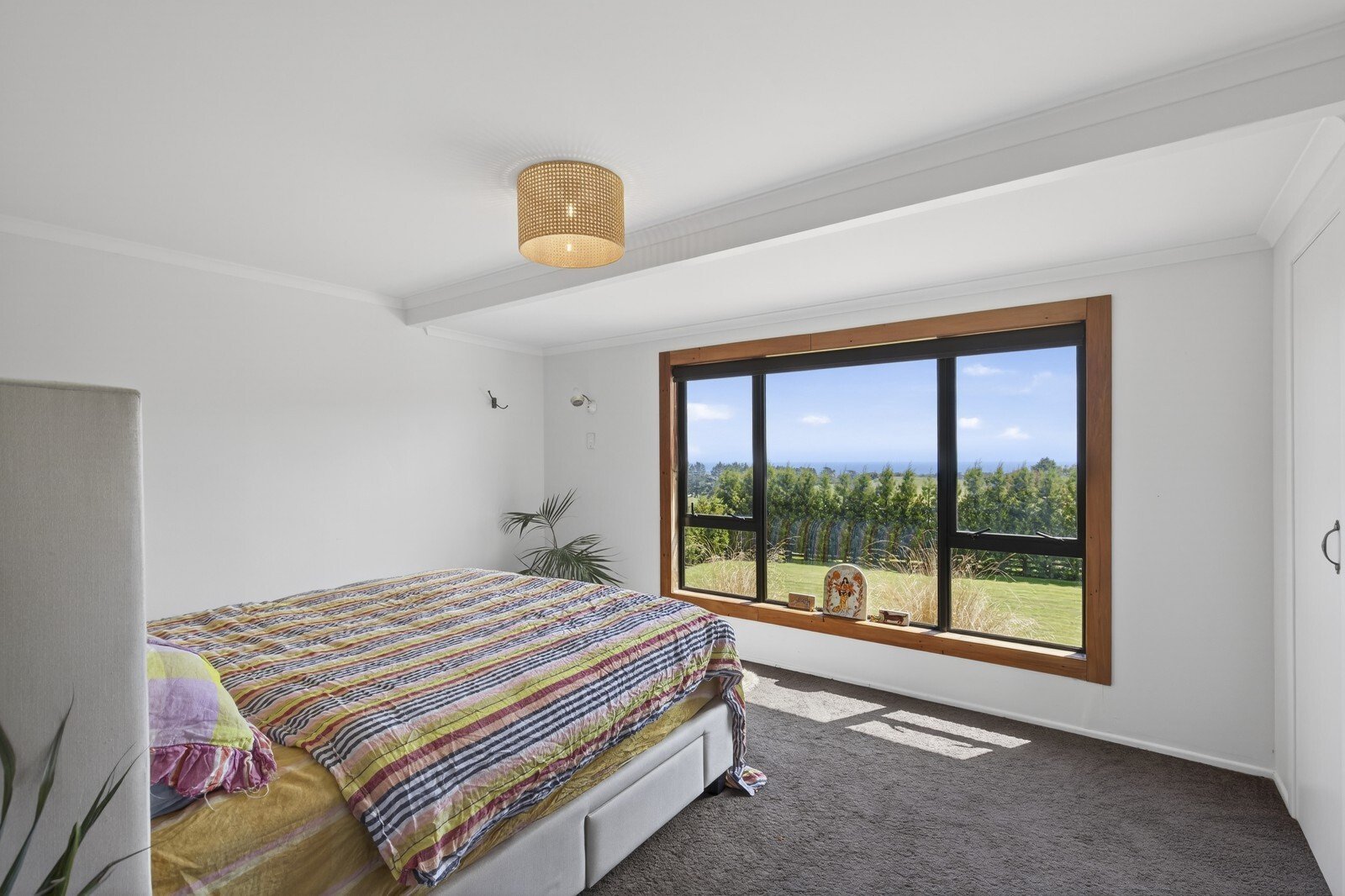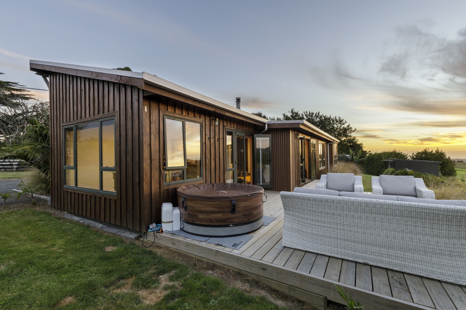 The views are nothing short of breathtaking — stretching from Mount Taranaki and the dramatic Kaitake and Pouakai Ranges, across rolling green pasture, and sweeping outward to a magnificent 180-degree panorama of coastline and ocean. It’s expansive. It’s private. It’s powerful.