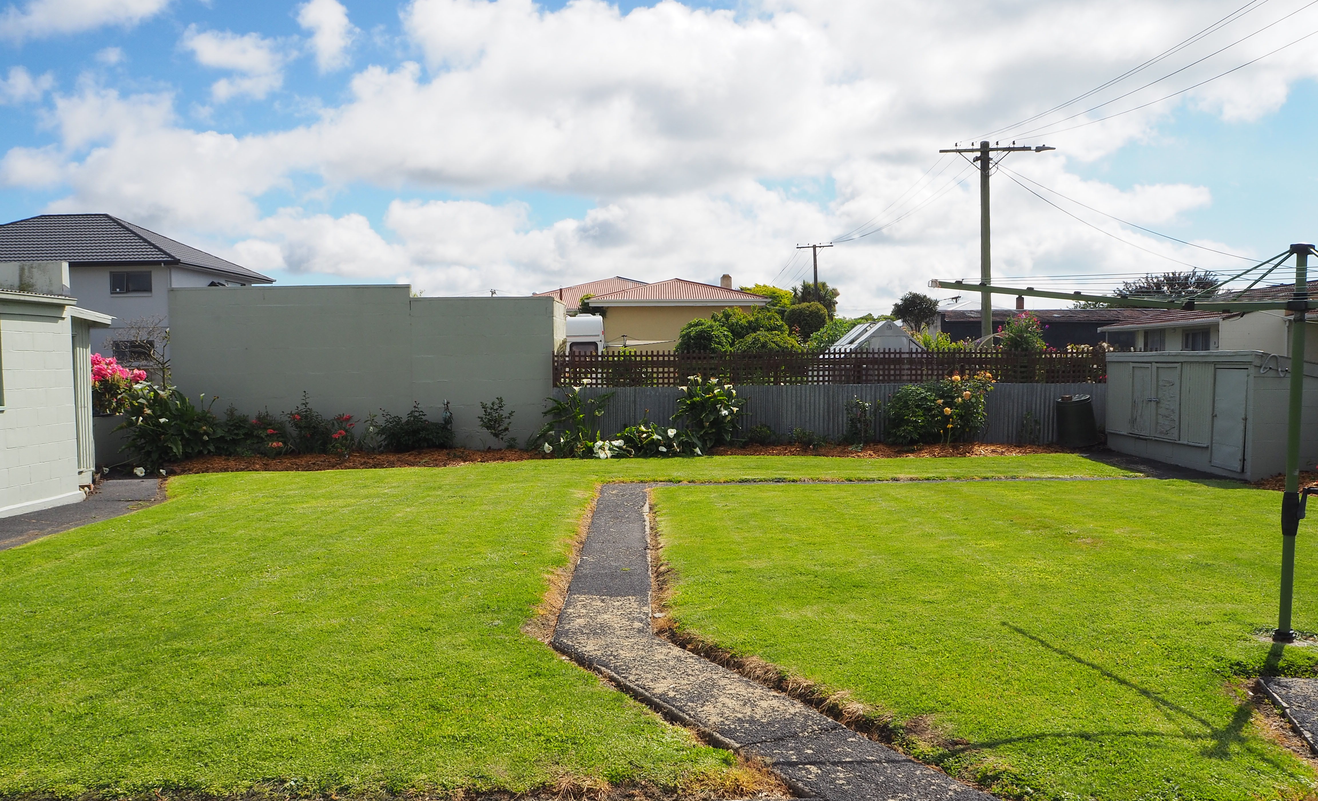 Fully fenced section with sturdy concrete block single garage and workshop. Centrally located to all amenities.