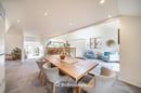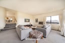 As you enter, you are greeted by stairs that lead up to the large open plan kitchen and dining area complete with an abundance of cupboards and generous bench space, ideal for food preparation and entertaining. A few steps down lead you to the main living area, where a striking wall-mounted gas fire adds warmth and ambience, creating an inviting atmosphere for gatherings with family and friends. The large windows provide stunning views over the valley, enhancing the sense of space and connection to the surrounding landscape.
