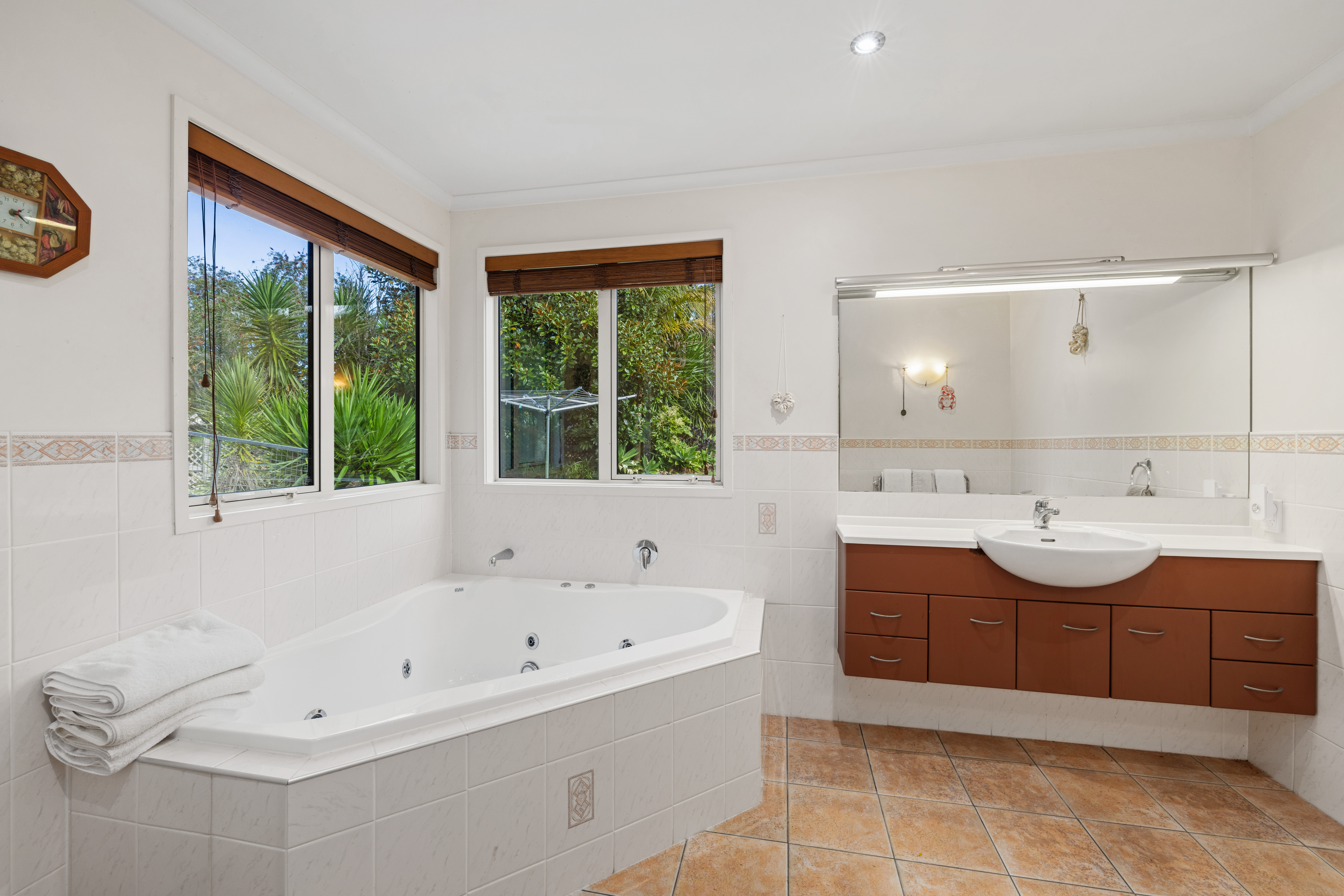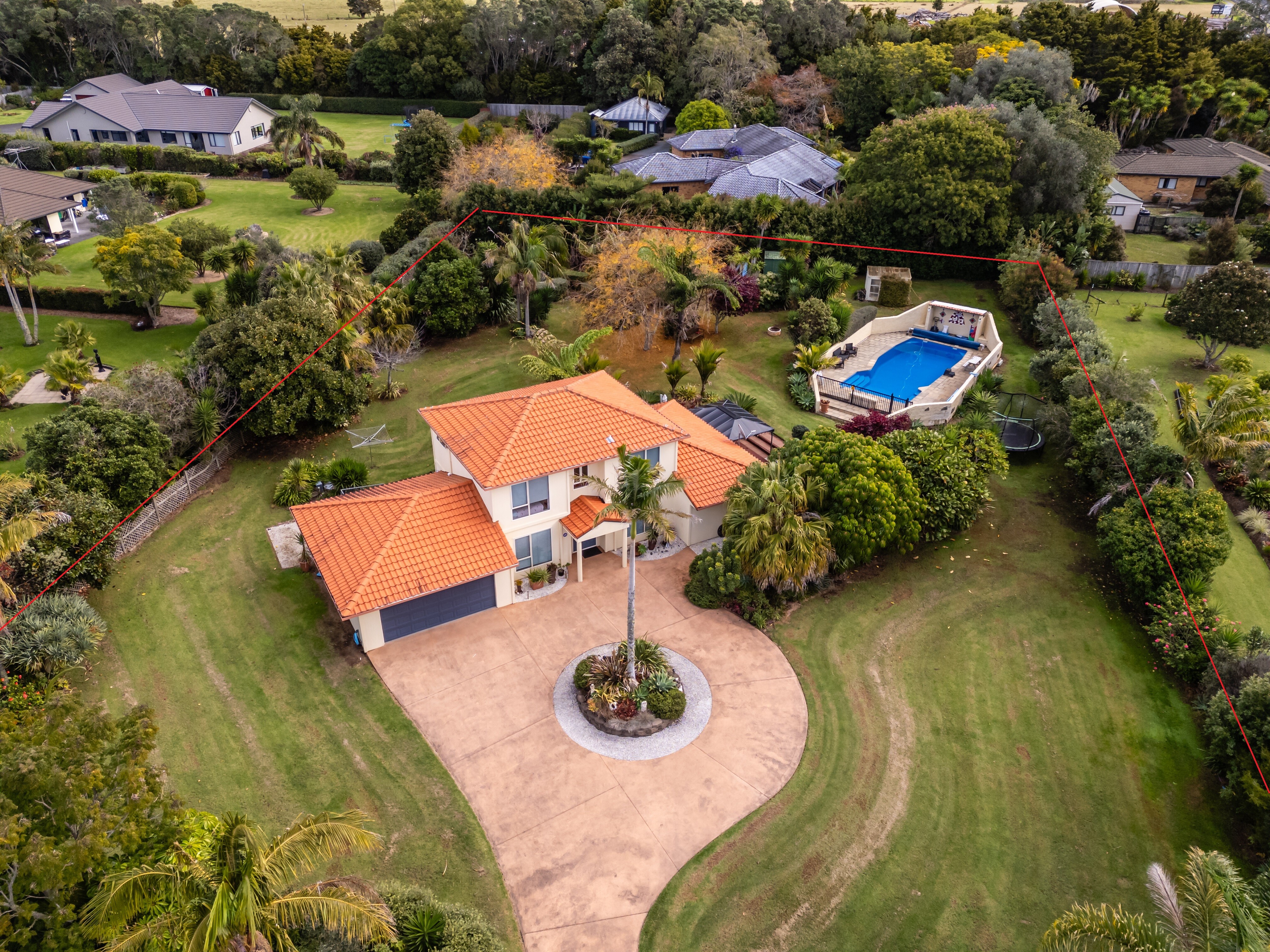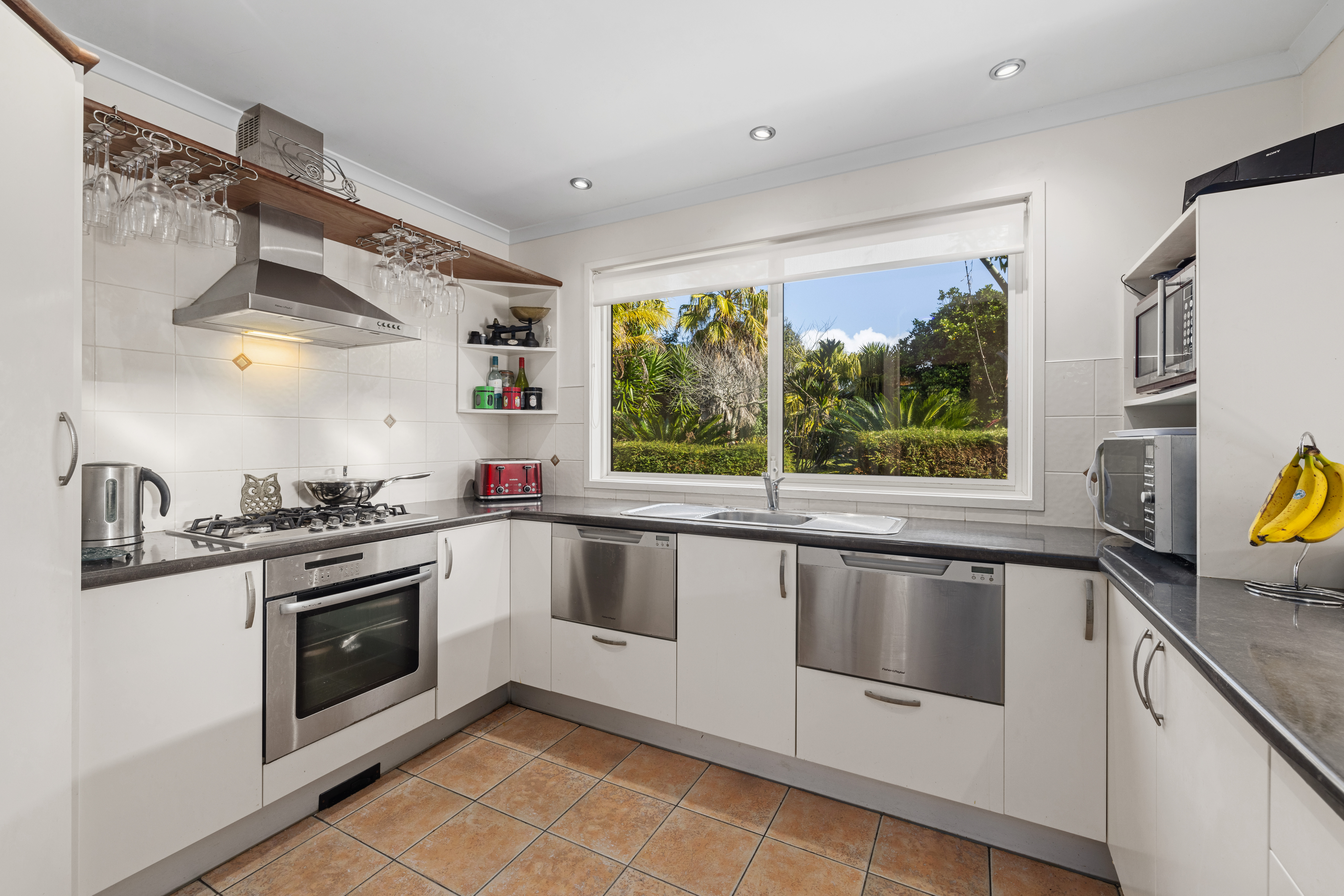 The north-facing home boasts large tinted double-glazed windows, an Australian Tuscan terracotta tiled roof, and plastered cladding, offering impressive touches of class throughout the home. The atmosphere is further heightened by the easy maintenance of the double glazing, ceiling fans, and heat pumps that ensure comfort in all seasons. The day room and kitchen have a large ranch slider that opens out onto the patio deck and gazebo so is a perfect place for family and friends to gather for daily use or parties.