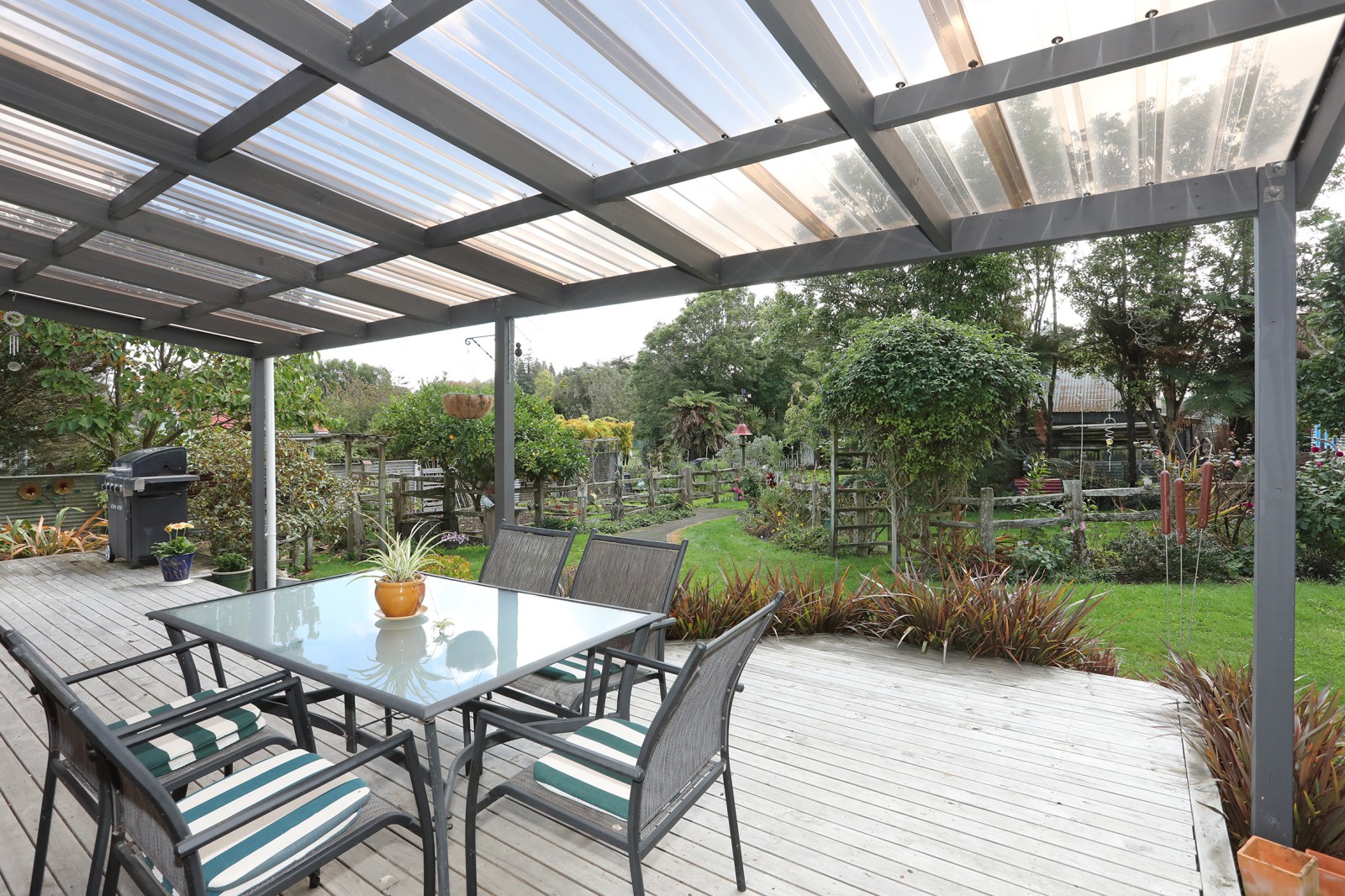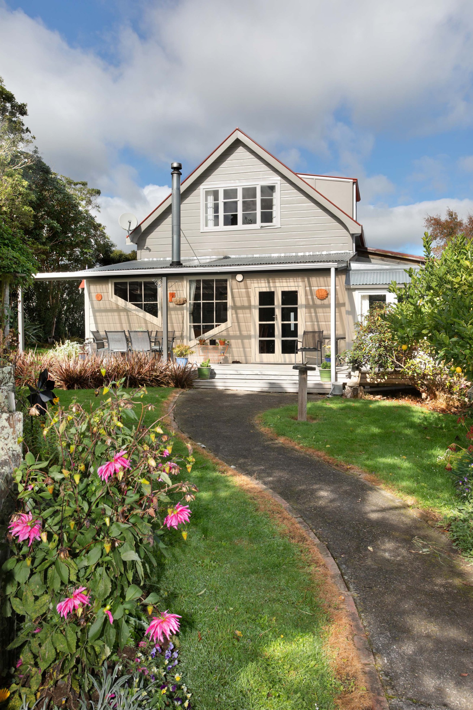 Externally, the property delights with a private backyard surrounded by established gardens and fruit trees on a large 1406m2 section. French doors off the living space open out onto a picturesque outdoor space, perfect for entertaining or enjoying peaceful moments.