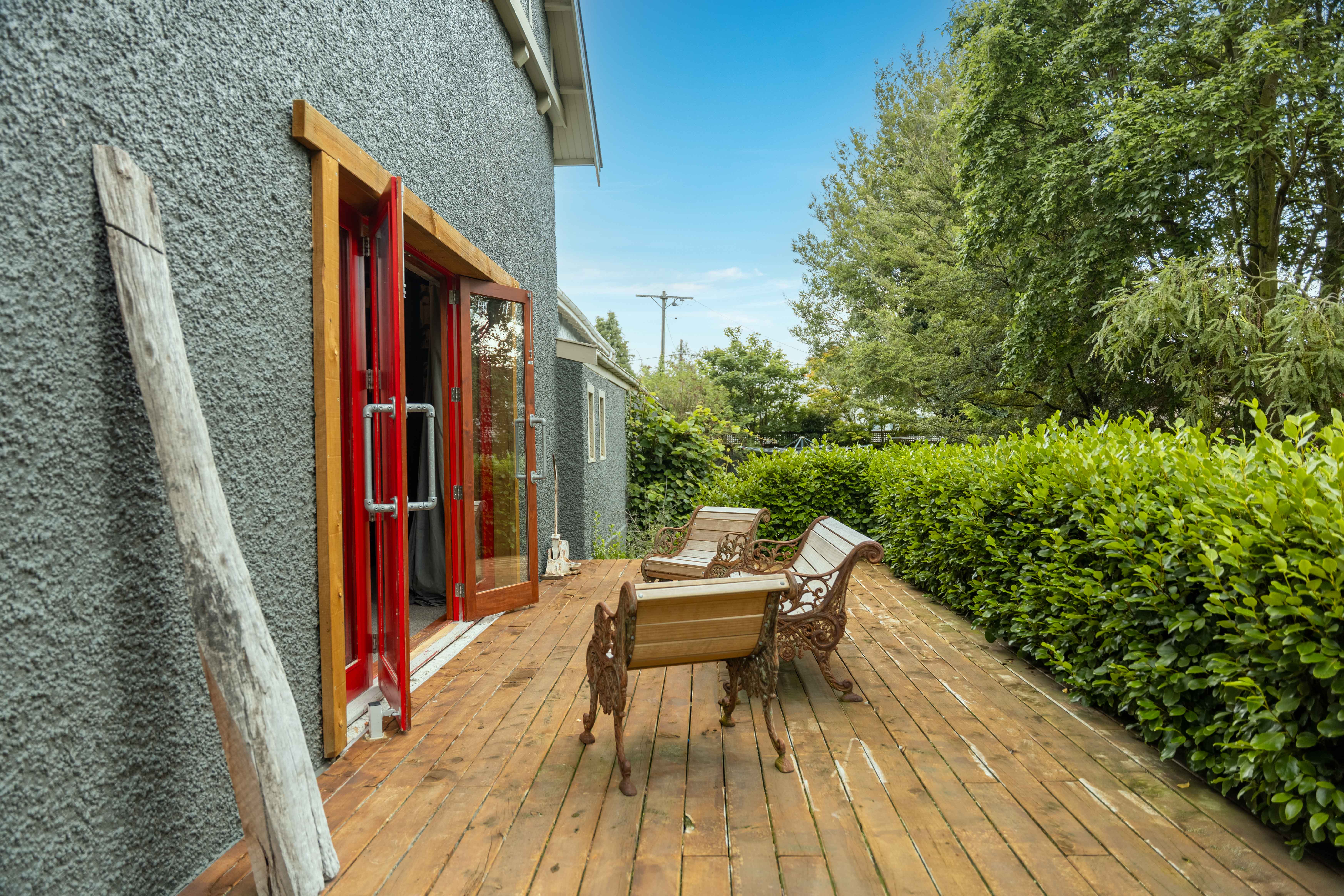 One of the standout features is the expansive built in bookshelf complete with a ladder-just one example of the thoughtful and creative design woven throughout. The living area is warmed by a wood burner, while large high set doors open to a private rear deck and garden, creating a seamless indoor-outdoor retreat.