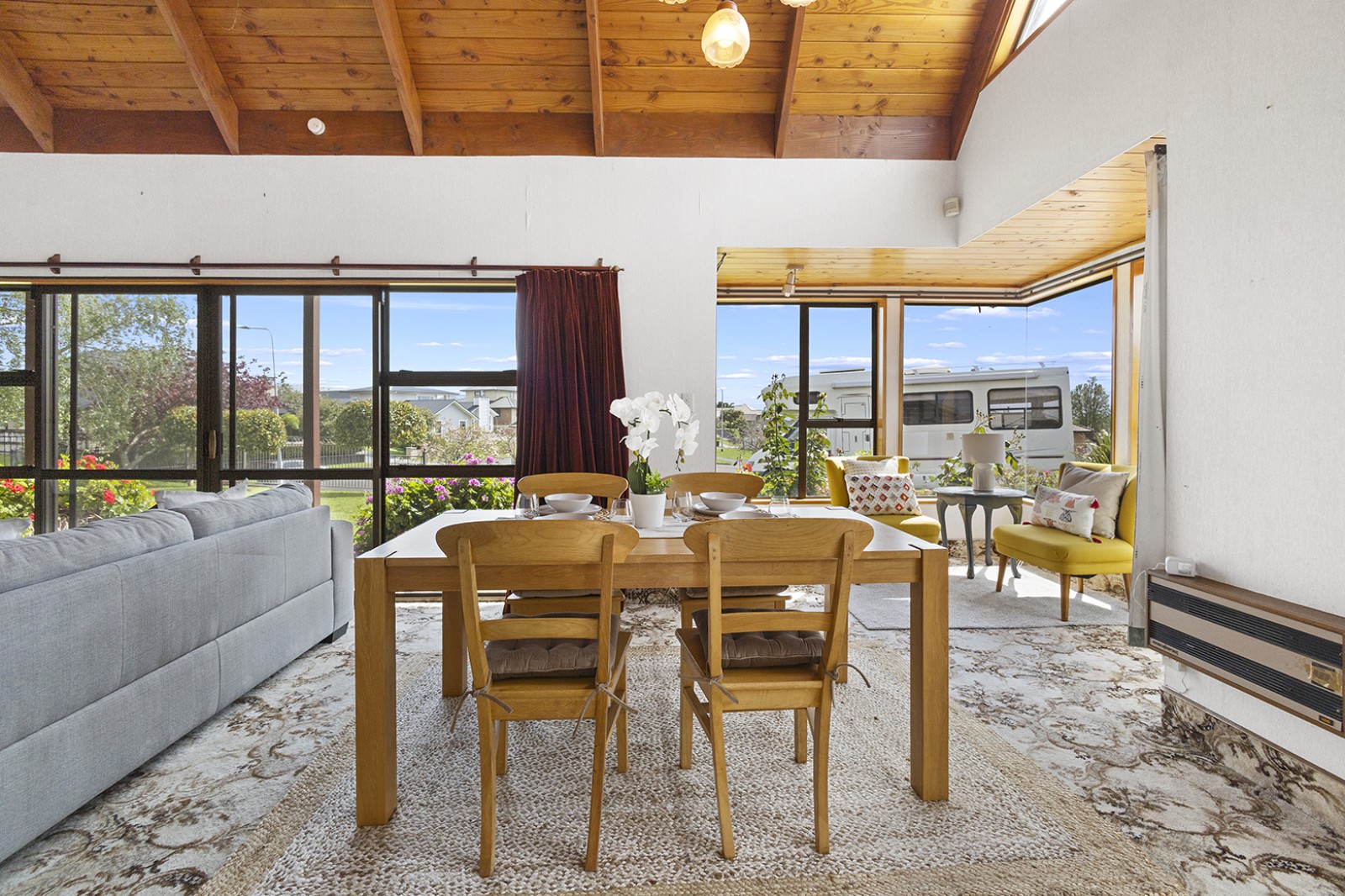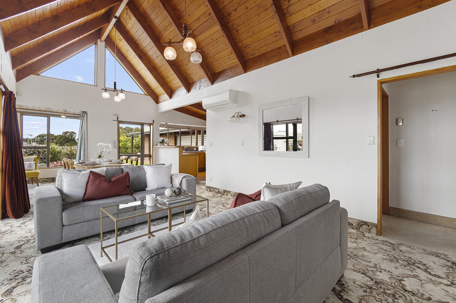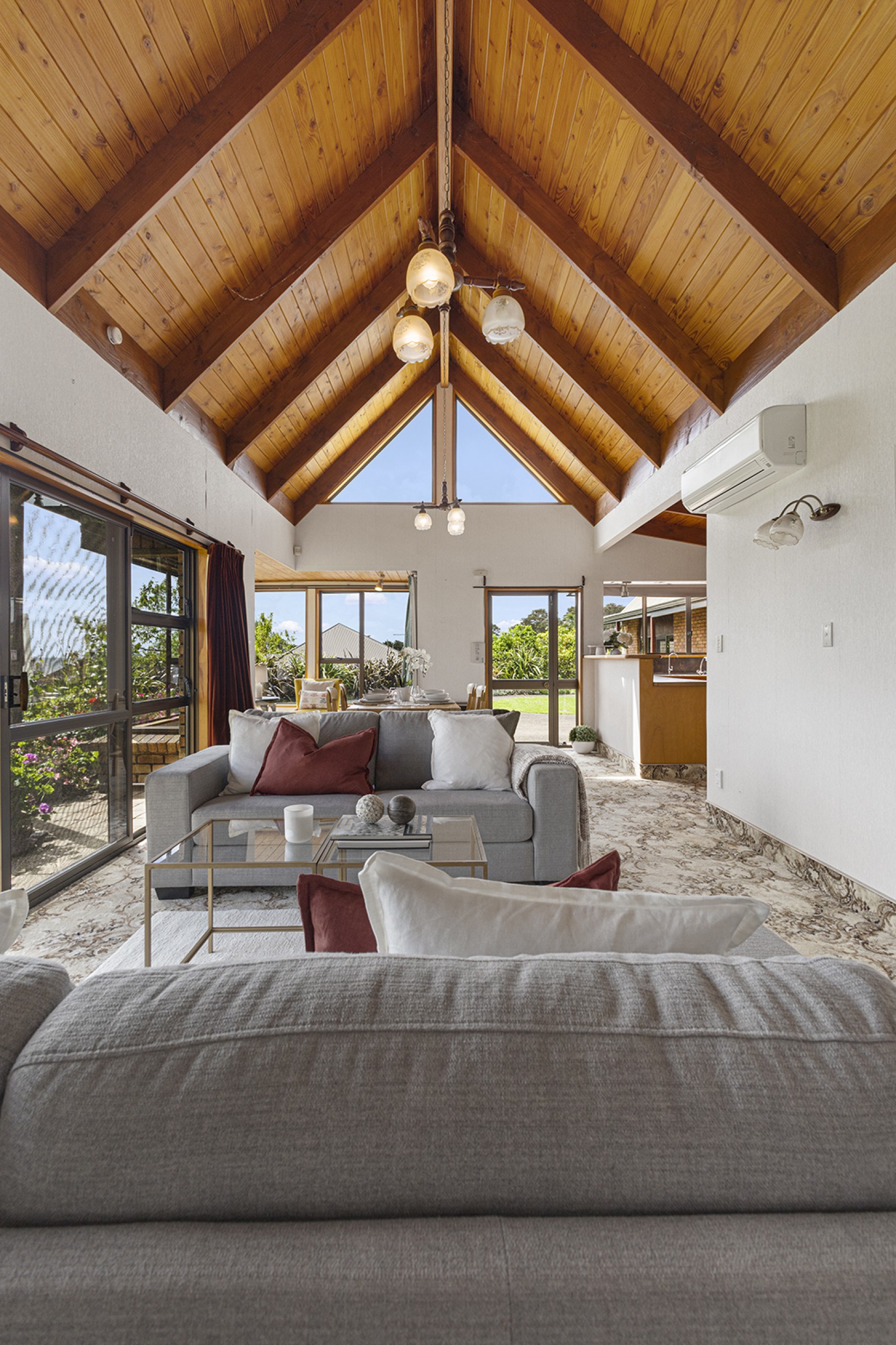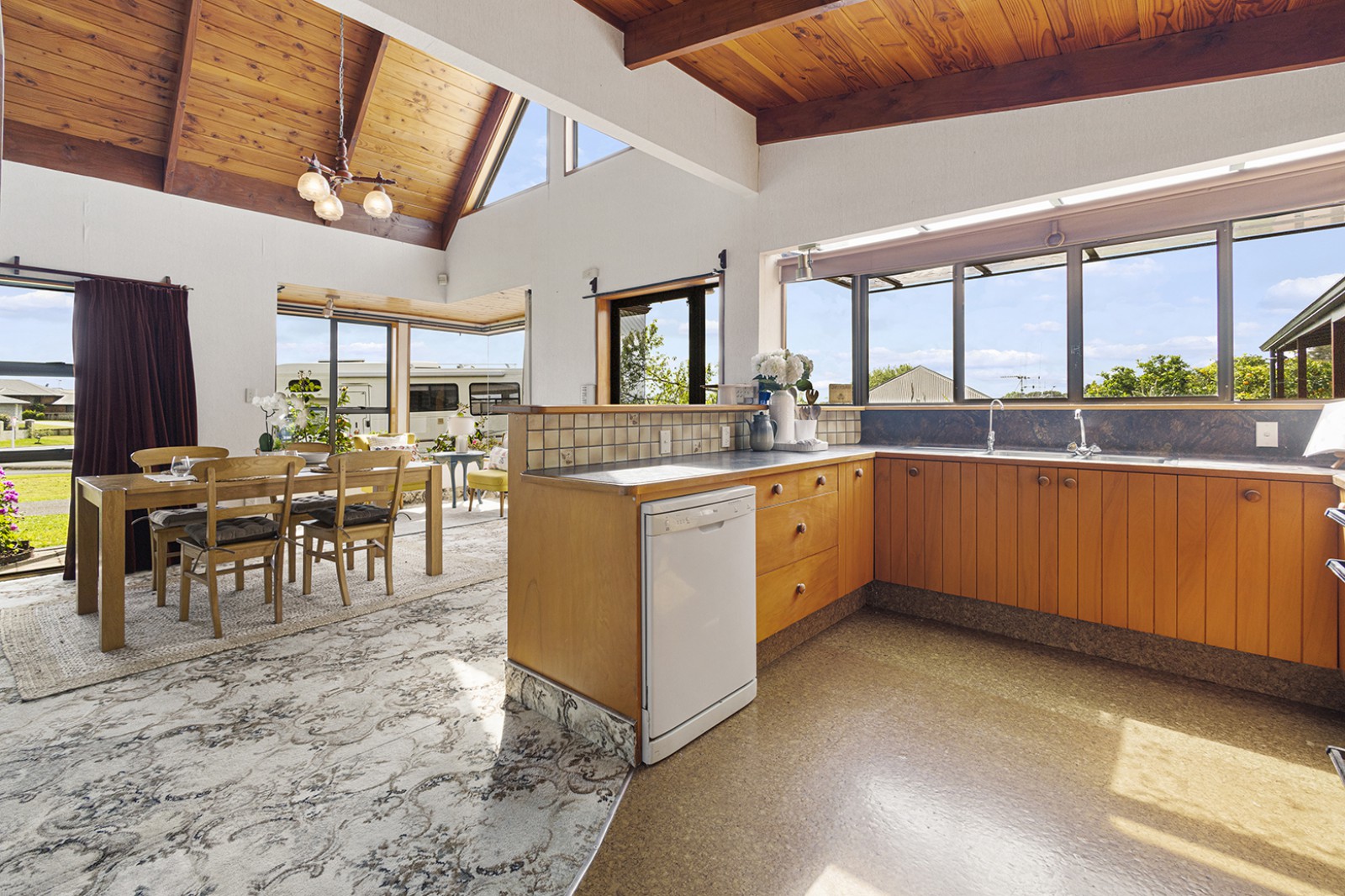 * Super spacious open plan kitchen / dining / living with cathedral ceilings
