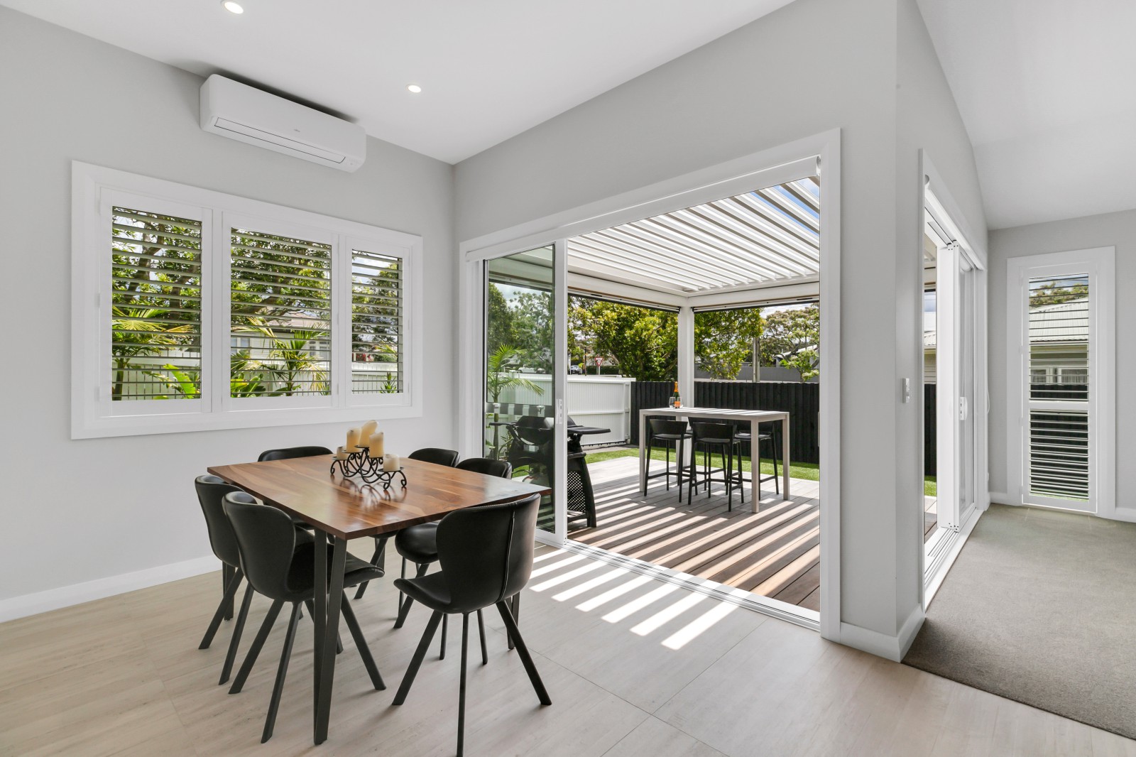 Upon entry, you'll be greeted by a relaxed living area thoughtfully designed with a separate outdoor space, ideal for entertaining and creating memories with family and friends. Cosy underfloor heating in the home ensures warmth and comfort, while high stud ceilings create an airy & light filled atmosphere.