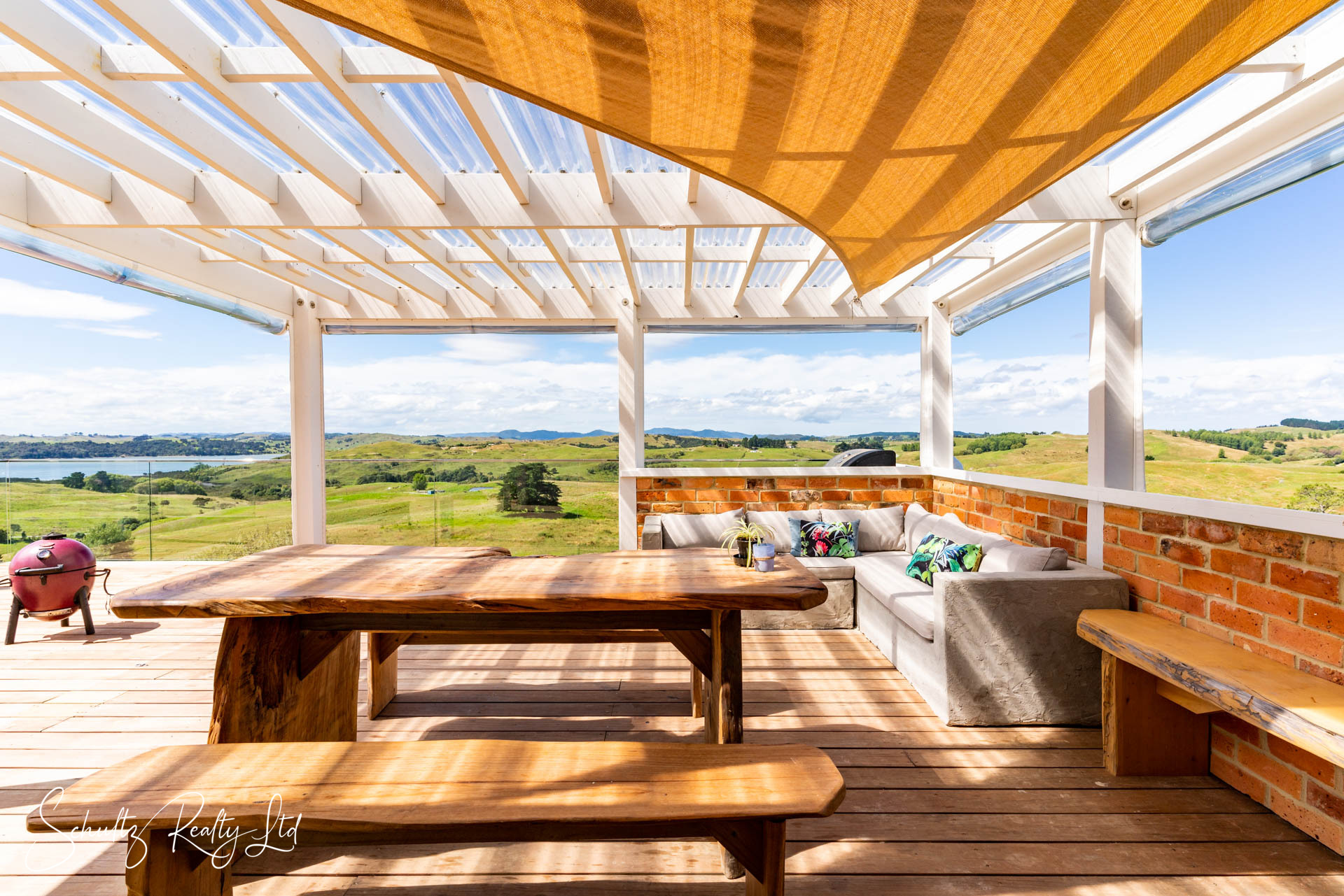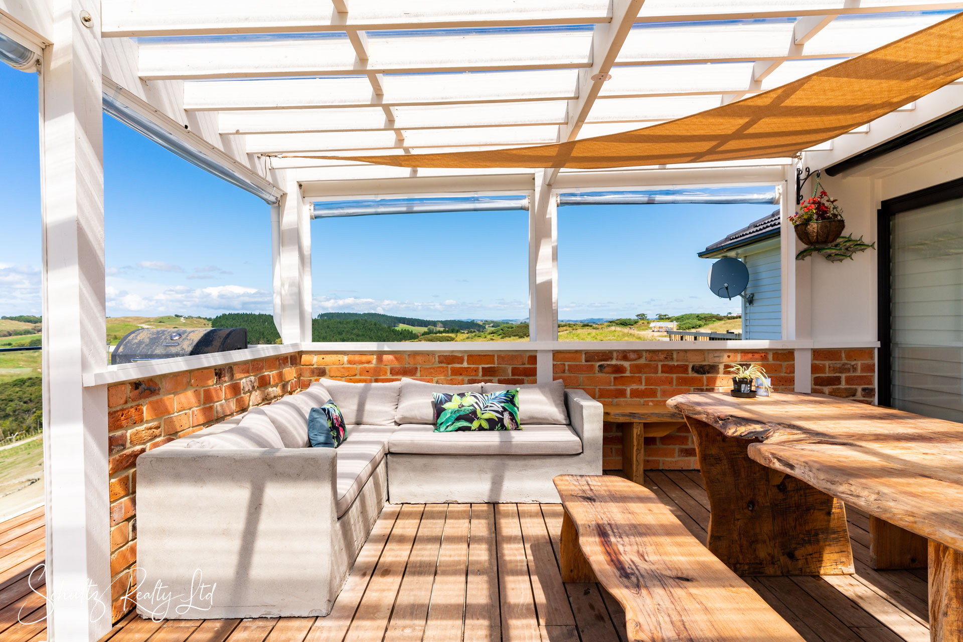 spacious covered deck - the perfect spot for morning coffees, long lunches, or simply unwinding while soaking in the sweeping