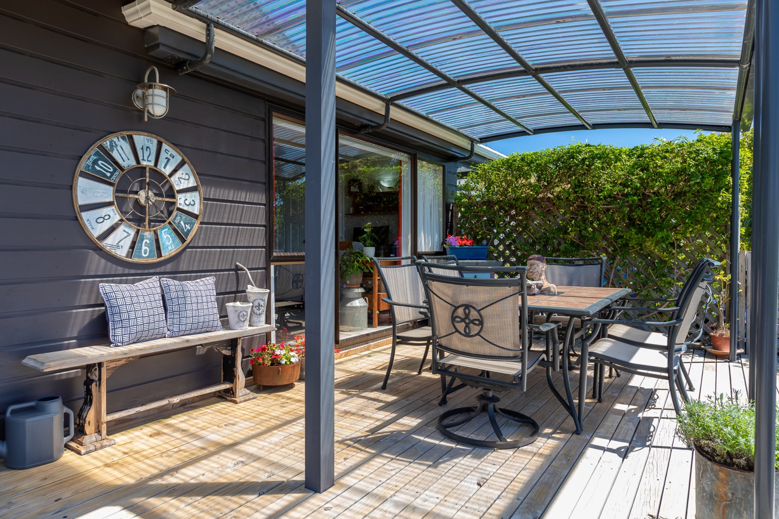 It flows nicely to the dining and kitchen or out to the fabulous large decks and pergola. It gets great sun, has a wonderful view and is very private.