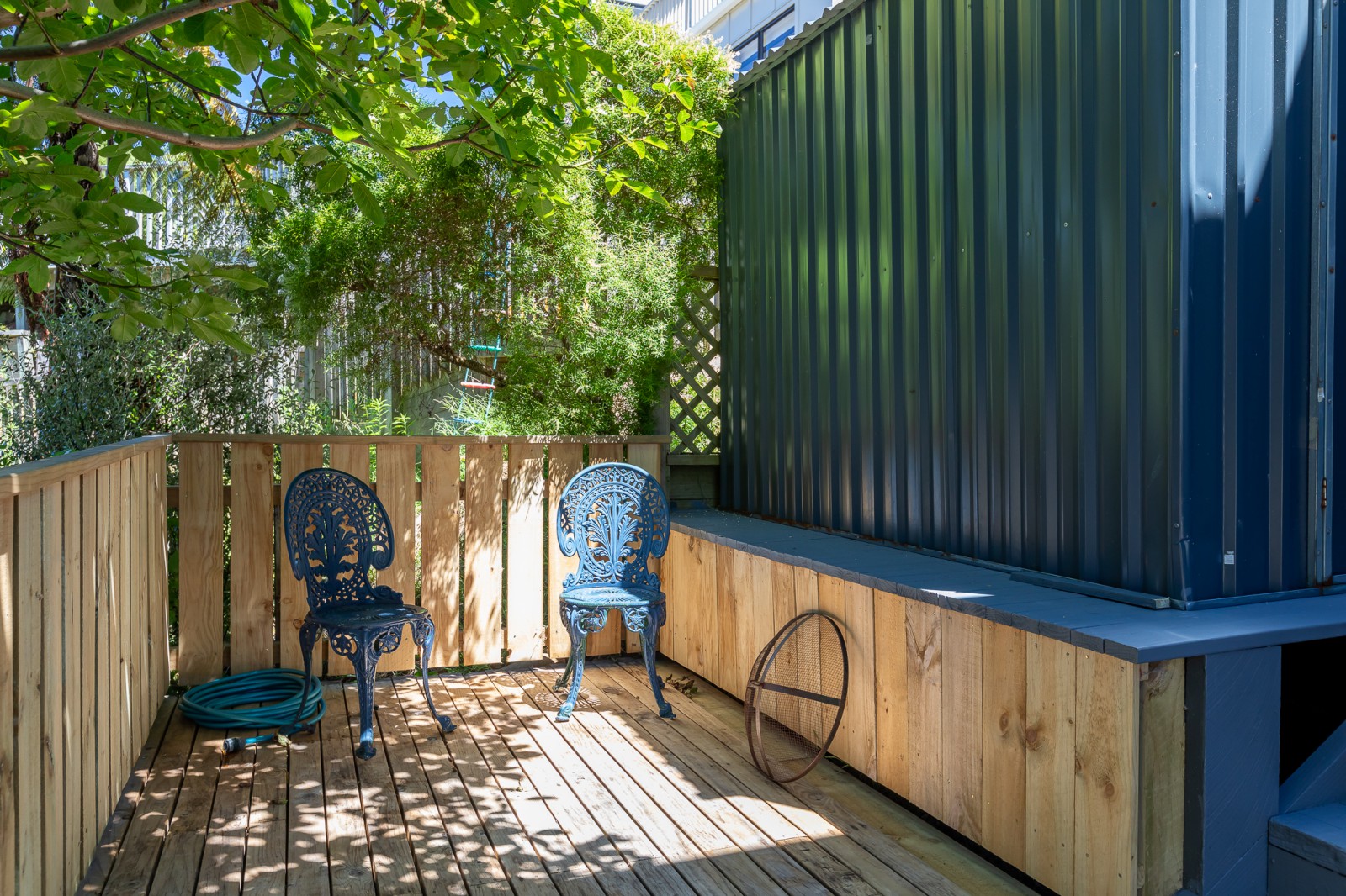 A 2nd living area is separate with access downstairs to a large bedroom and the 2 other bedrooms are upstairs. The bathroom has been modernised. The back section is also decked and beyond is clad in bush.