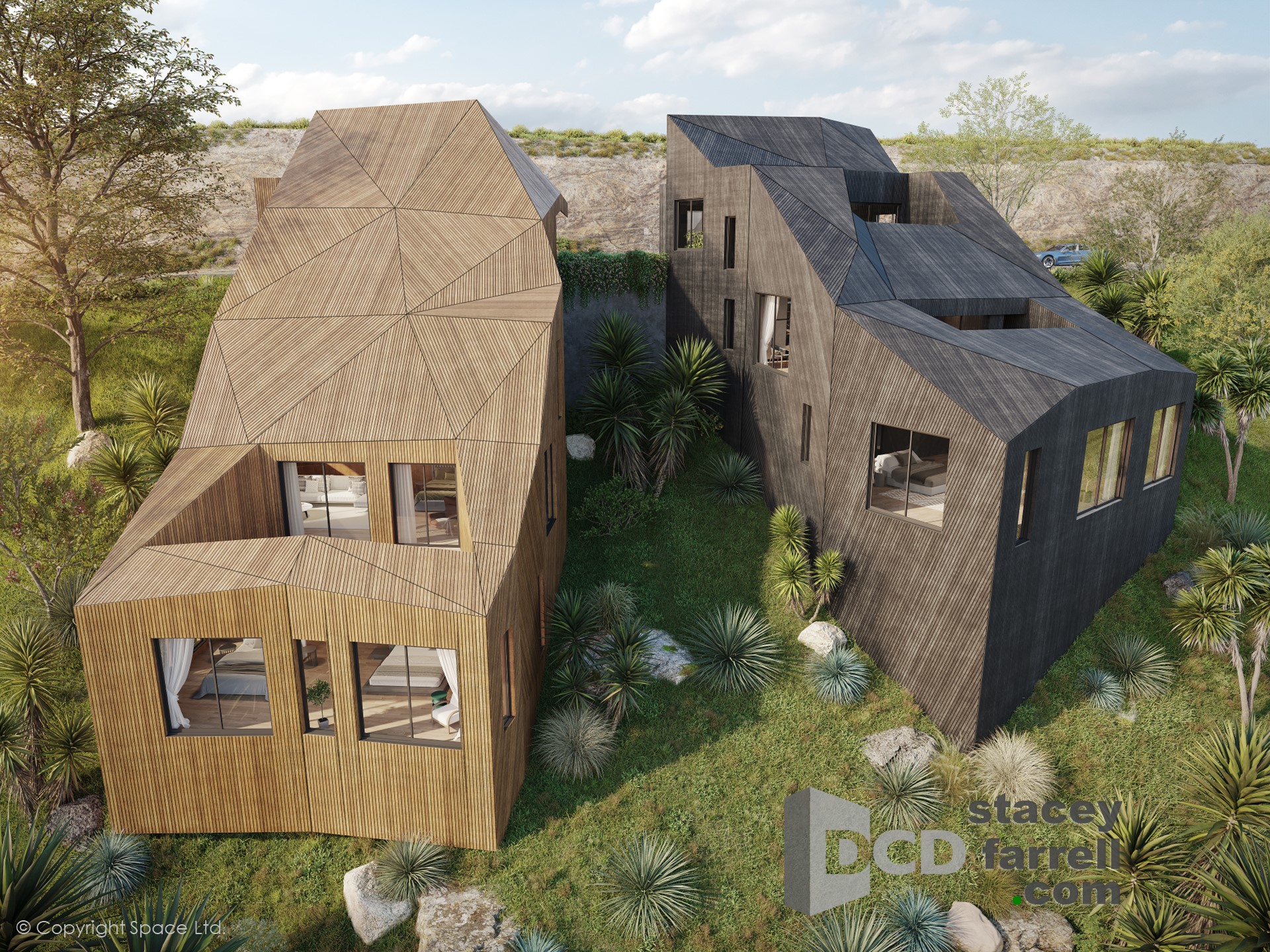 This lot presents endless possibilities, accommodating either a grand single home or up to three residential units. Our client has envisioned an architect's concept, titled "Folding Light," which showcases two exquisite three-bedroom homes designed to complement the surroundings while maximizing natural light and scenic beauty.