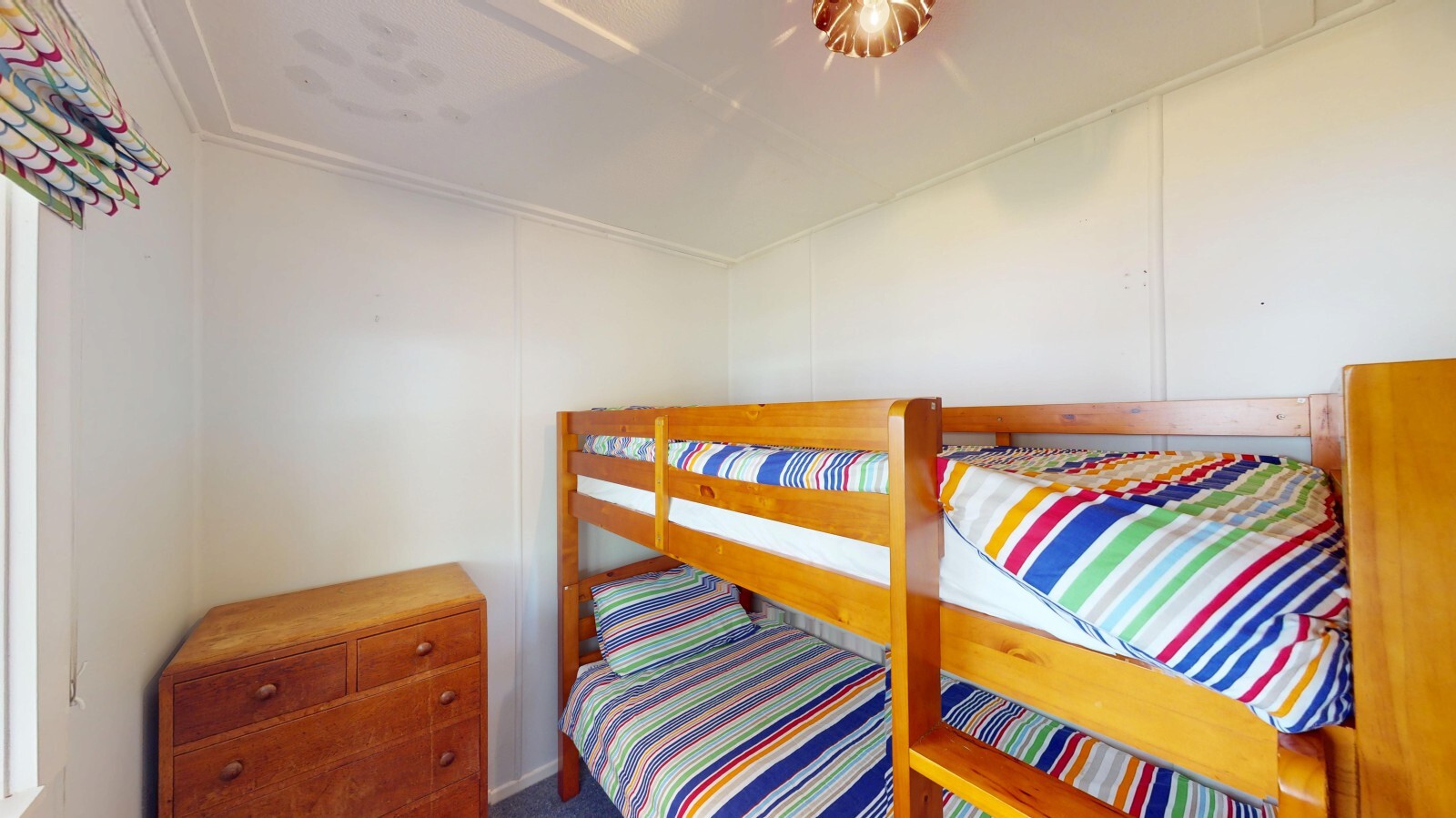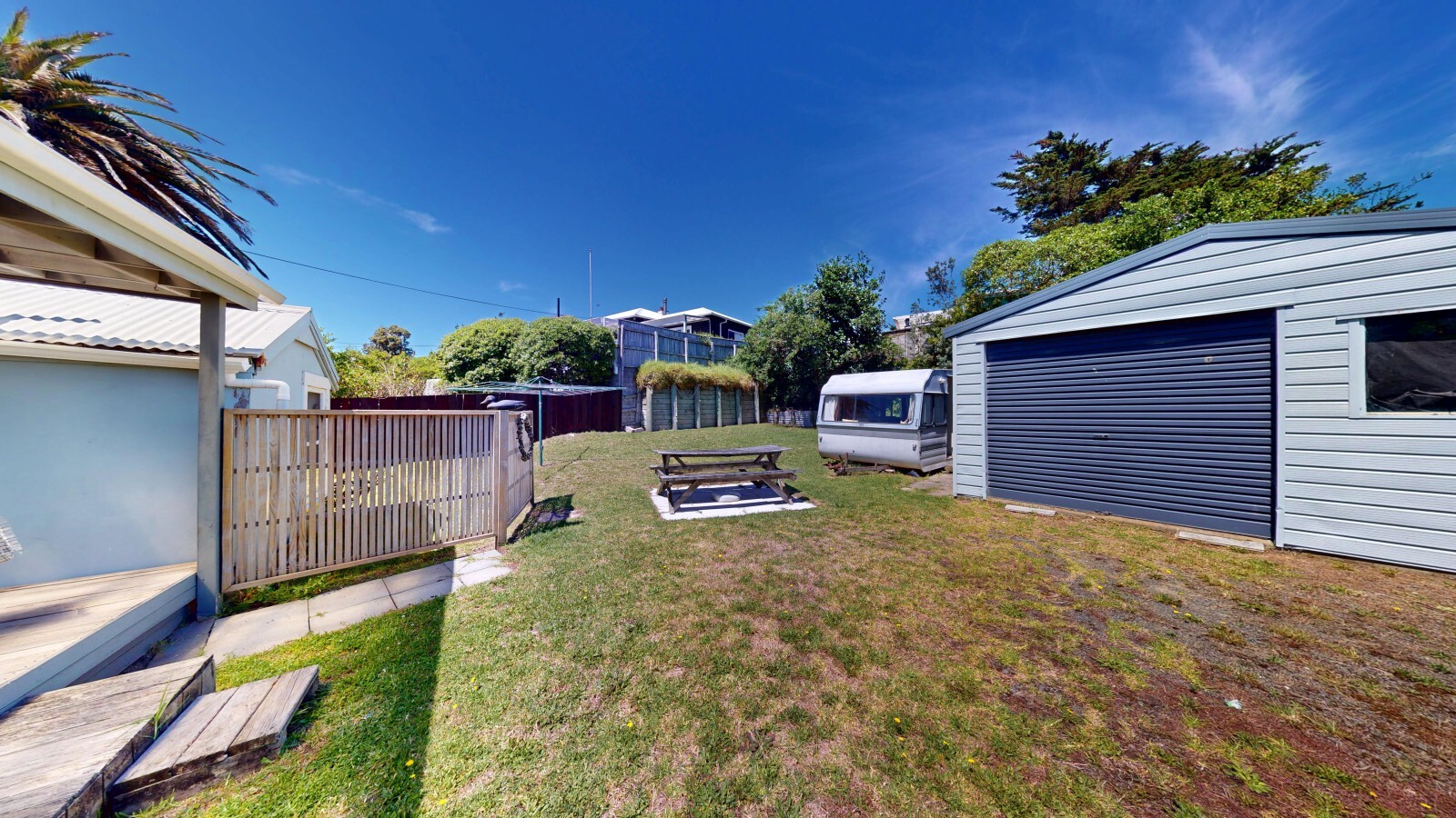This well-presented two-bedroom bach is fully appointed with a full kitchen and bathroom, including a shower over the bath, and is kept comfortable year-round with an oversized heat pump. There’s a good-sized external garage for storing all the beach toys, boards, and bikes, while a private, sheltered alfresco area provides the perfect spot to unwind or entertain in all seasons, tucked away from the street.