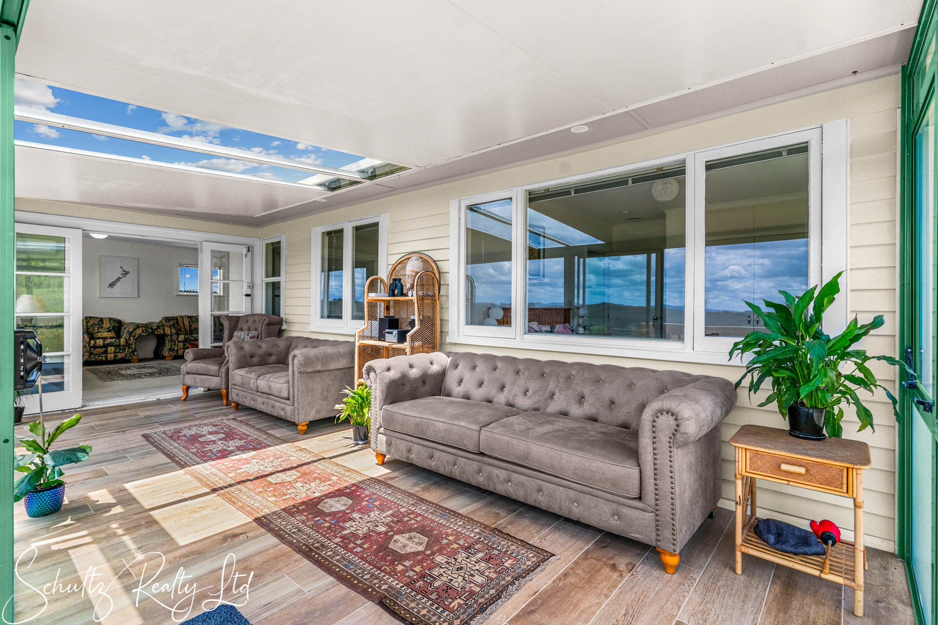 The veranda and sunroom invite slow mornings and golden evenings, where rolling green pastures stretch toward a shimmering sea view in the distance. From every window, the outlook feels like a living canvas. Lush countryside, grazing livestock, and ever-changing skies meeting the horizon.