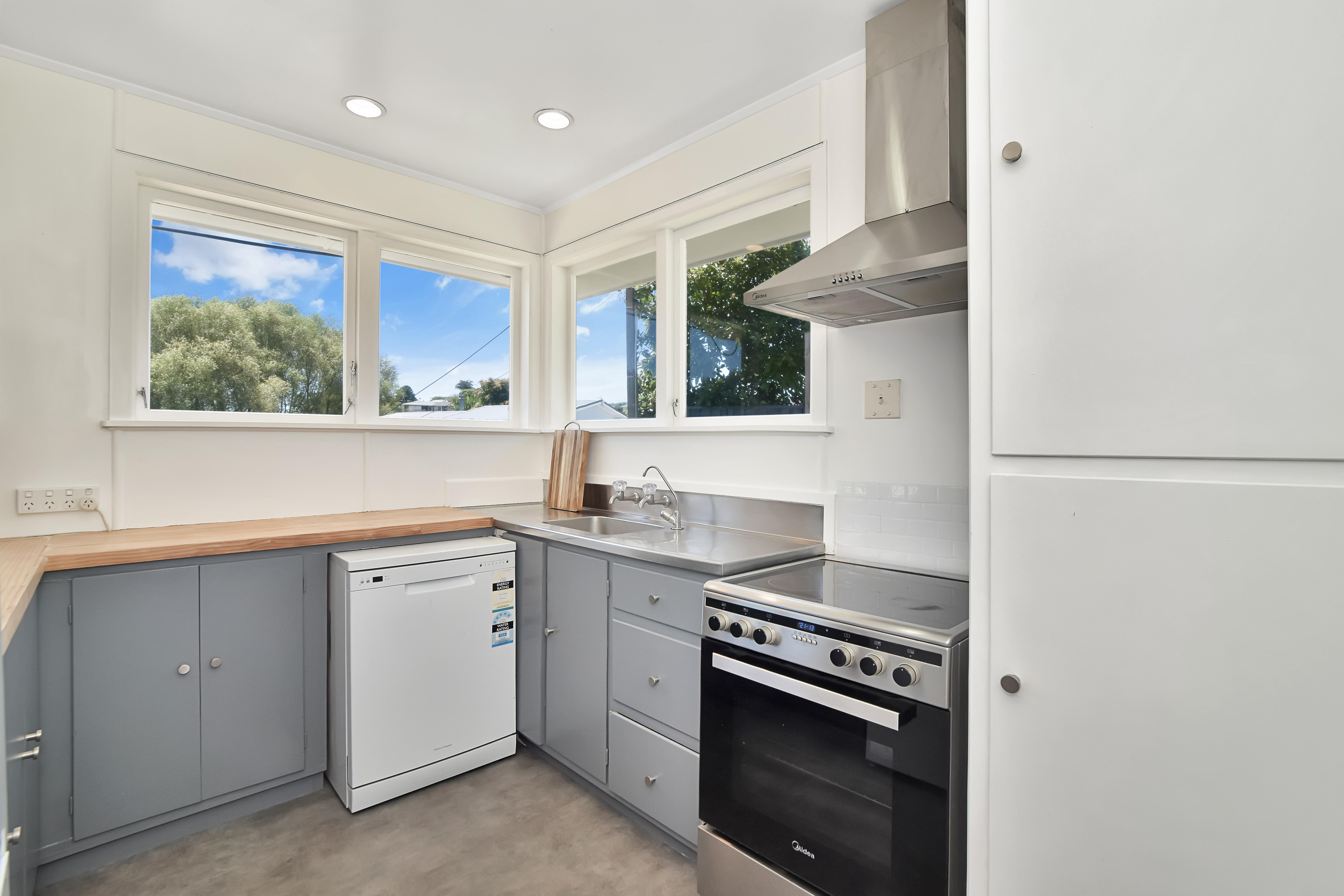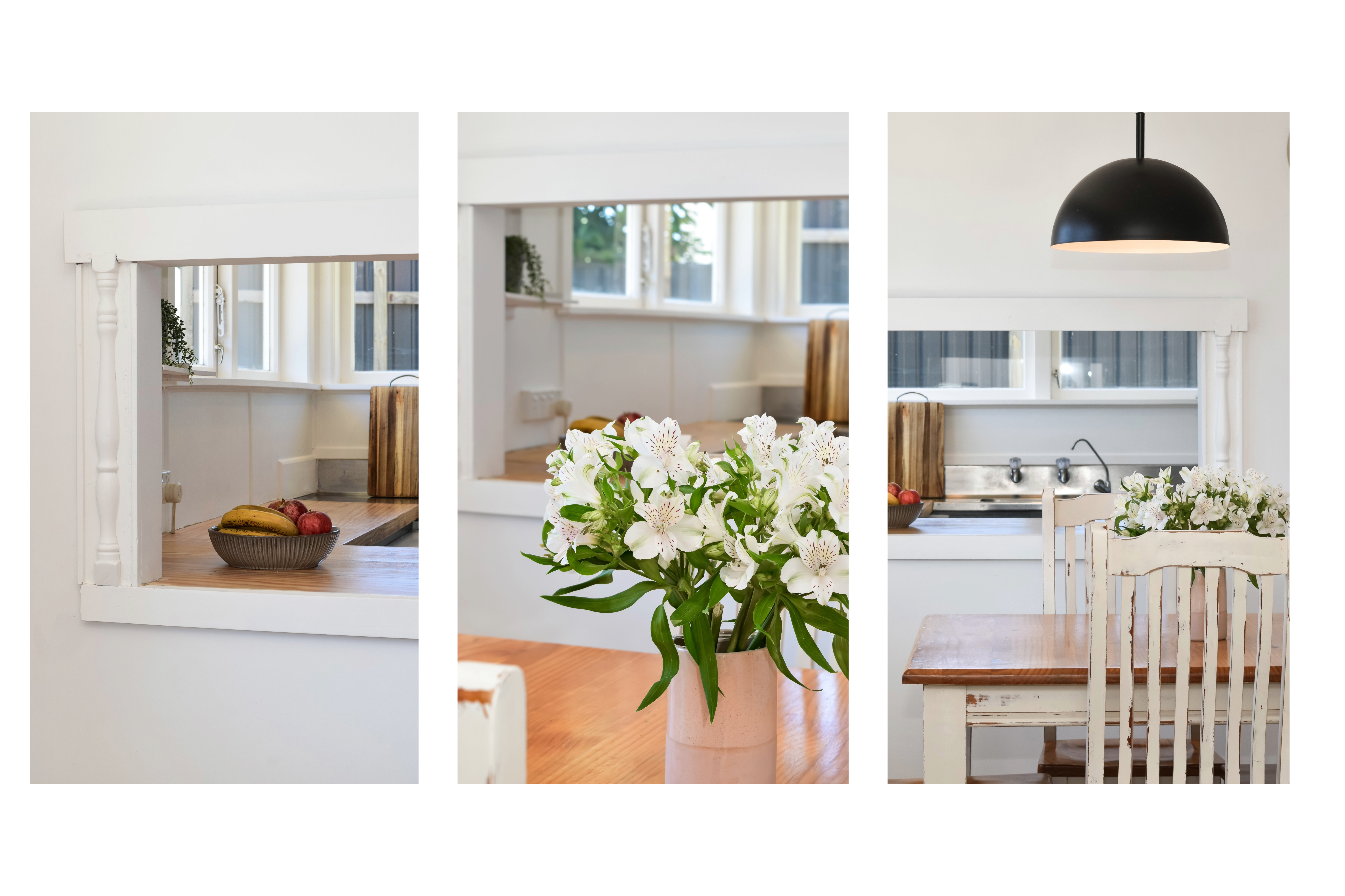 The home itself is built with traditional and timeless weatherboard, accented by faux brick and features a cosy wood burner in the lounge, perfect for winter evenings. The kitchen connects seamlessly to the dining room via the cute as a button serving hatch, while the layout includes three bedrooms, a separate laundry, and a downstairs hobby room which is ideal for a home office, workshop, or an extra living space.