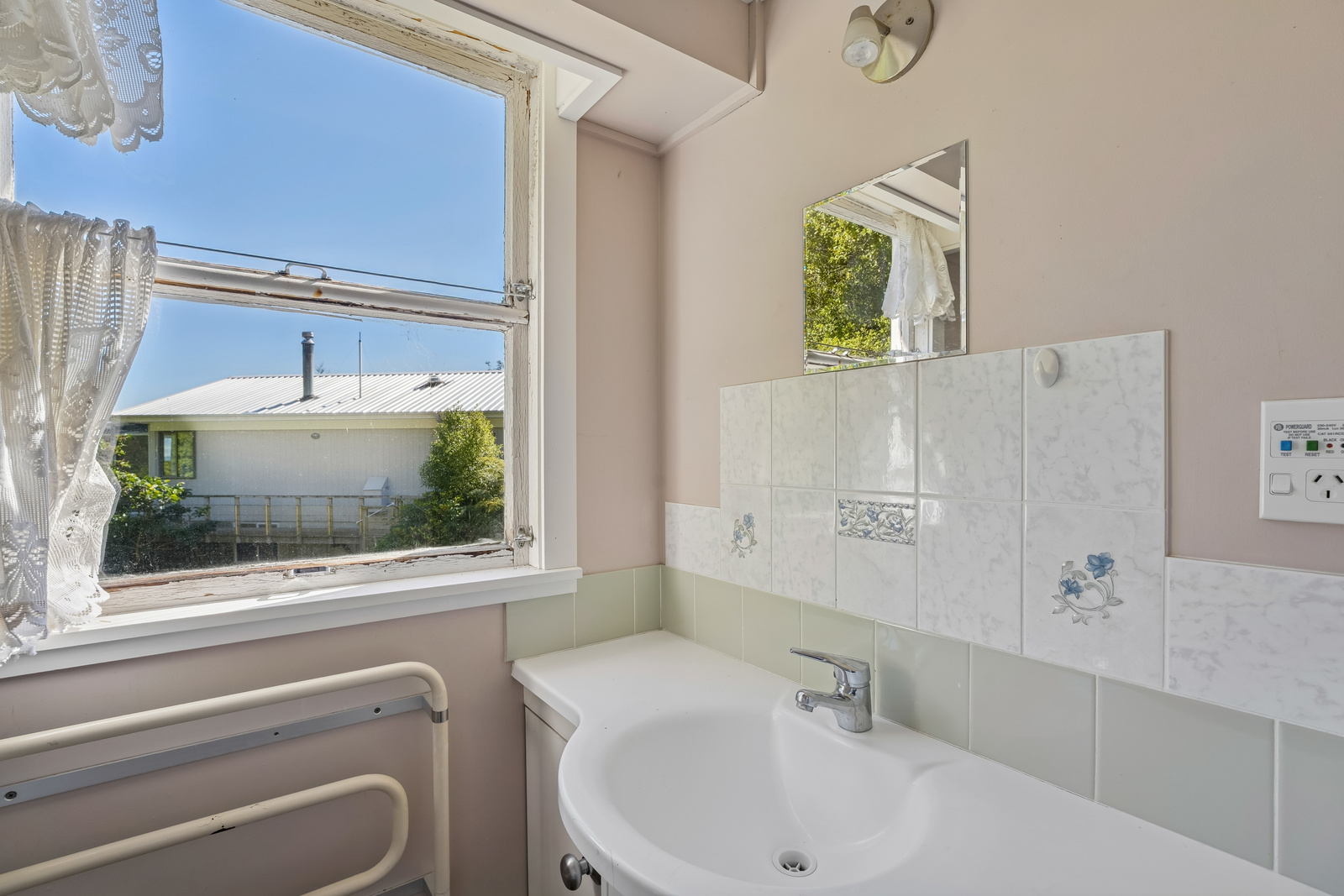 The classic 1960s bach features lovely water views from the upstairs living area, with a bedroom and bathroom located on the lower level.