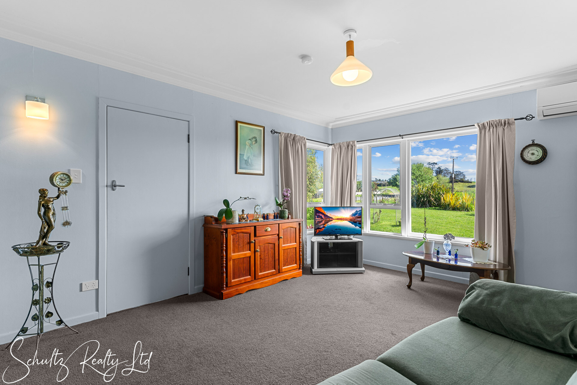 Built to last, this solid home is surrounded by stunning vistas that offer a serene retreat from the hustle and bustle of city life. Step inside to discover a spacious original kitchen with ample cabinetry storage, ideal for culinary enthusiasts. The adjoining dining area, bathed in sunlight throughout the day, features cozy window seats-perfect for relaxed family meals. The expansive living area exudes warmth and comfort, complete with a heat pump for year-round coziness. Three generously sized bedrooms offer plenty of space for rest and relaxation, while the bathroom includes a shower, vanity, and a semi-separate toilet for added convenience.